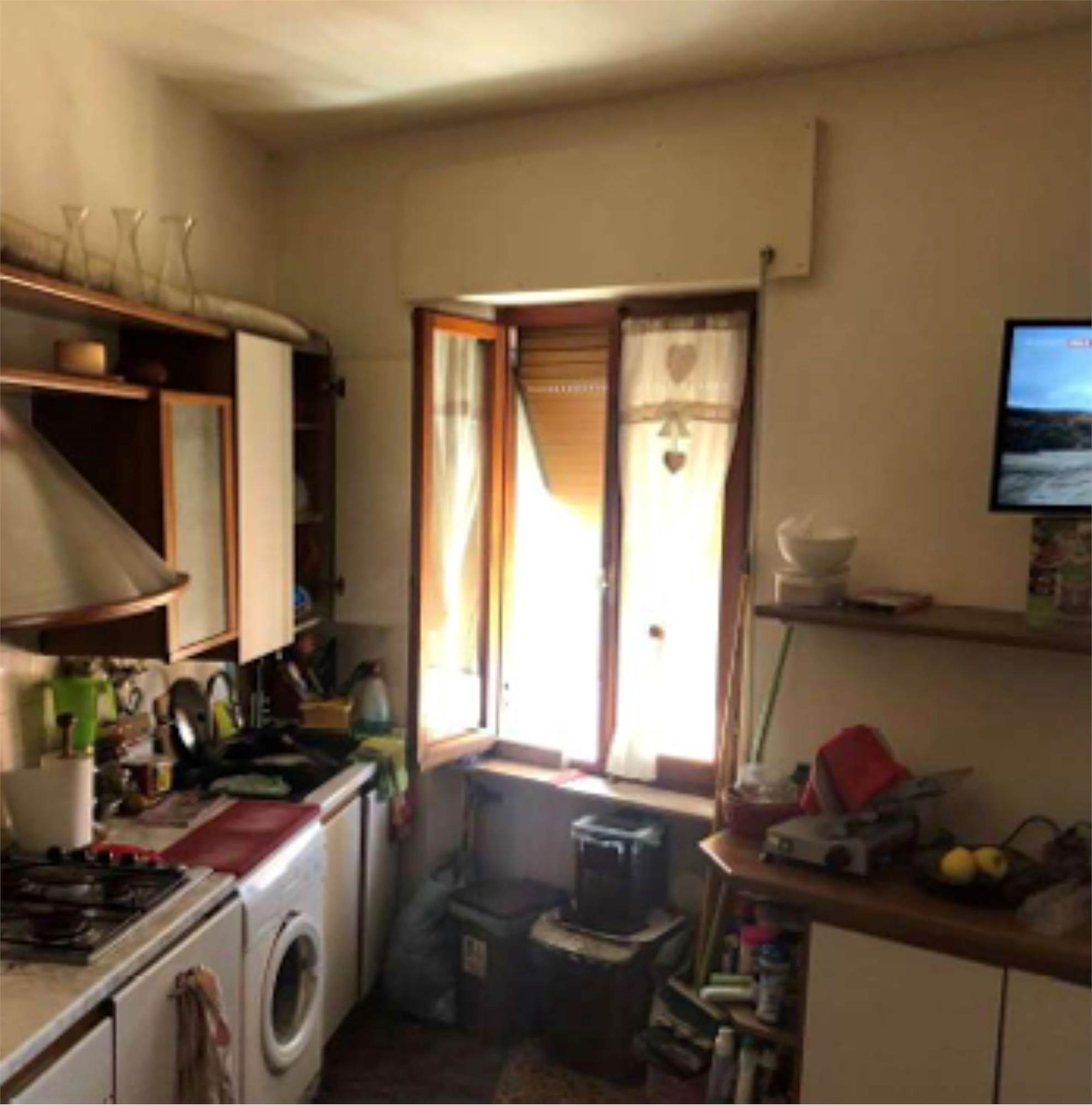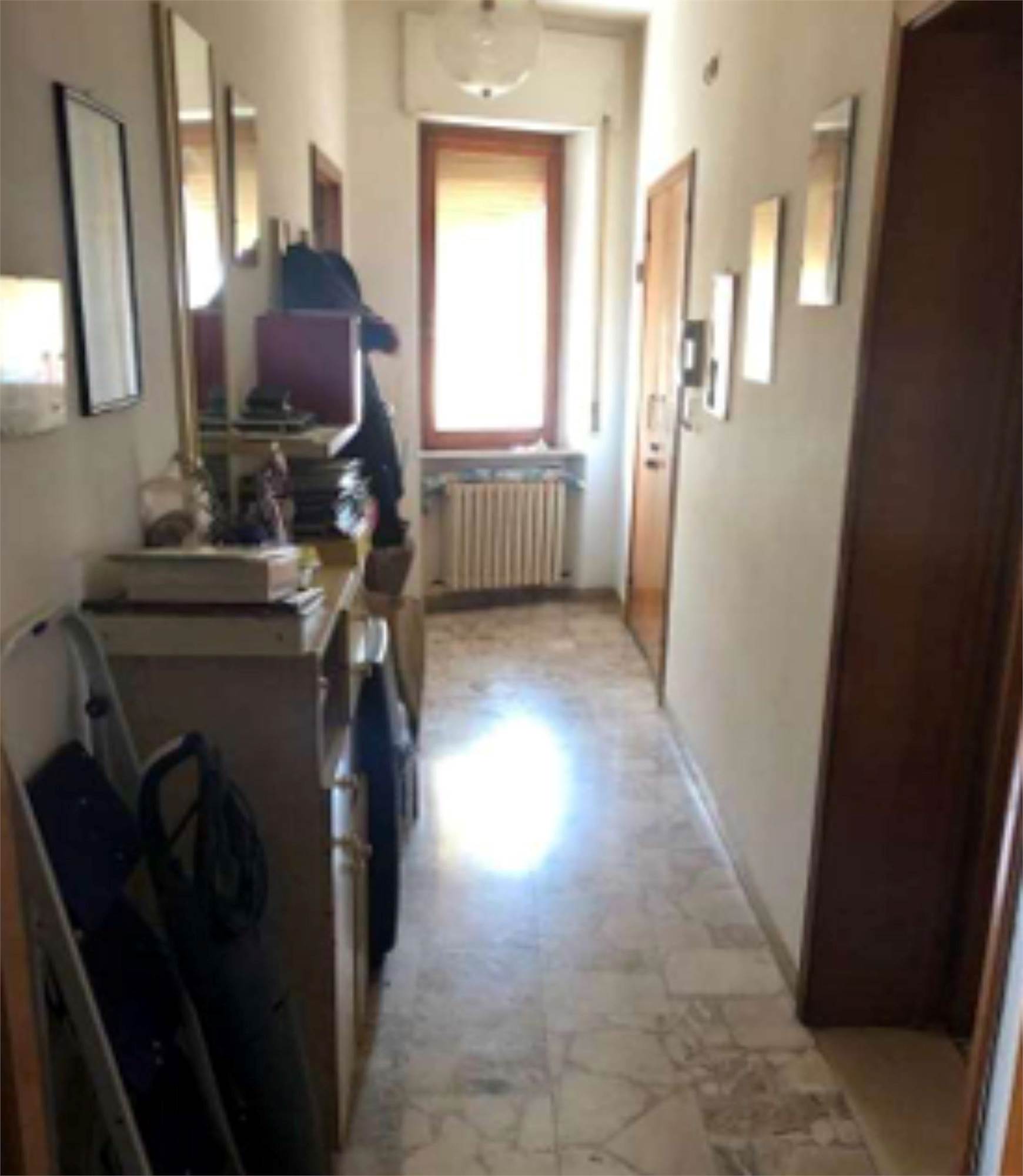 Appartamento ubicato al piano 4° con soffitta al piano sottotetto, con ingresso unico su vano scala in condomino. Dall’ingresso si accede direttamente al disimpegno, che collega una sala soggiorno con balcone, cucina/pranzo, camera singola, bagno completo di sanitari e vasca da bagno, e camera doppia con balcone.
