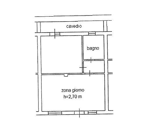 Appartamento al piano rialzato composto da zona giorno con cucina, disimpegno, camera da letto e bagno finestrato, oltre a cavedio esterno. Completa la proprietà una cantina al piano seminterrato di 12,00 mq.