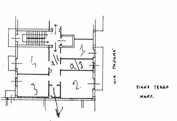 Descrizione sintetica: Appartamento al terzo piano con cantina al piano seminterrato composto da soggiorno, cucina, due camere, bagno e ripostiglio e due balconi di 7,6 mq; cantina 6,3 mq.