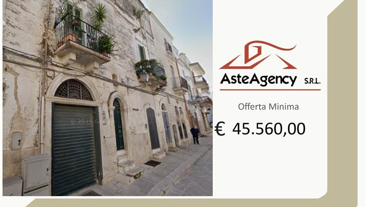 Descrizione sintetica: fabbricato indipendente di antica costruzione situato nel centro storico, sviluppato su più livelli collegati internamente. Il piano interrato è composto da tre locali comunicanti accessibili tramite scala interna dal piano terra di mq 60,00. Il piano terra comprende più ambienti, tra cui locale adibito ad autorimessa di 97,00 mq, ulteriori vani e ripostiglio. Il primo piano, con accesso indipendente, è composto da soggiorno con angolo cottura, due camere da letto e bagno, con collegamento interno tramite scala al piano superiore. Il secondo piano è costituito da lastrico solare praticabile di mq 76,00.