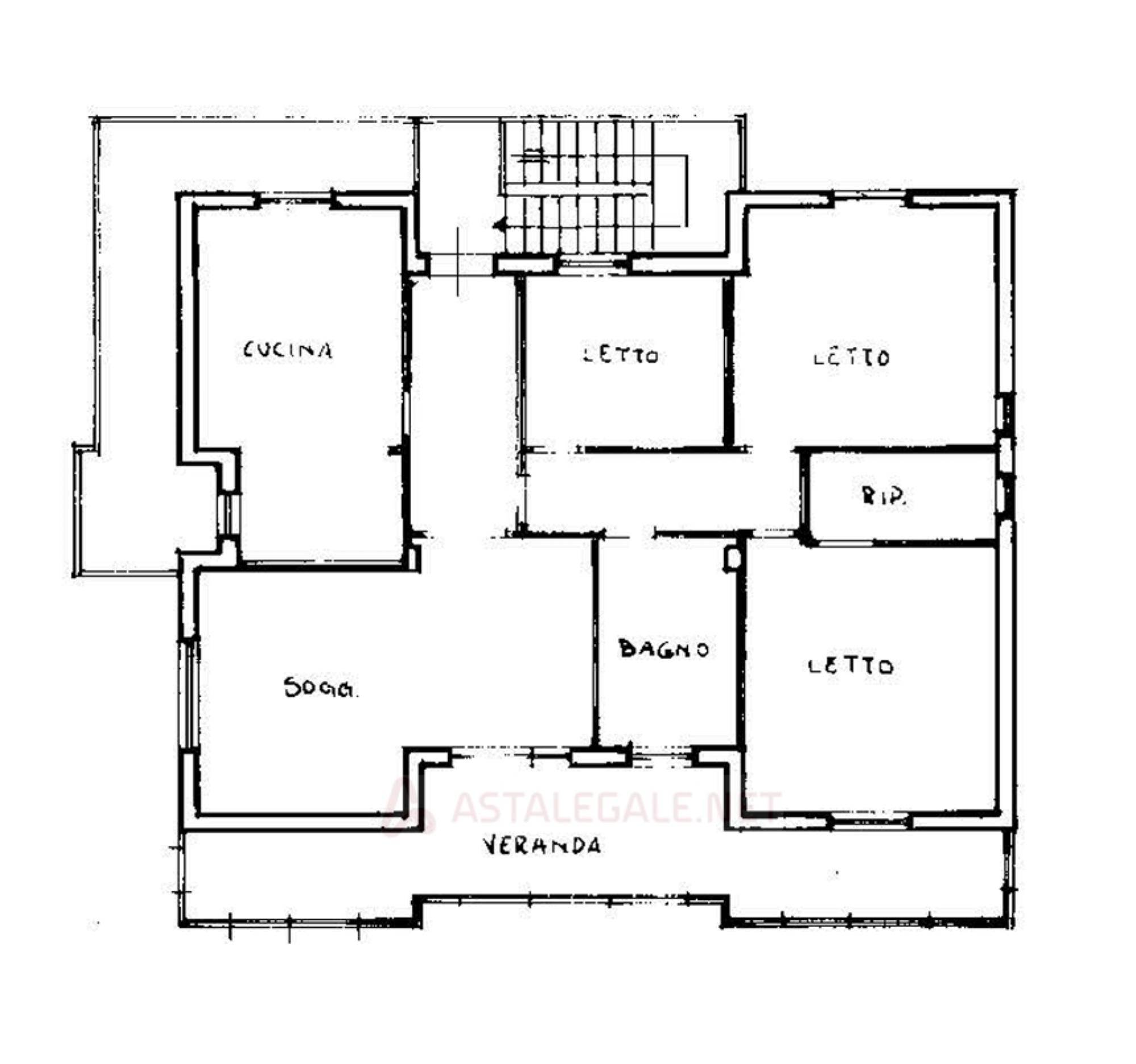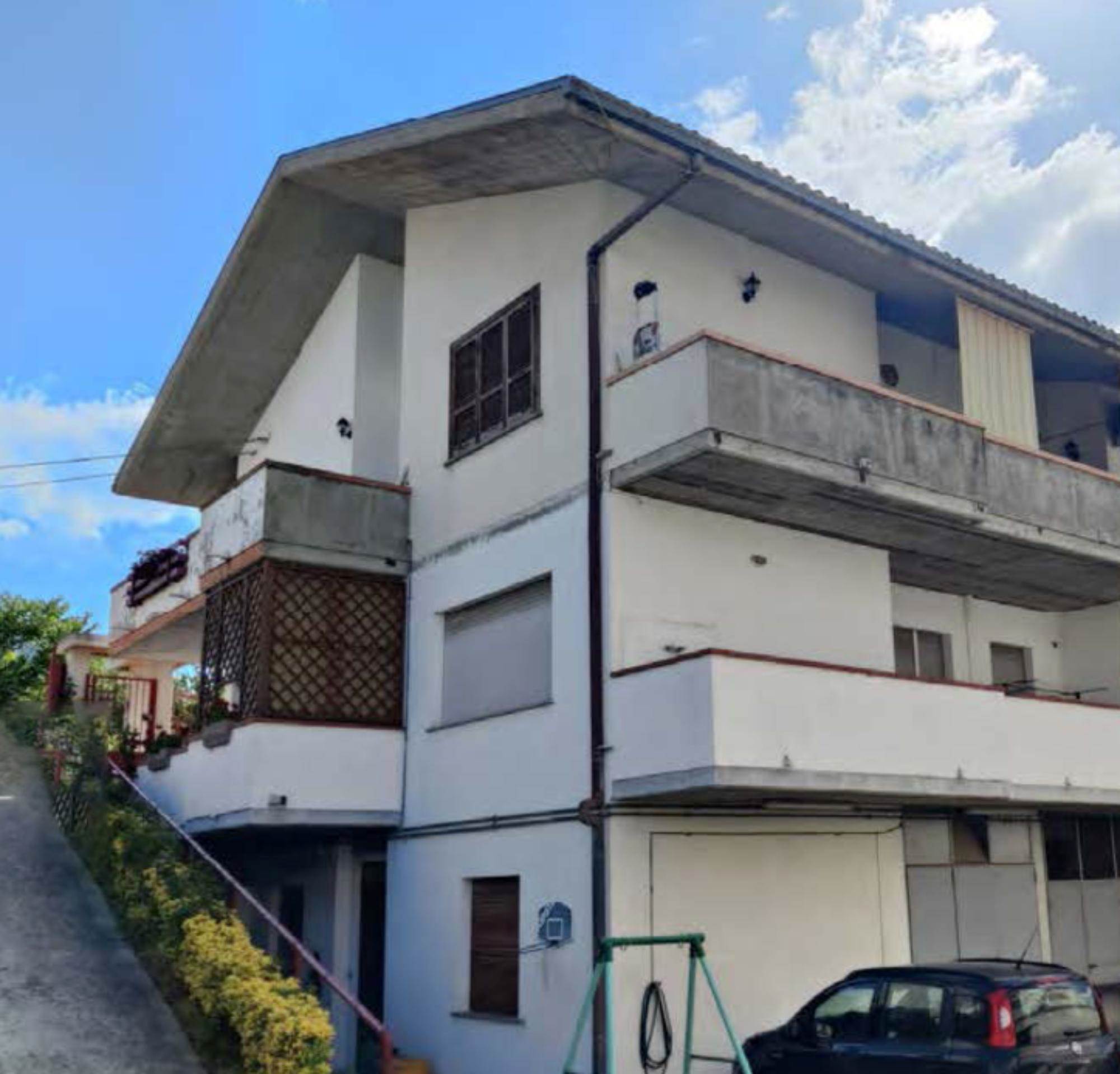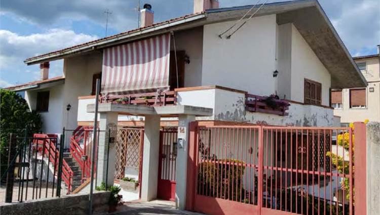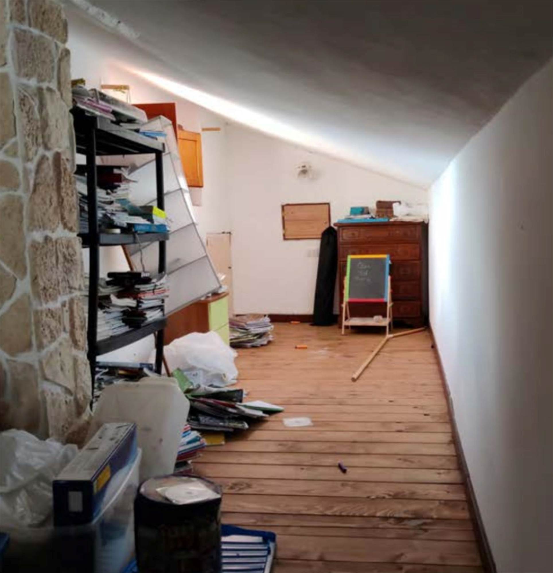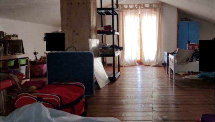Appartamento al piano primo, con corte comune al piano terra e corte comune al piano seminterrato adibito a parcheggio, con magazzino al piano seminterrato di mq 58,00. Si compone di soggiorno, cucina, tre camere, bagno, un balcone di mq 40,00 e una soffitta al piano secondo di mq 46,00.