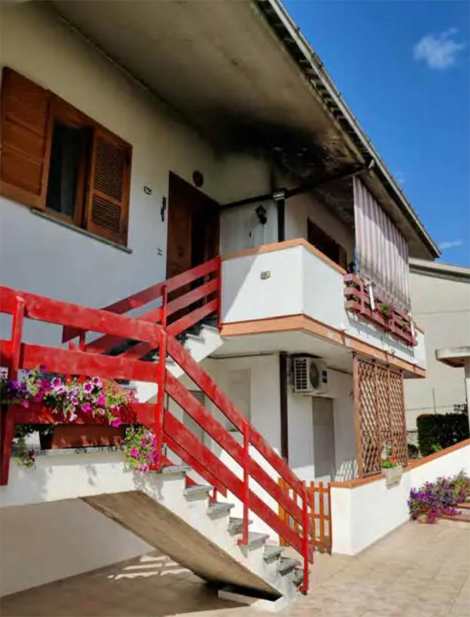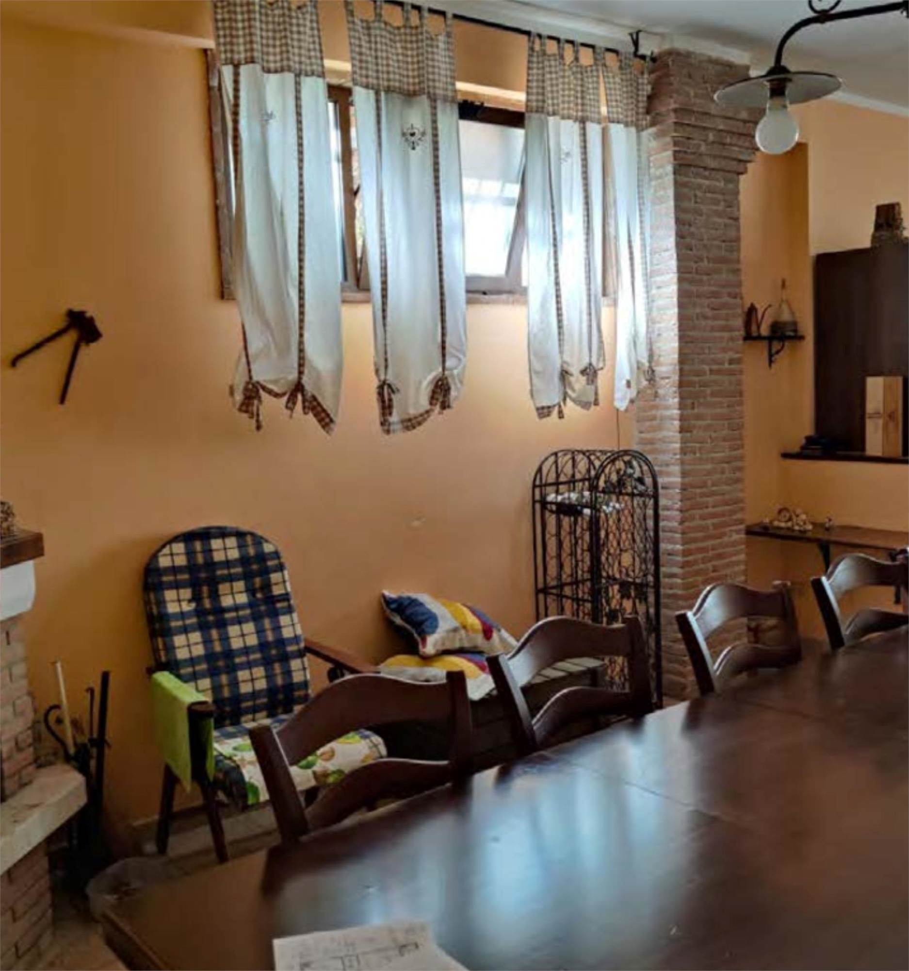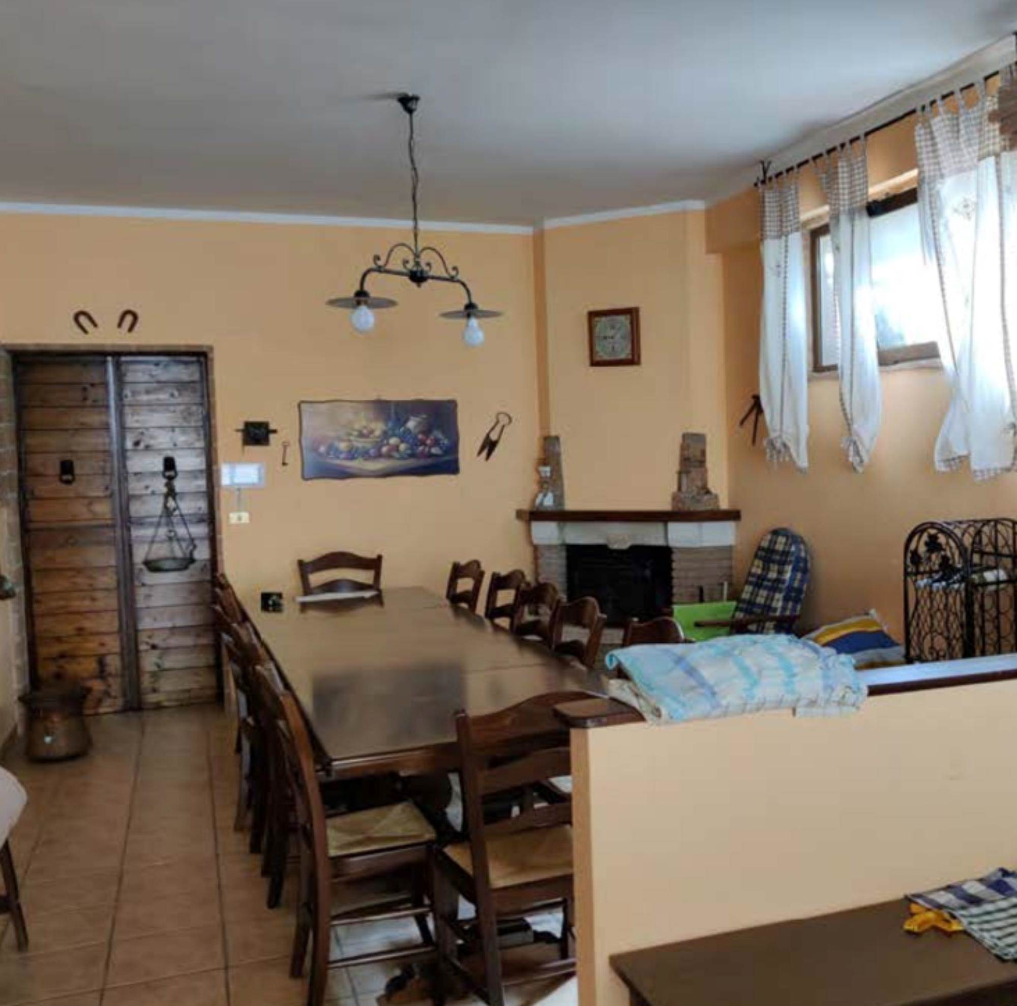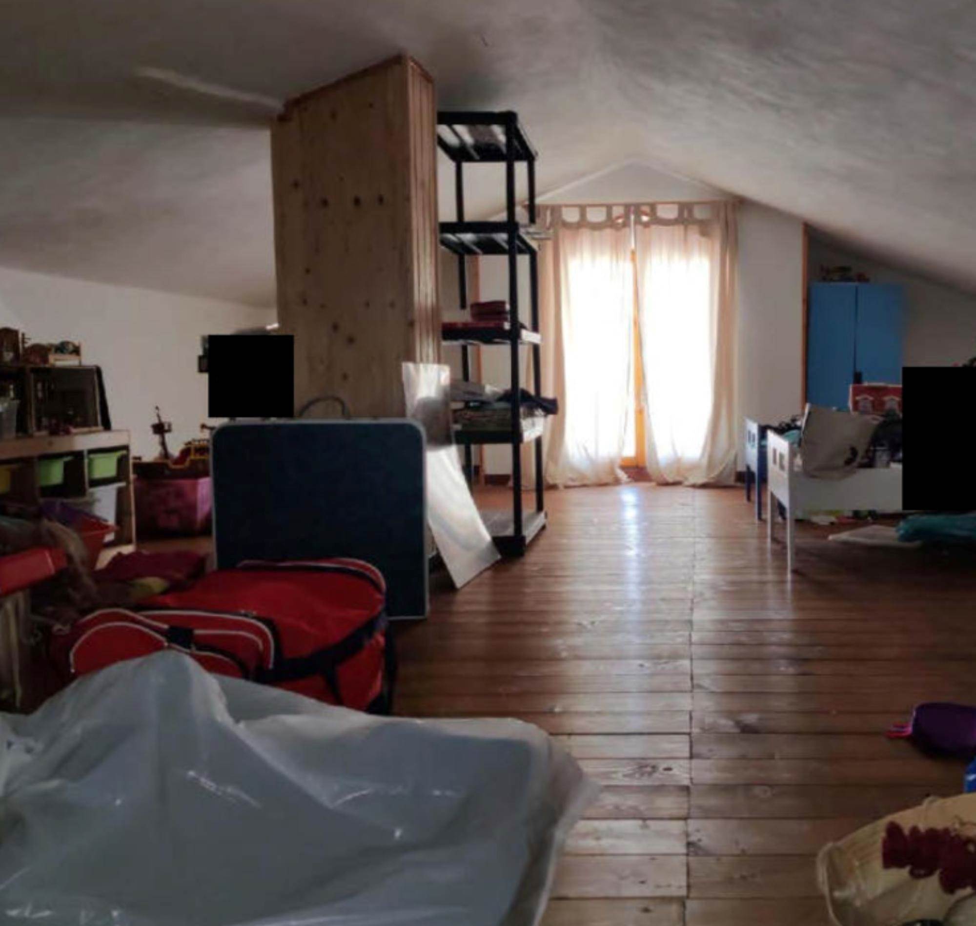 Appartamento al piano primo, con corte comune al piano terra e corte comune al piano seminterrato adibito a parcheggio, con magazzino al piano seminterrato di mq 58,00. Si compone di soggiorno, cucina, tre camere, bagno, un balcone di mq 40,00 e una soffitta al piano secondo di mq 46,00.