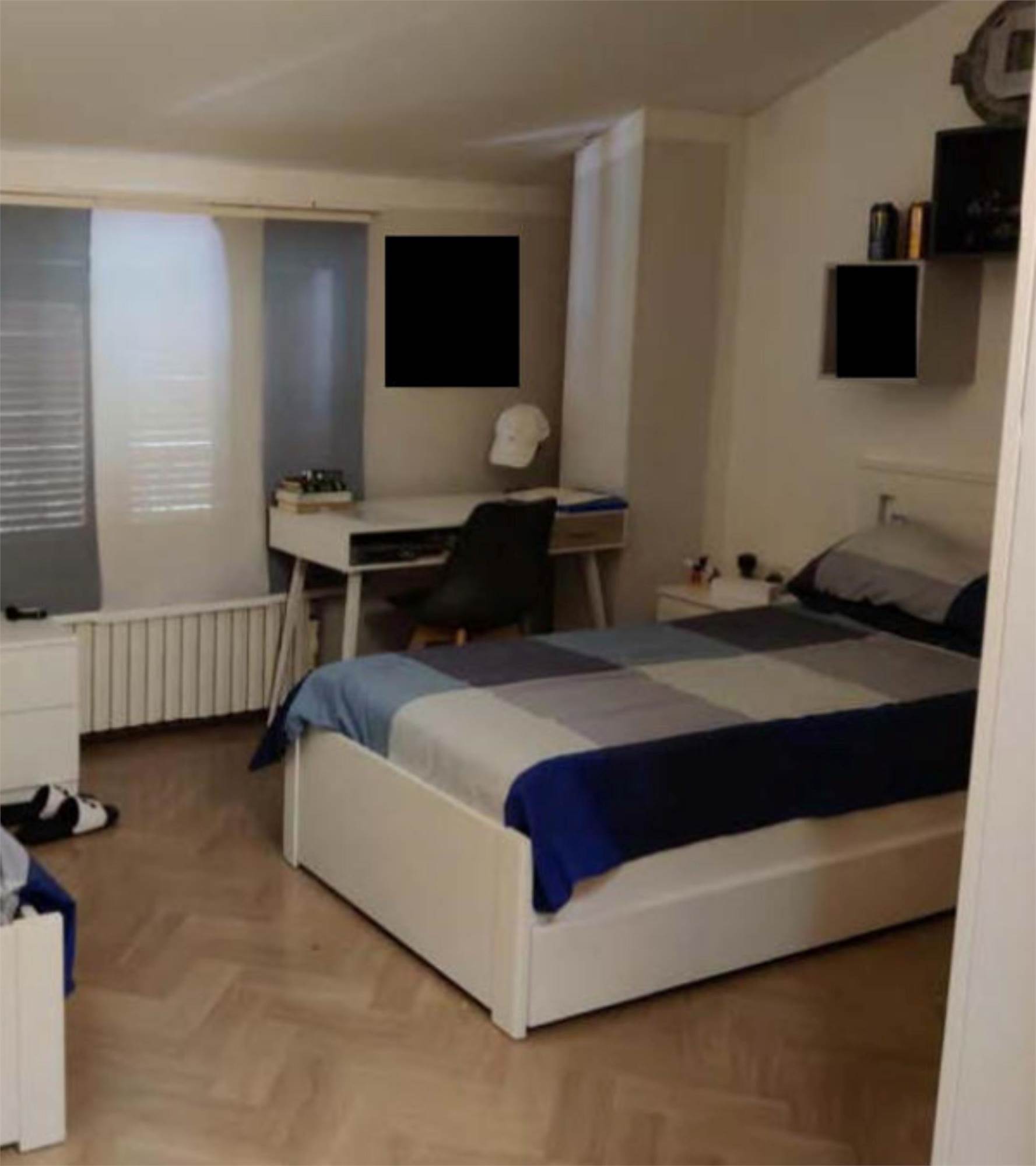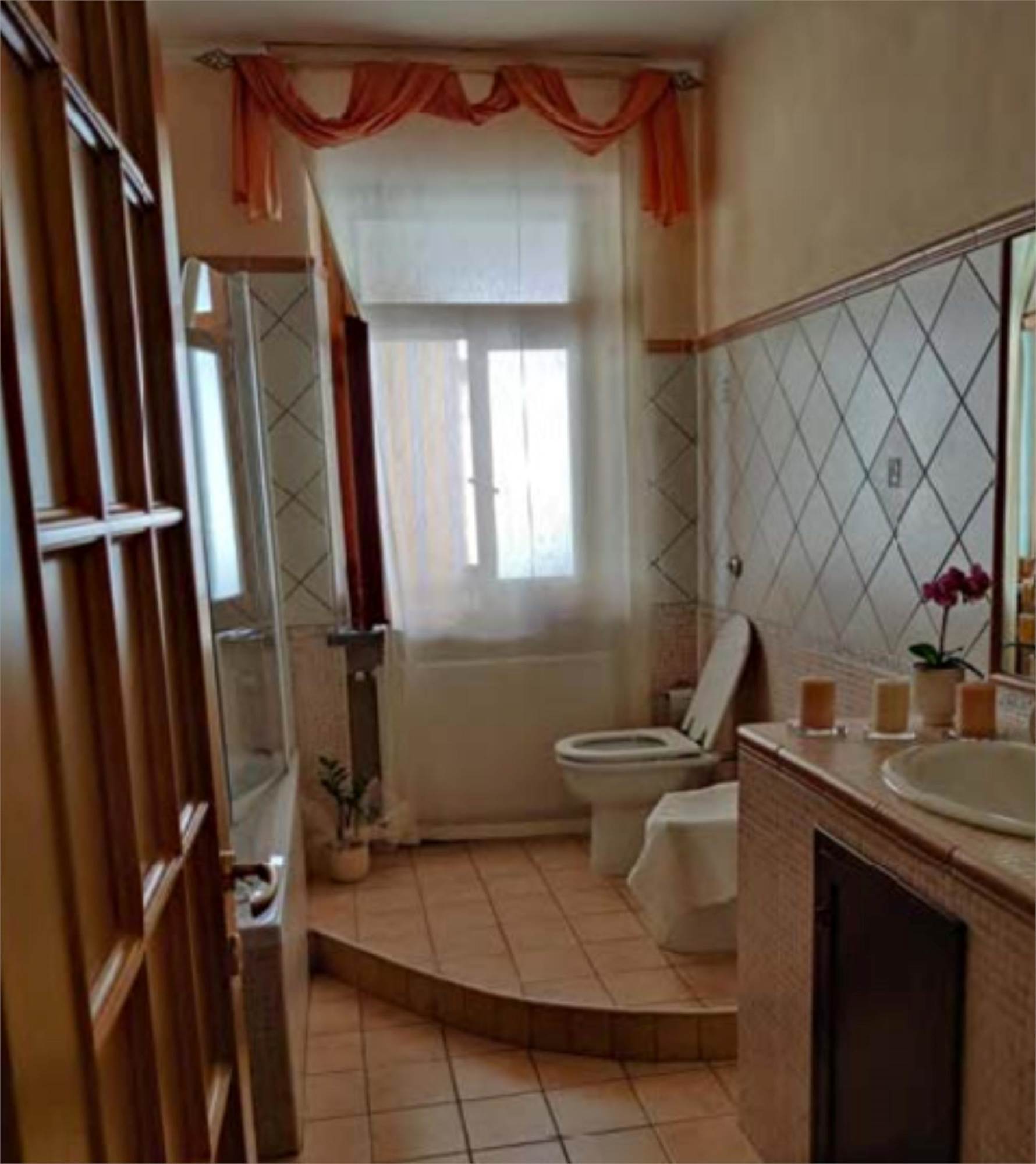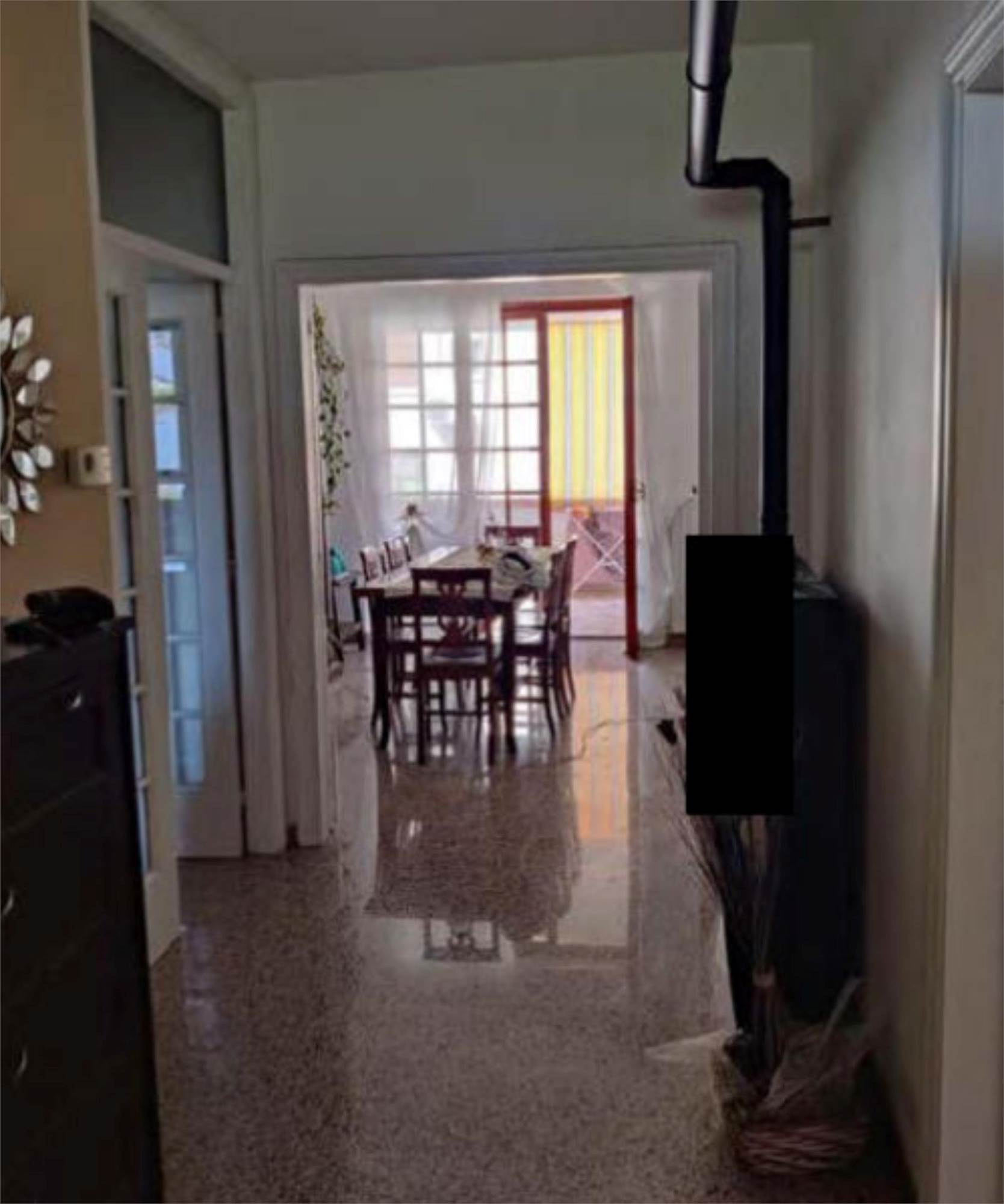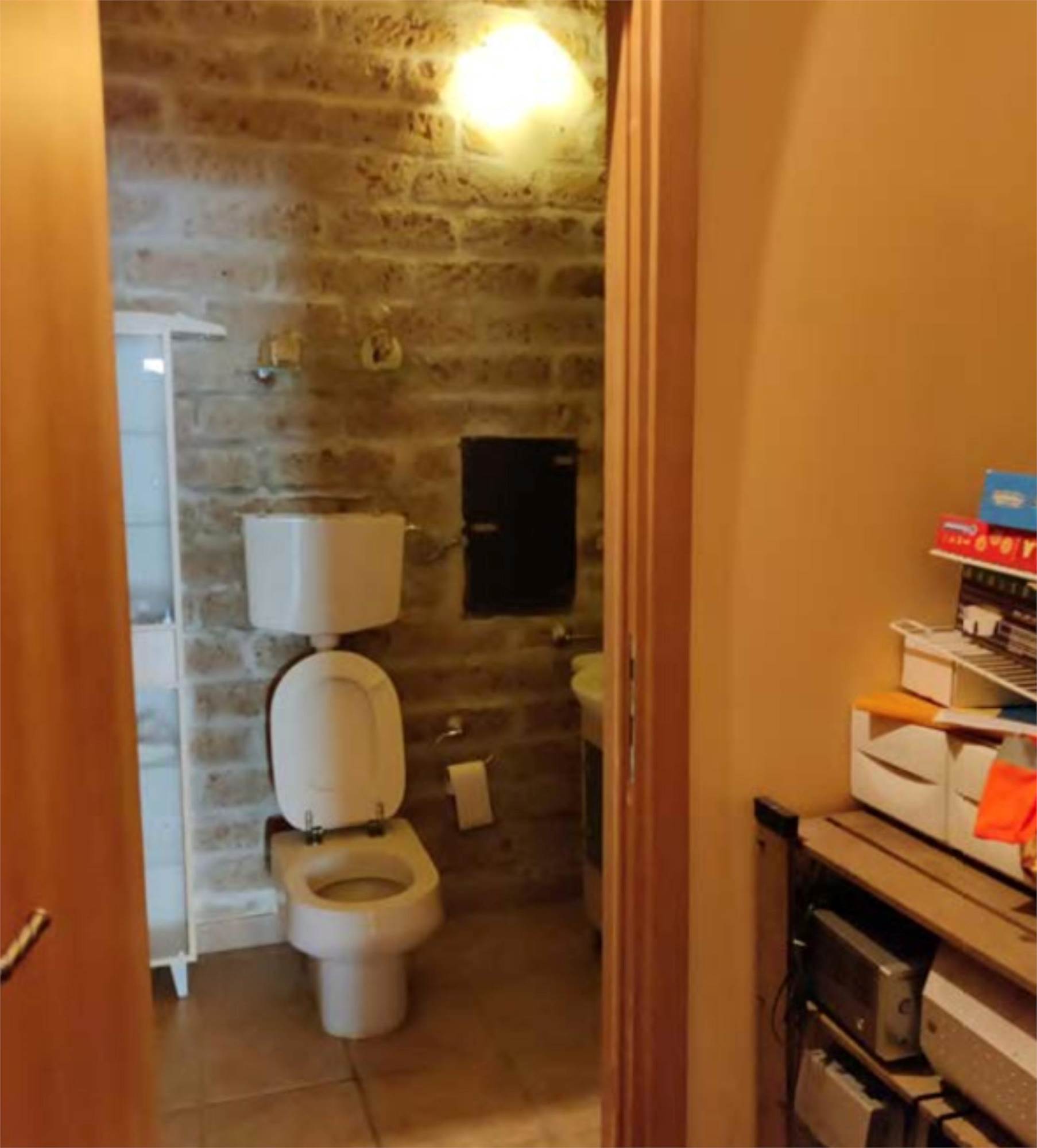 Appartamento al piano primo, con corte comune al piano terra e corte comune al piano seminterrato adibito a parcheggio, con magazzino al piano seminterrato di mq 58,00. Si compone di soggiorno, cucina, tre camere, bagno, un balcone di mq 40,00 e una soffitta al piano secondo di mq 46,00.