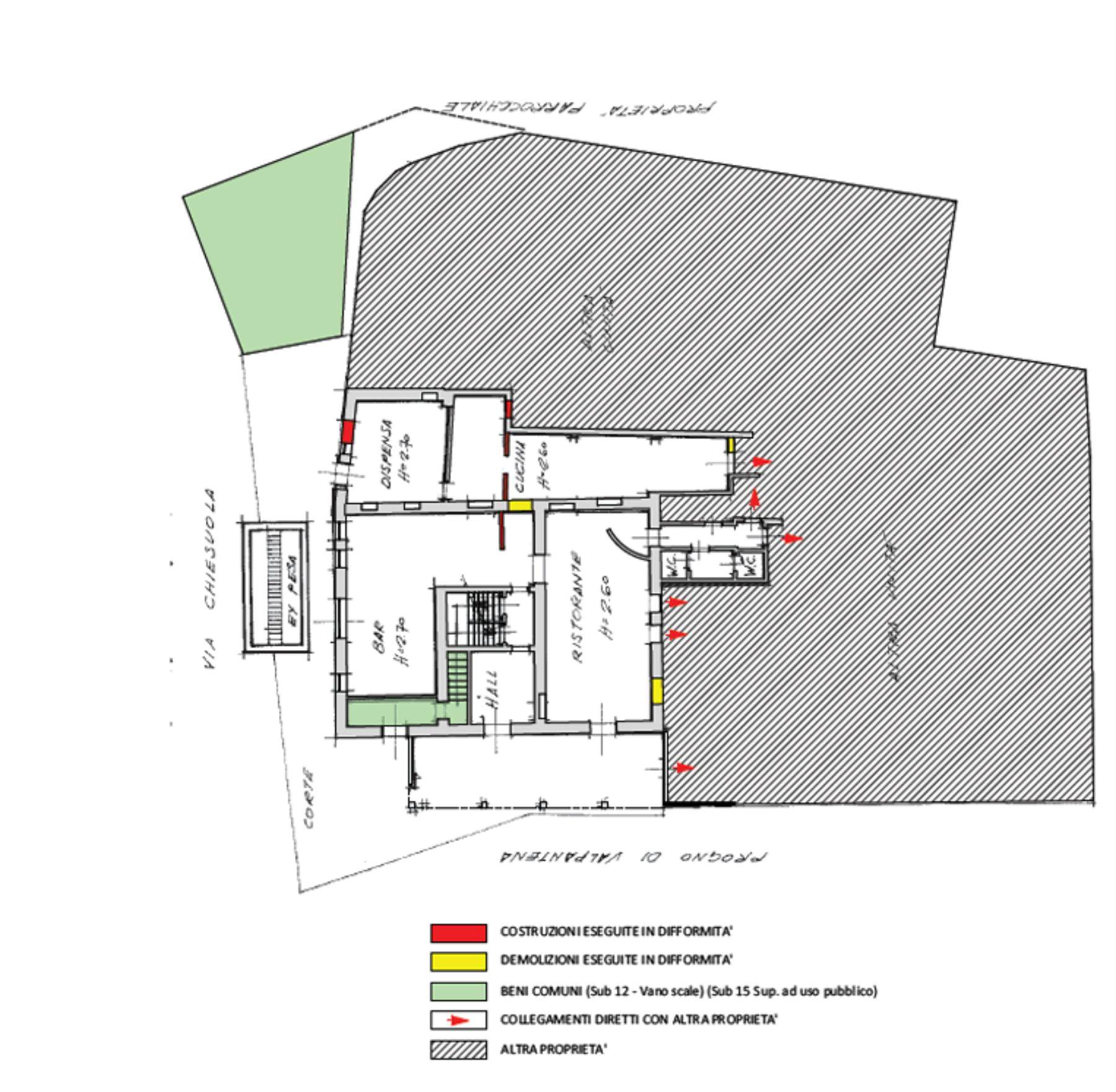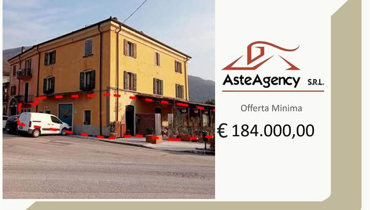 Descrizione sintetica: Locale commerciale (ex ristorante) composto al piano terra da ingresso, due sale, cucina, dispensa, disimpegno e servizi igienici; al piano interrato presenti tre locali ad uso cantina e locali tecnici per una superficie totale di mq 152,00. Completa la proprietà un’area esterna porticata e cortiliva. Immobile inserito in fabbricato su più livelli con parti comuni. Area esterna e porticata di totale mq 140,00.