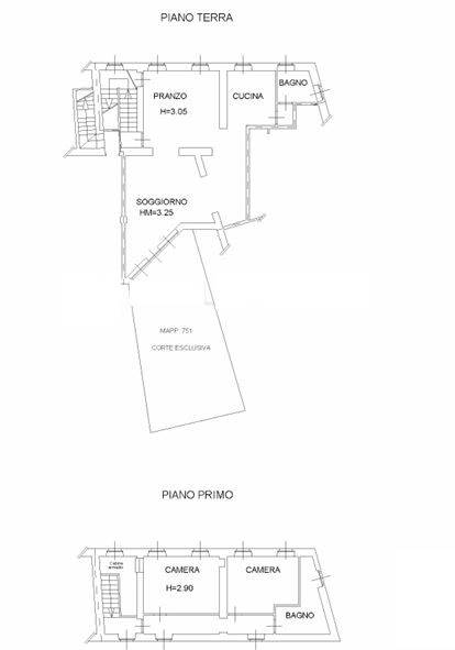 Porzione di fabbricato composto al piano terra ingresso-soggiorno, pranzo, cucina, bagno e vano scala; al piano primo corridoio, due camere, e bagno. Presente area/corte esclusiva di 60,00 mq.