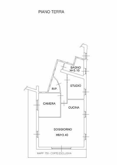 Abitazione al piano terra composta da ingresso-soggiorno con cucina a vista, disimpegno, bagno, ripostiglio, camera, studio, area esterna esclusiva (corte/giardino) 31,00 mq;