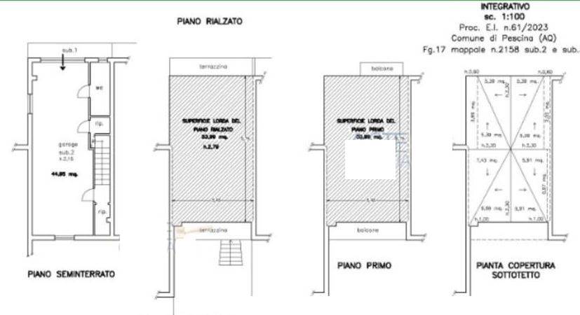 Descrizione sintetica: Abitazione a schiera, disposta su tre livelli con box auto al piano seminterrato di mq 44,00. Composta da soggiorno, cucina, tre camere, doppio bagno e secondo piano sottotetto oltre a tre balconi di mq 21,29.