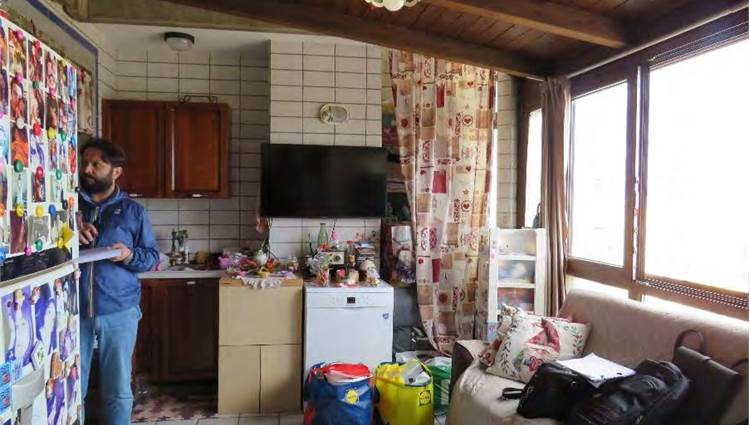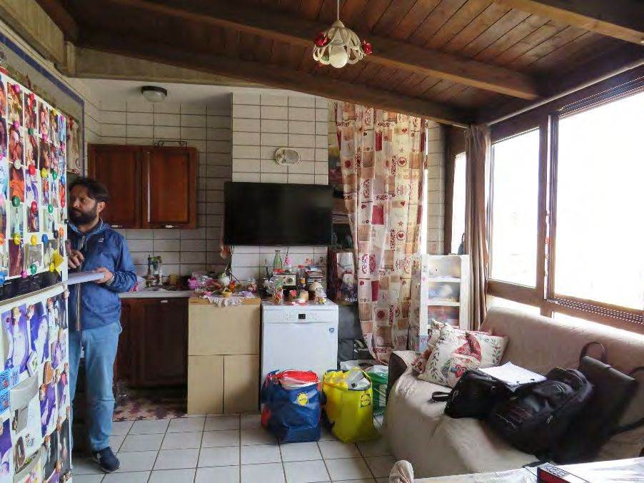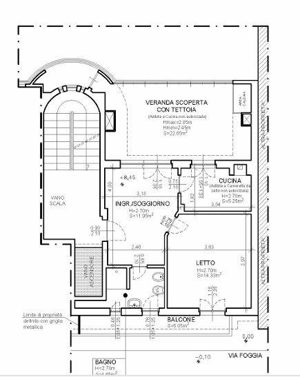 Descrizione sintetica: Appartamento al piano terzo costituito da ingresso-soggiorno che si affaccia sulla veranda scoperta con tettoia adibita a cucina. La zona notte è composta da una camera da letto, un bagno e una cameretta da letto posizionata in un vano individuato come cucina. Balcone di mq 5,05. Deposito di 1,00 mq ed il lastrico solare (ad uso esclusivo dell’esecutato) di 41,60 mq, che ospita un locale di 9,80 mq.