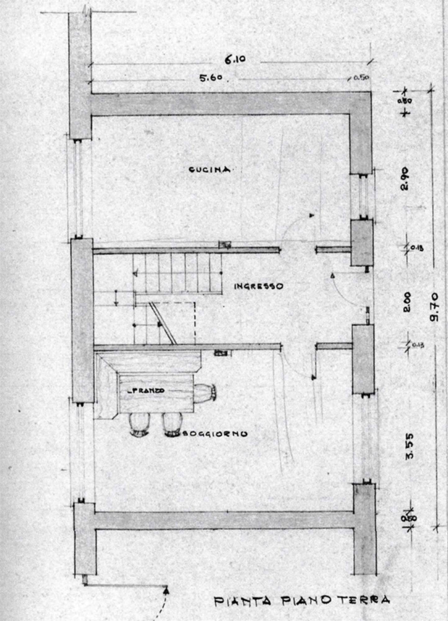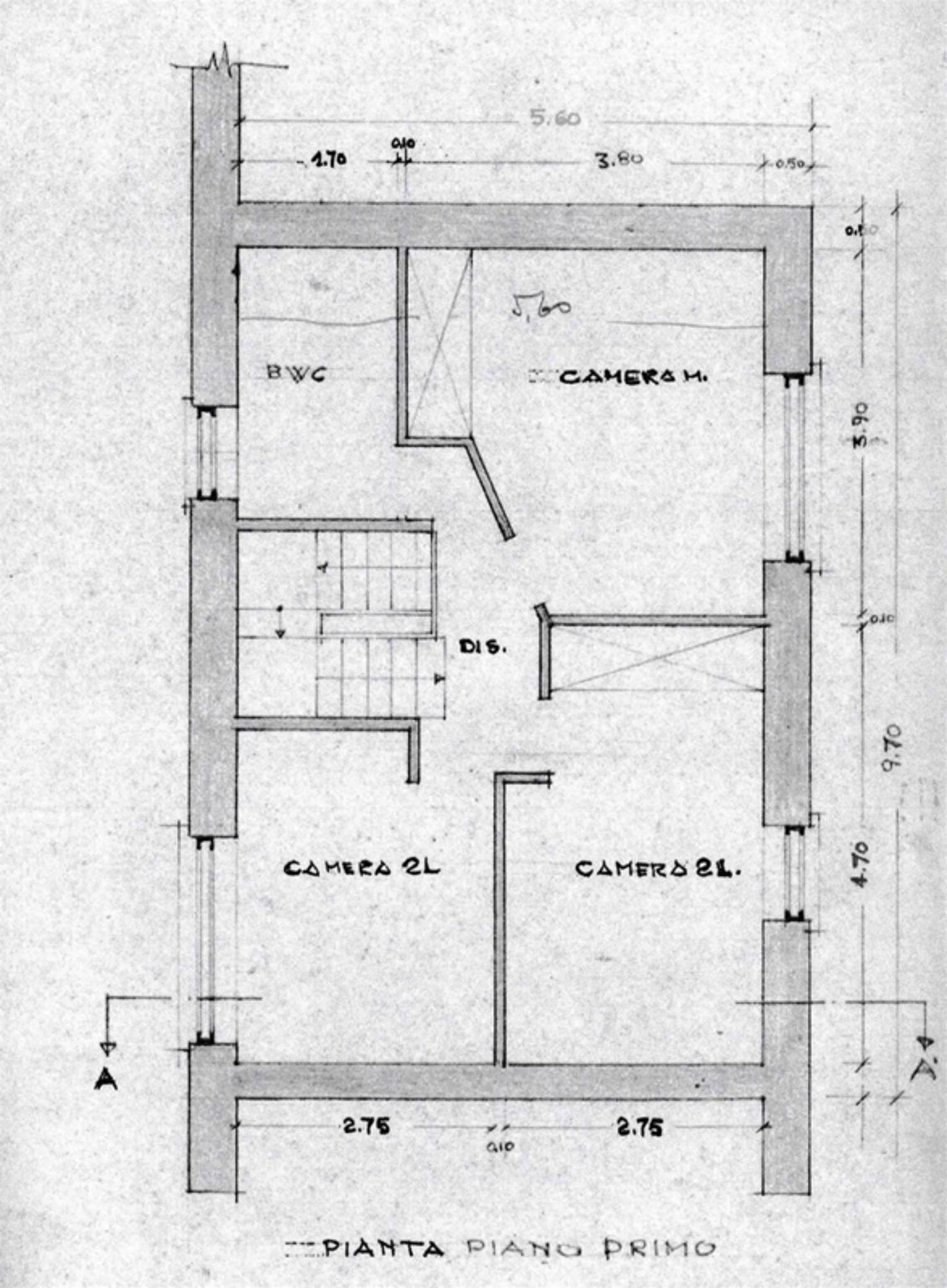 Porzione di fabbricato su due piani fuori terra, con area esterna, in parte ad uso esclusivo, in parte in comune con altra unità ed in parte utilizzata come quota parte di via Donizetti. Composto al piano terra da entrata, soggiorno, bagno, pranzo, angolo cottura aperto sul pranzo, vano scale e nel sottoscala c'è un mini-vano contenente la centrale termica; al piano primo da disbrigo, ripostiglio, 2 camera, bagno, terrazzo di mq 4,50.