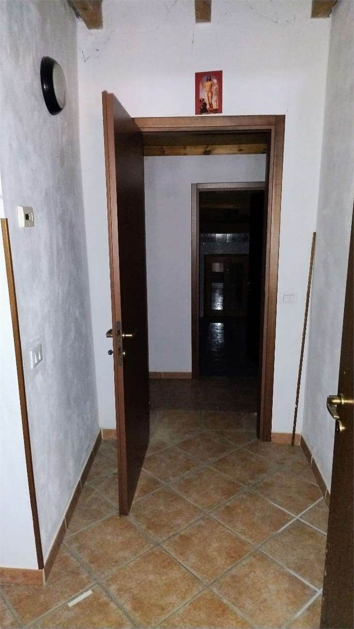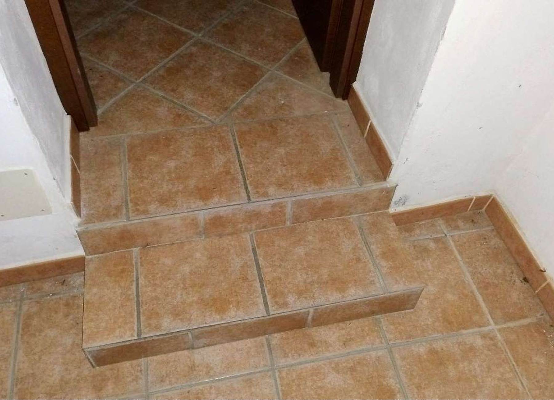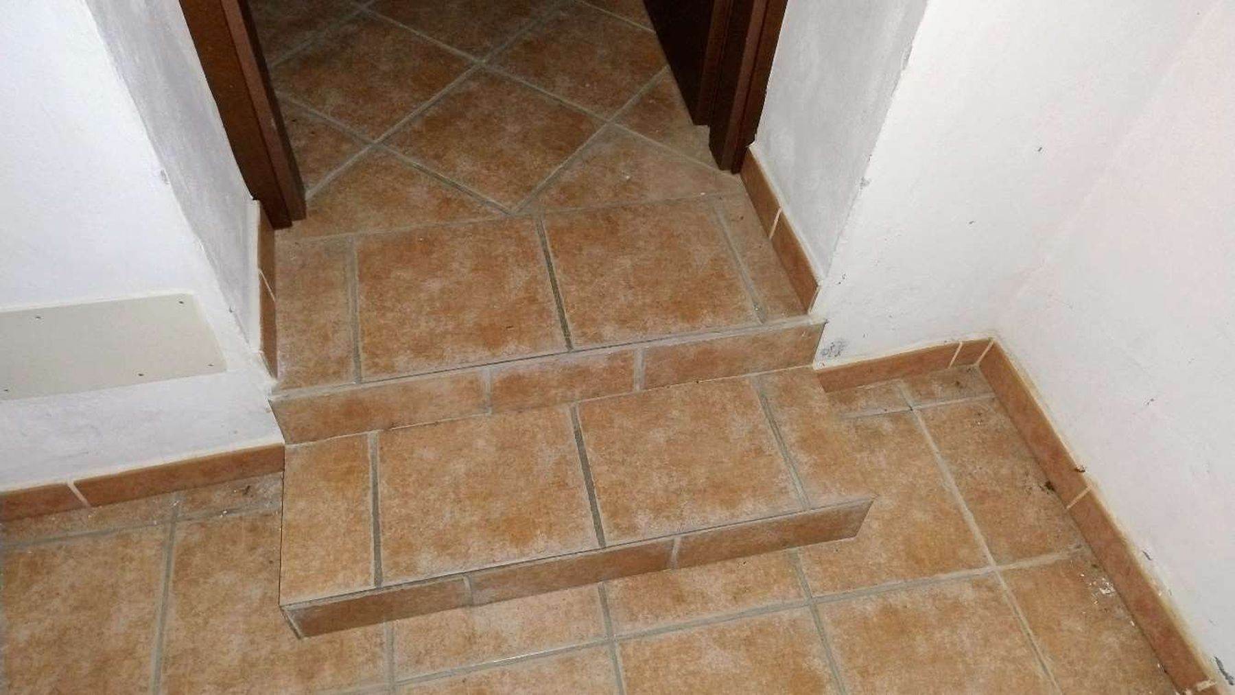 Descrizione sintetica: appartamento di 145 mq al piano primo composto da vano scala con terrazza d’accesso, cucina, tre disimpegni, due camere, due bagni, dispensa e ripostiglio, con annessa porzione di area adibita a giardino al piano terra in lato sud.