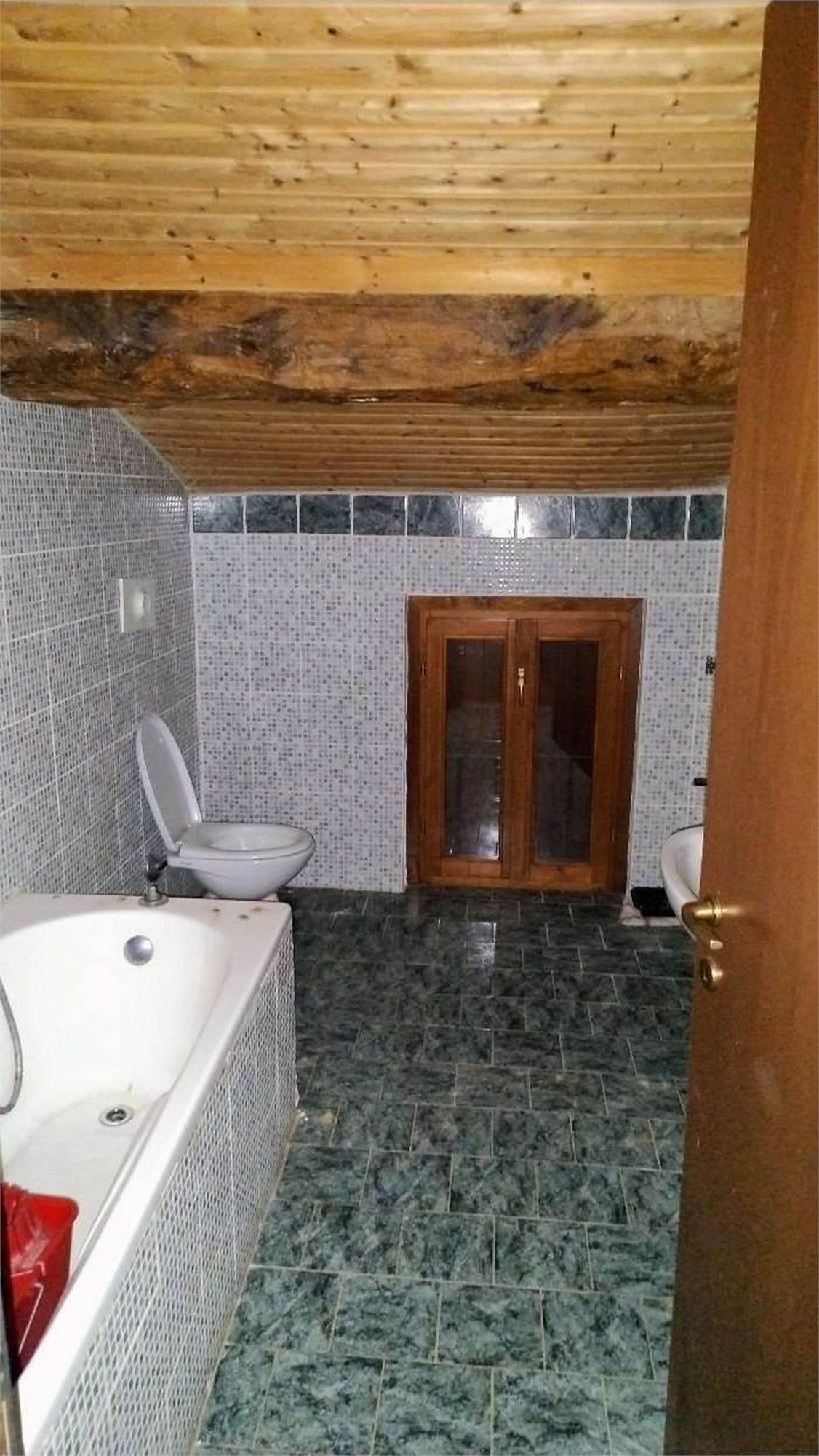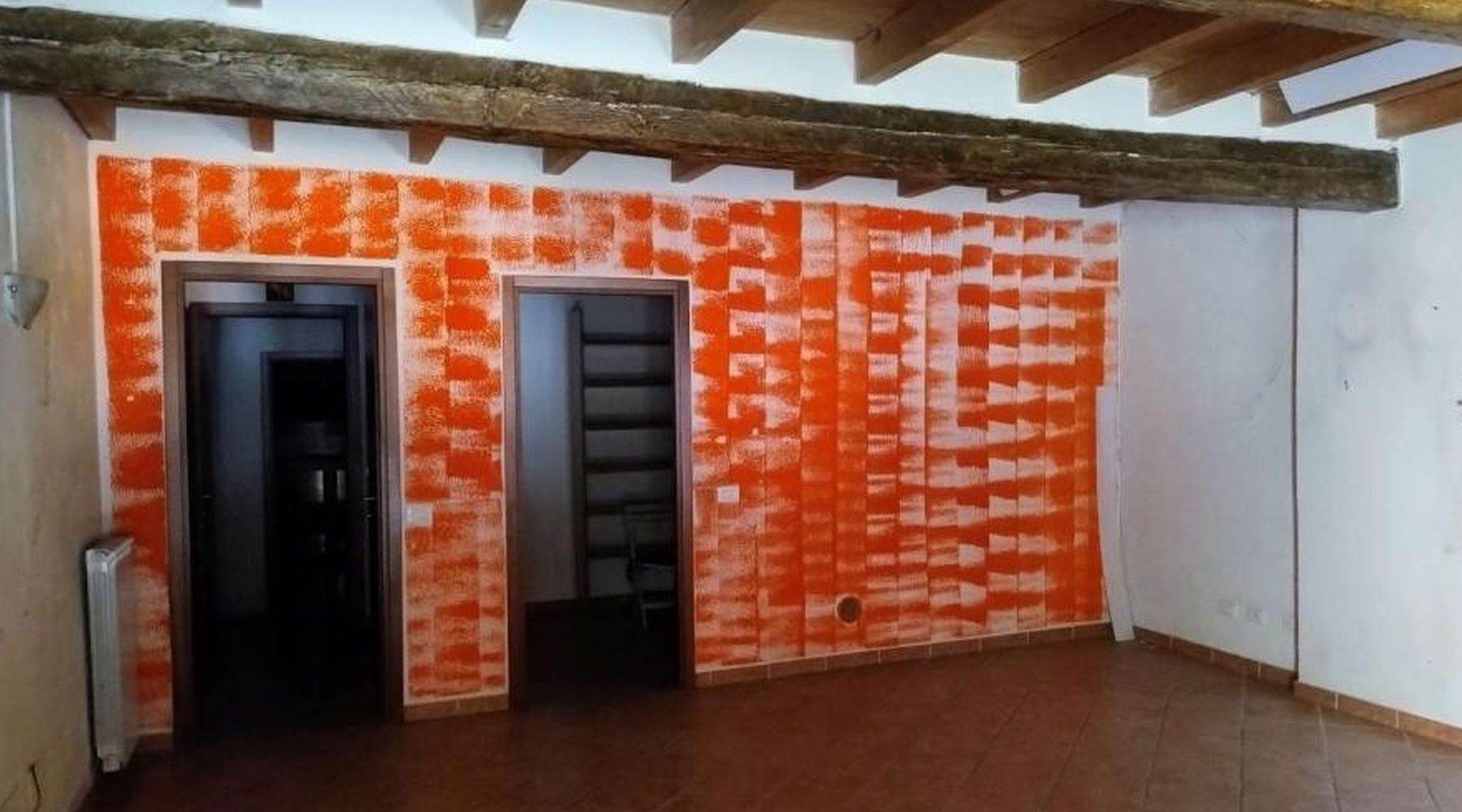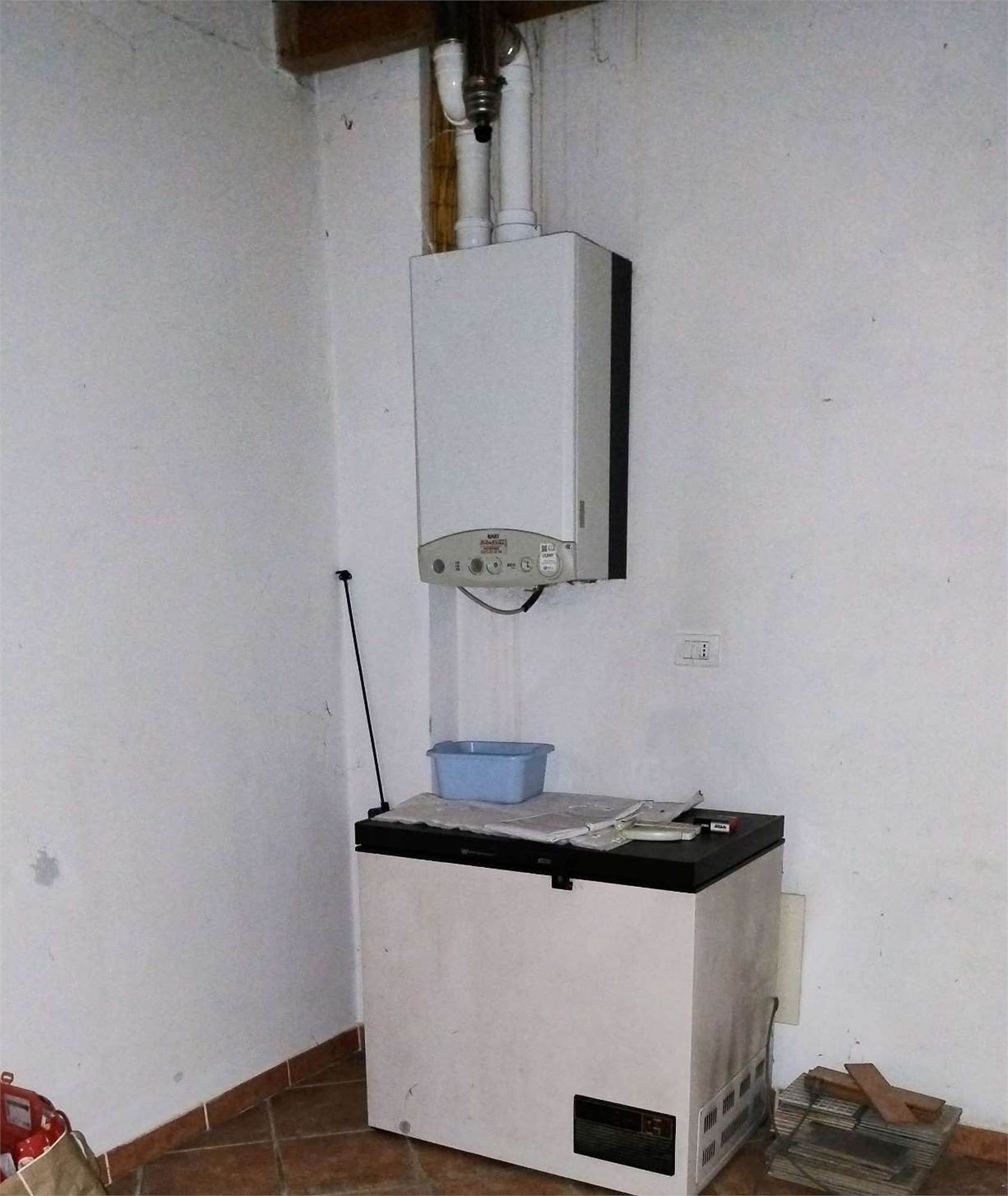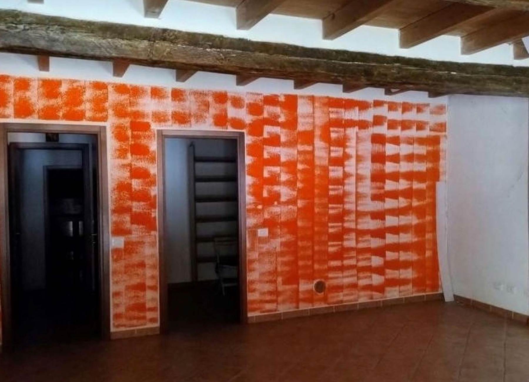 Descrizione sintetica: appartamento di 145 mq al piano primo composto da vano scala con terrazza d’accesso, cucina, tre disimpegni, due camere, due bagni, dispensa e ripostiglio, con annessa porzione di area adibita a giardino al piano terra in lato sud.