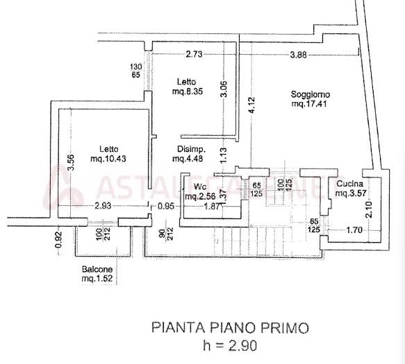 appartamento composto da un ingresso, soggiorno, due camere da letto, un bagno e un cucinino oltre a balcone scoperto di 8,97 mq.