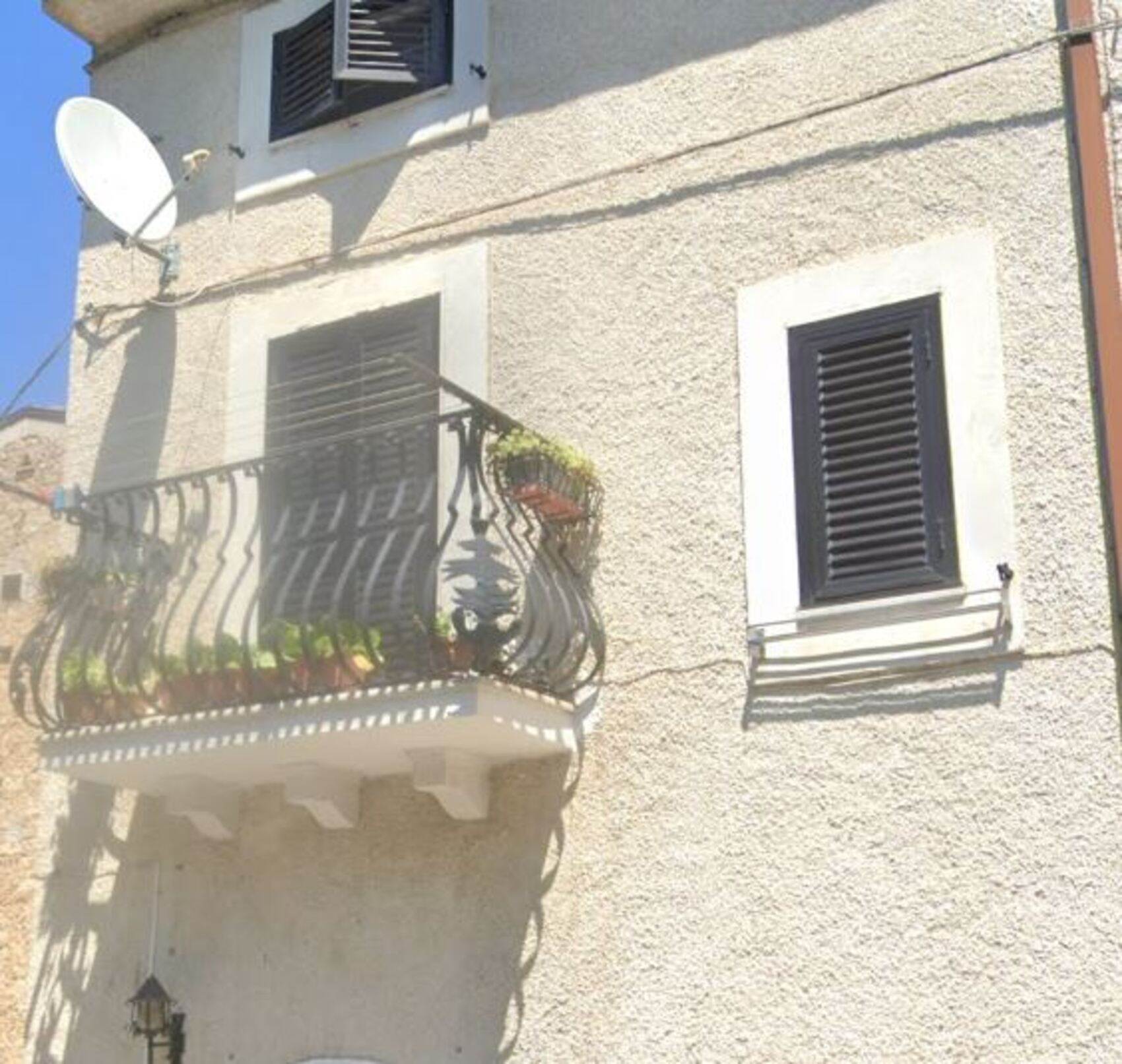 Descrizione sintetica: Porzione di fabbricato su tre livelli collegati tra loro da una gradinata interna. Dal portone d’ingresso, posto al piano terra si accede direttamente al vano soggiorno, al vano cucina, al ripostiglio ed alla scala di collegamento ai vari piani con piccolo vano sottoscala. Al piano primo vi è una gradinata, un corridoio che disimpegna il bagno, ed una camera da letto con annesso balcone. Proseguendo in salita sulla gradinata interna si accede al piano secondo dove un ulteriore corridoio disimpegna un bagno e altre due camere da letto.