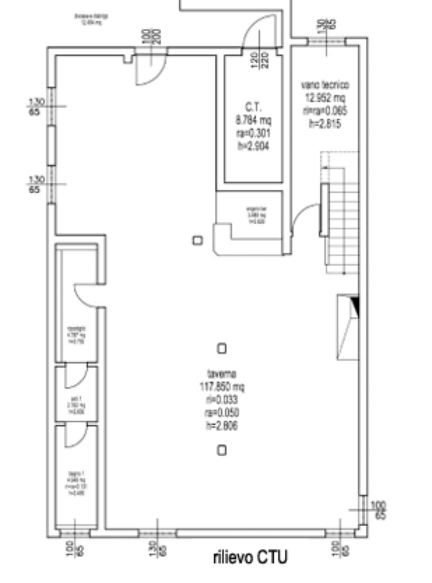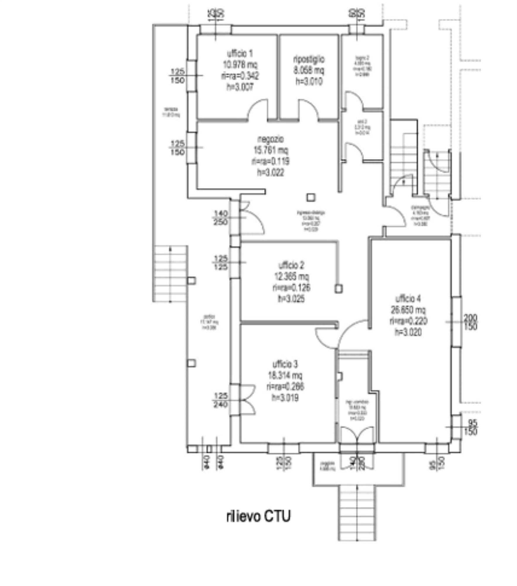 Descrizione sintetica: negozio con uffici, una taverna con servizi ed un’area urbana adibita a deposito. Il tutto attestato rispettivamente al rialzato, al seminterrato e al piano terra di un compendio immobiliare; superficie commerciale totale beni 360,62 mq.