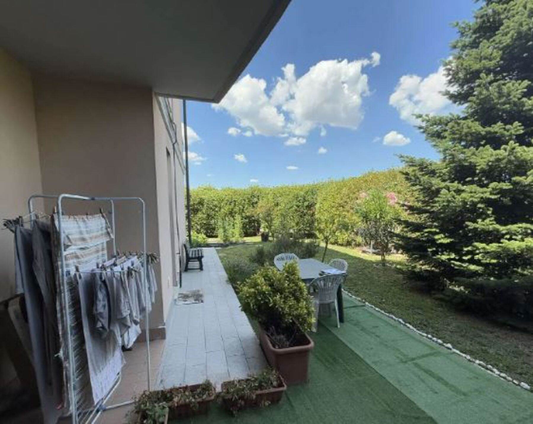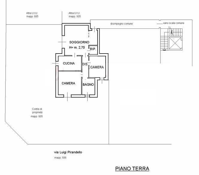 Descrizione sintetica: appartamento al piano terra composto da soggiorno, cucina, 1 bagno, disimpegno, 2 camere, 1 ripostiglio e cortile di proprietà oltre a cantina al piano interrato di mq 11,00 e box auto doppio della consistenza di 33 mq posto al piano interrato. Cortile di mq 224,00.