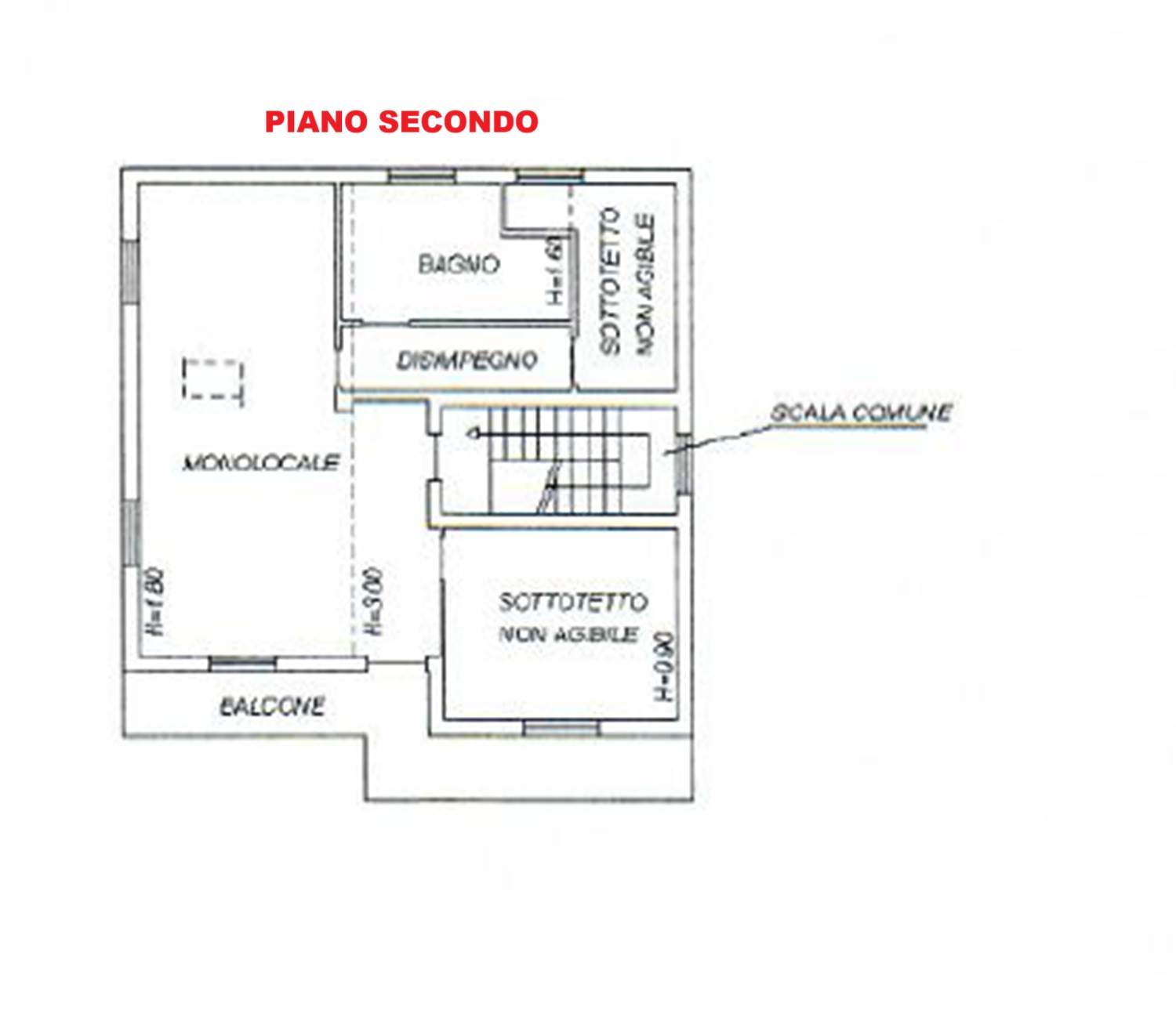 L’immobile è composto da monolocale con balcone e da ampio bagno, piu sottotetto non abitabile.