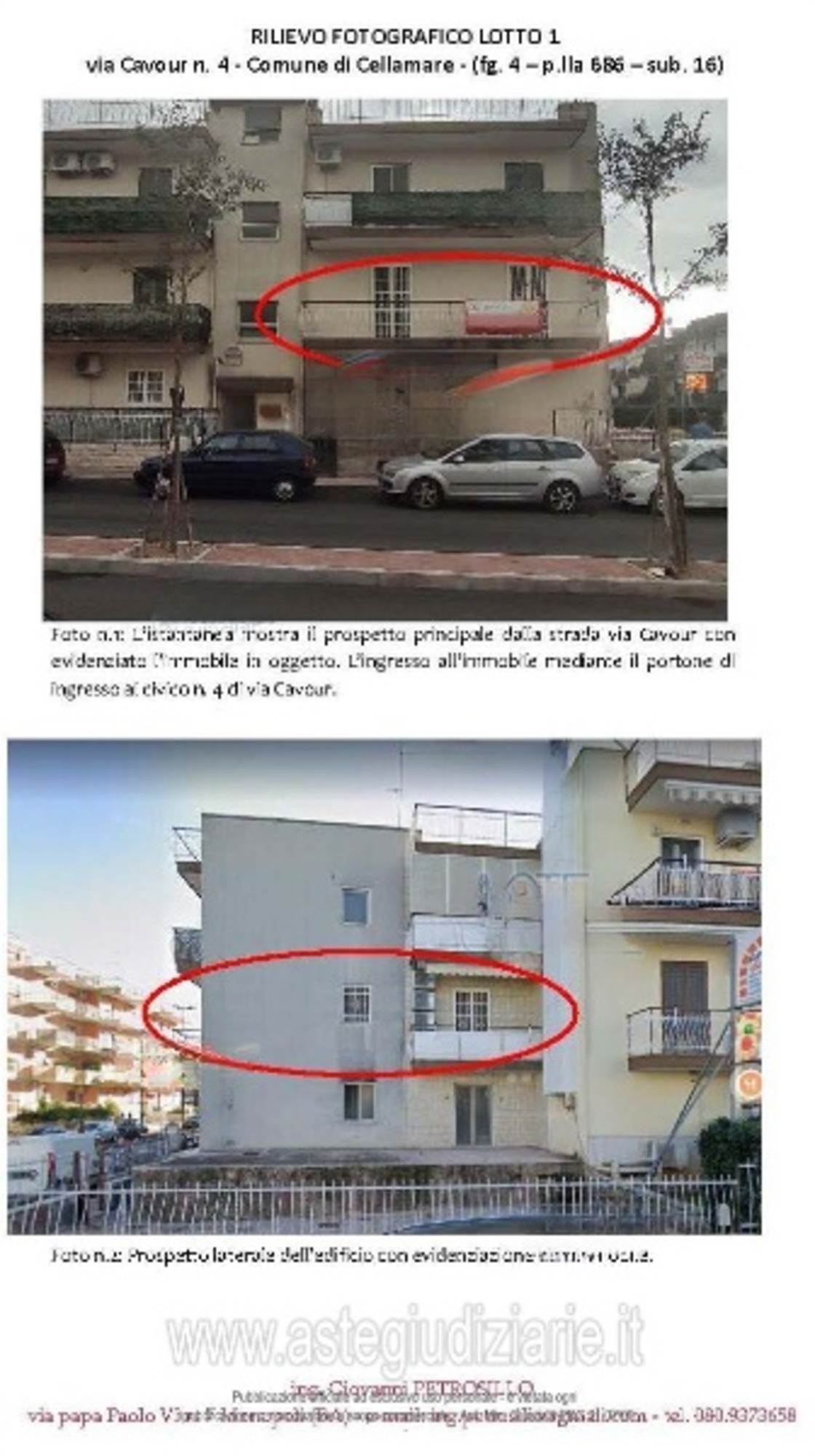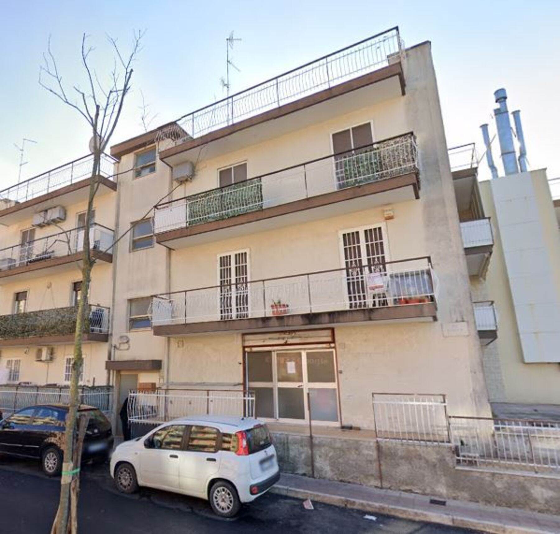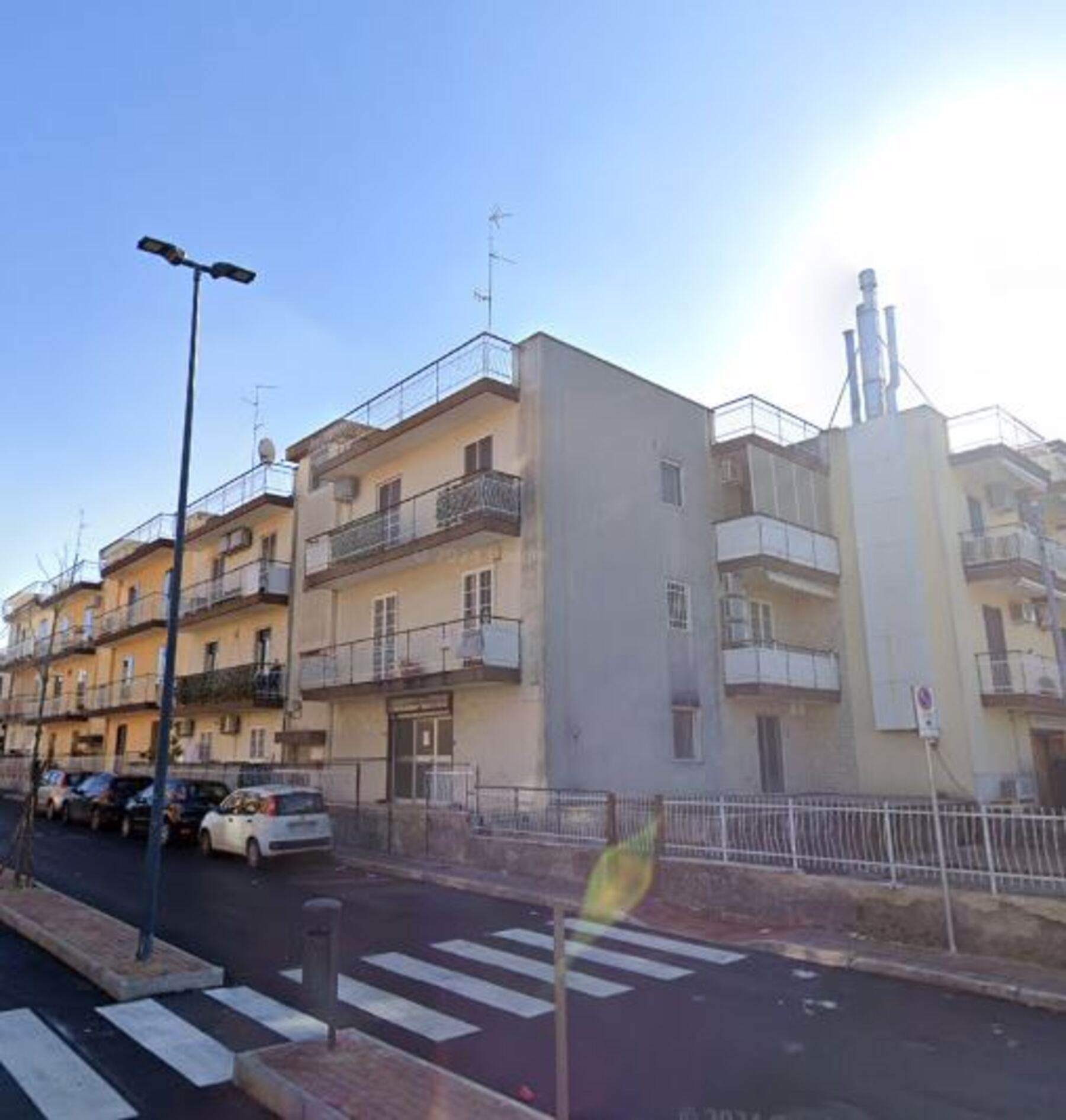 Descrizione sintetica: Appartamento al piano primo composto da soggiorno, cucina, due camere, bagno e tre balconi di mq 15,70, diritto di parcheggio auto nel cortile retrostante di mq 12,50, nonché un piccolo locale a piano terra sempre nel cortile retrostante, destinato alla centrale termica autonoma