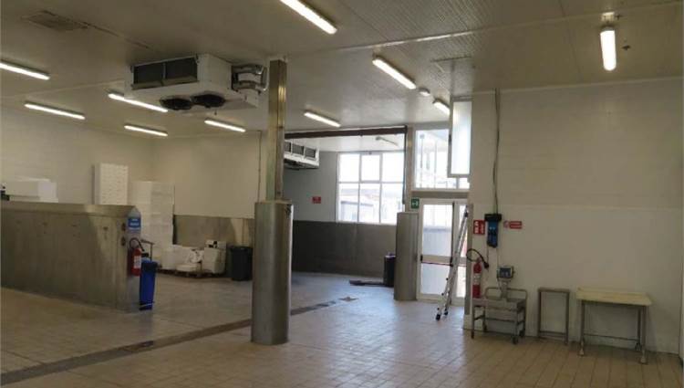 Descrizione sintetica: Trattasi di capannone di tipo industriale ad uso commerciale/artigianale composto da una zona adibita ad ufficio al primo piano, di circa mq 115,00, da locali per lo stoccaggio e il congelamento del pesce posti al piano terra di circa mq 1.117,00 e da uno scoperto esclusivo di circa mq 3.754,00.