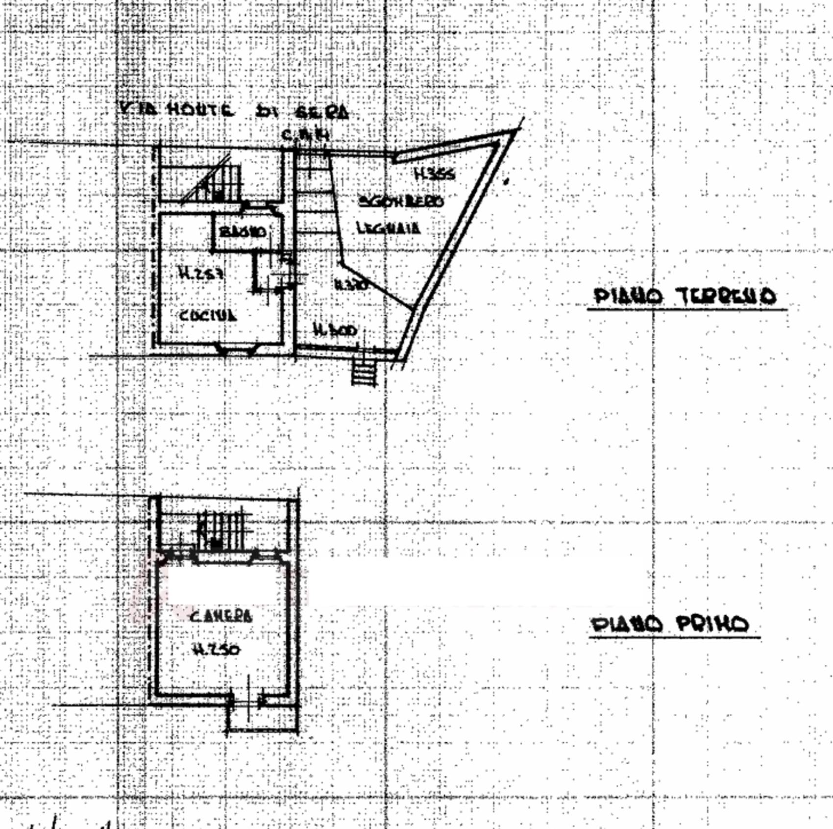 Descrizione sintetica: Appartamento con terreno pertinenziale su due livelli (piano terra e primo) composto da: al piano terra un vano e locale sgombero/legnaia di circa 45 mq con accesso al terreno, al piano primo locale con angolo cottura, una camera e bagno oltre balcone di circa 2,30 mq, terreno pertinenziale circa 310 mq;