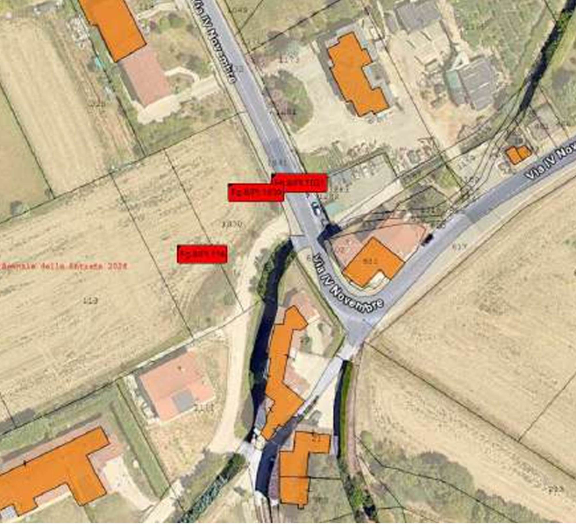 Due appezzamenti di terreno edificabile (A.) e di un appezzamento di terreno di piccole dimensioni destinato a sede stradale (B.). I due appezzamenti di terreno edificabile, con volumetria massima ammessa di mc. 600 e di superficie commerciale complessiva di circa mq. 1822, hanno accesso diretto da Via IV Novembre. L’appezzamento di terreno sub B., invece, di superficie commerciale di circa mq. 110, è parte della fascia stradale di Via IV Novembre.