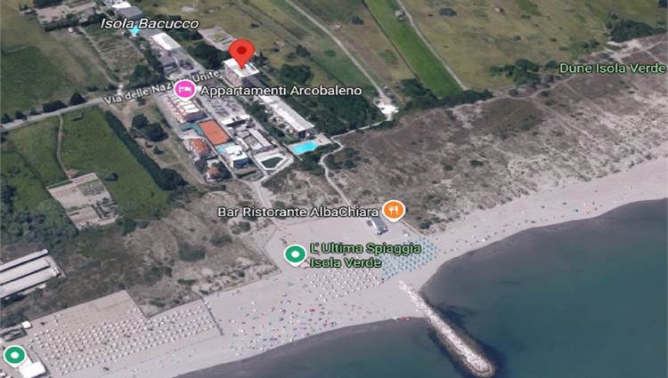 Descrizione sintetica: Trattasi dell'unità residenziale turistica sita nel comune di Chioggia (VE) in località Isola Verde, posta al piano primo del fabbricato di maggiore consistenza denominato "Punta Bacucco". All'unità si accede attraverso una scala a chiocciola esterna e comune ad un'altra unità. All'arrivo della scala è ubicato il terrazzino di mq 8,04 di proprietà che funge da ingresso. L'appartamento di mq 58,46 è costituito da zona soggiorno cottura, un bagno, un disimpegno e due camere. Pertinenziale garage al piano terra di mq 12,00