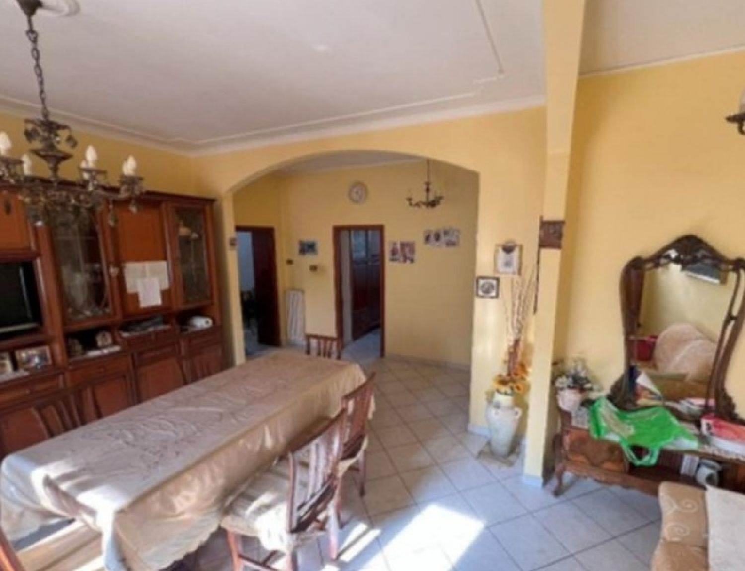 L'appartamento di superficie totale di mq 143,87 è composto da ingresso-soggiorno, cucina, tre camere, un disimpegno zona notte, un bagno e corte comune esterna recintata.