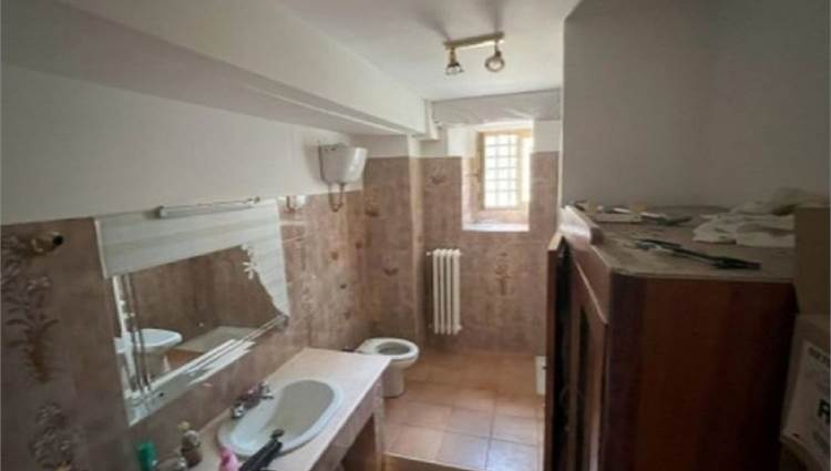 Al piano seminterrato di superficie totale di mq 150,09, invece sono presenti una zona open space con camino, una cucina, un bagno, un locale cantina, un locale ripostiglio e una corte comune nel quale sono ubicati due magazzini esterni, di cui uno adibito a forno.