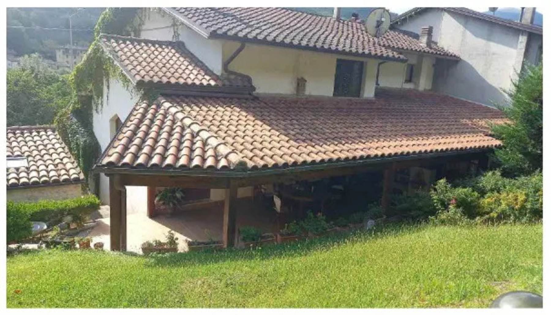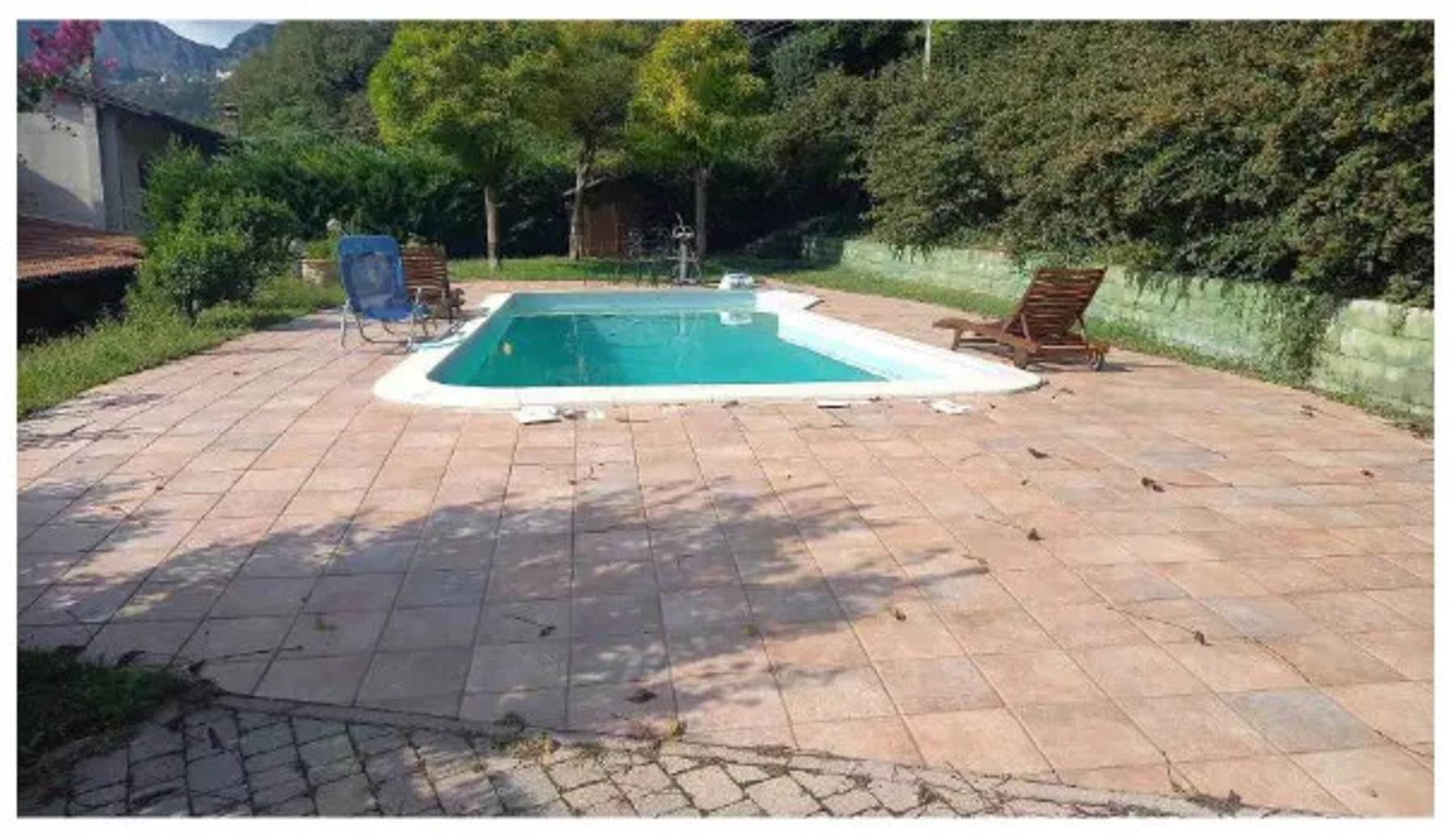 Descrizione sintetica: Abitazione al piano primo e secondo composta da soggiorno, cucina, camera e bagno al piano primo, da cucina, due camere e bagno al piano secondo, oltre a locali di sgombero al piano terra. Inoltre nella corte del fabbricato è presente un piccolo accessorio adibito a monolocale, una tettoia uso garage 44 mq ed una piscina di mq 10x4.