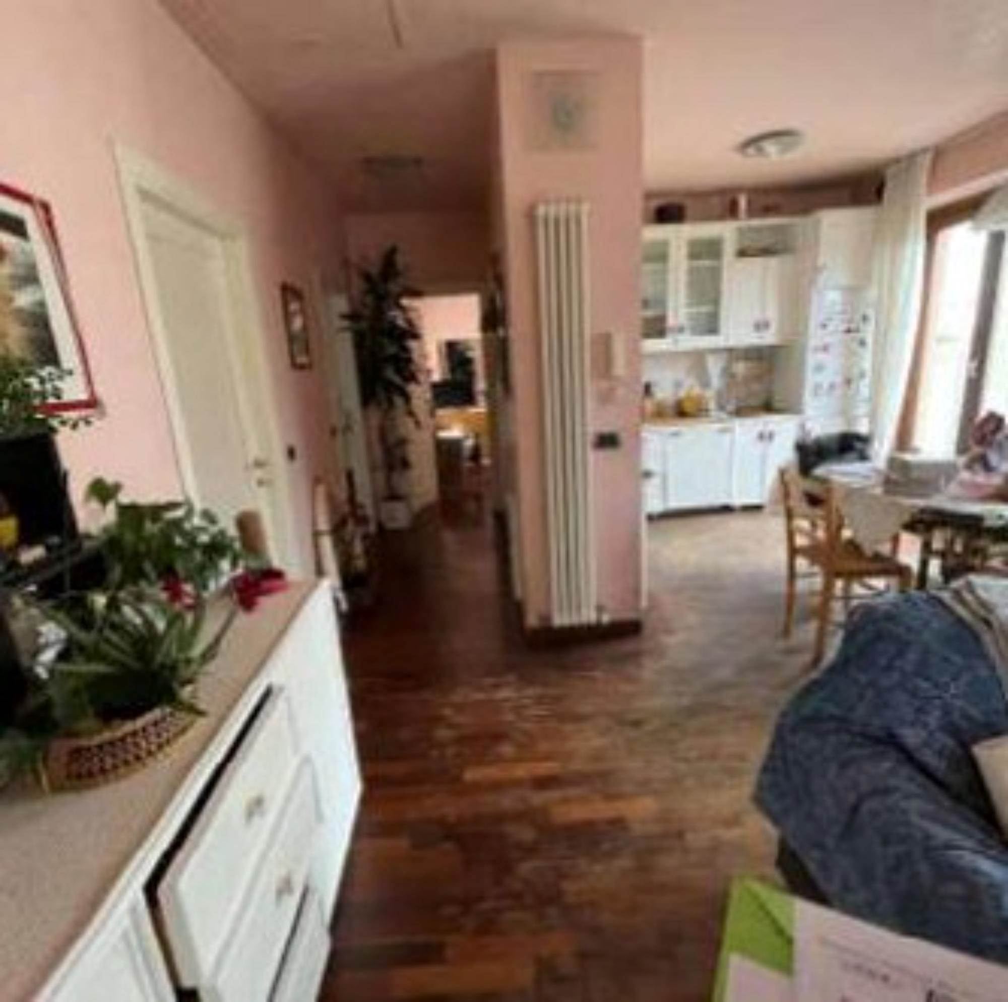 Abitazione con accesso da androne comune, ha una superficie commerciale calcolata di mq 121,40 ed è così suddivisa: ingresso/disimpegno, cucina/soggiorno, disimpegno, due camere e bagno. Completano la proprietà due terrazze e un balcone di complessivi mq 177,00.