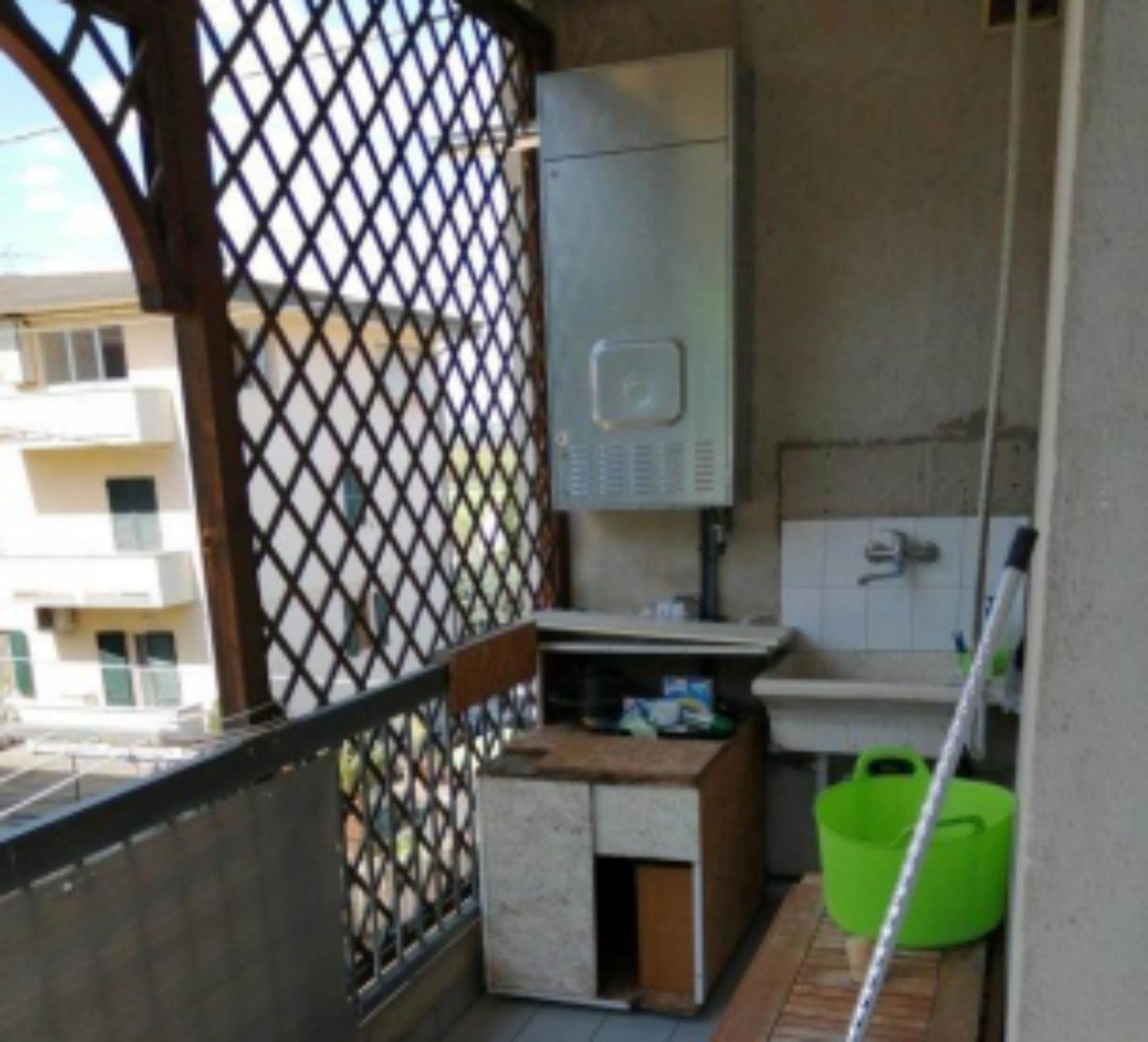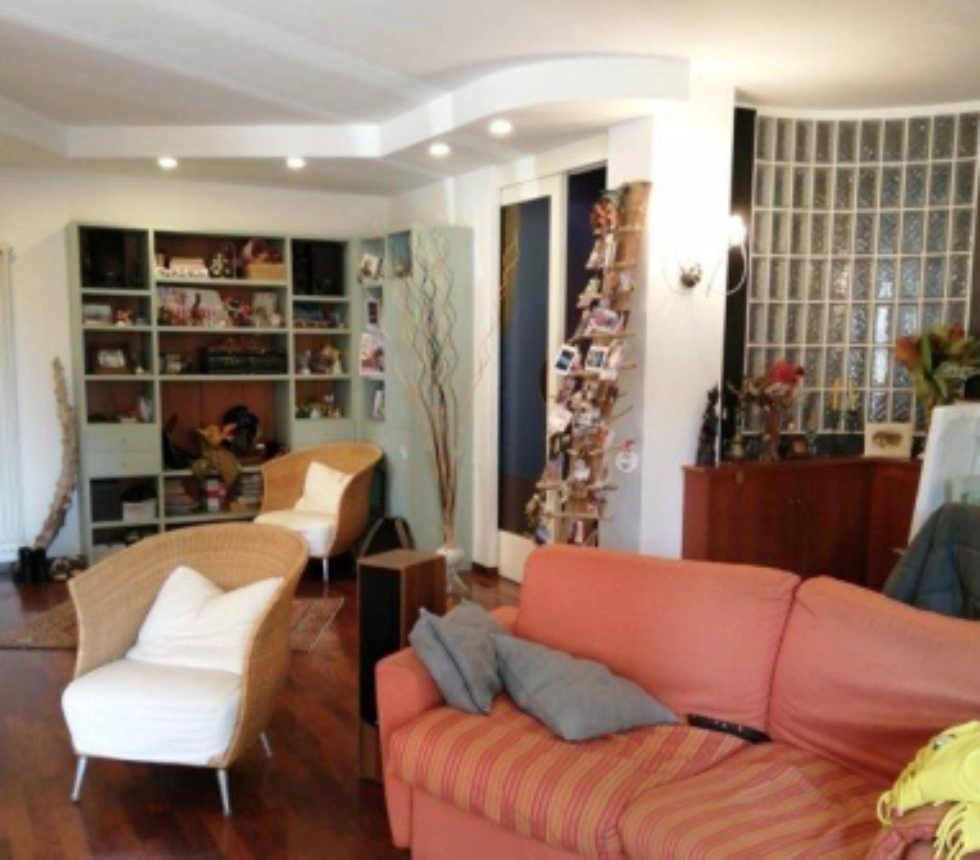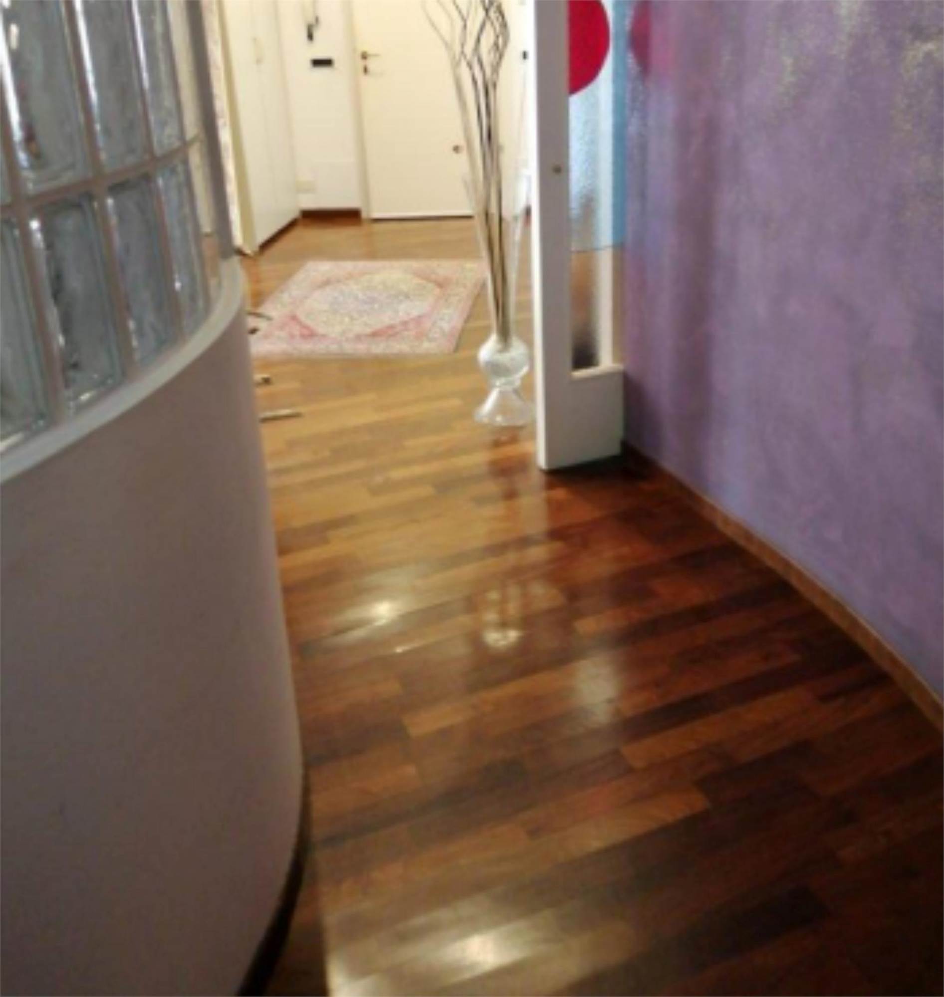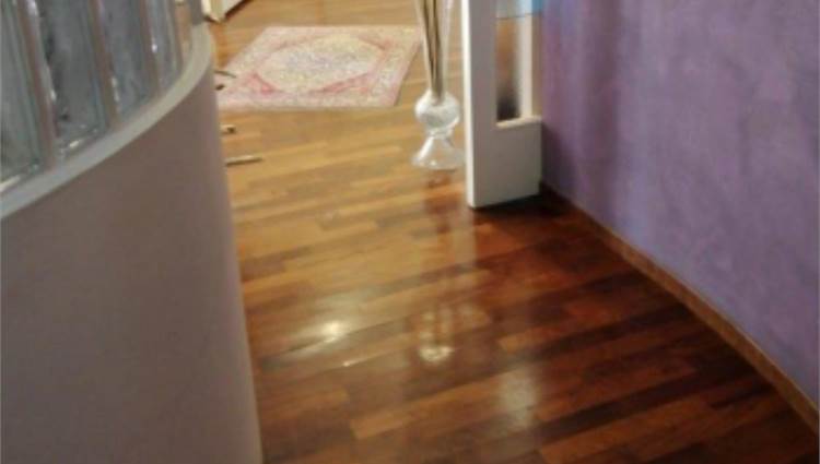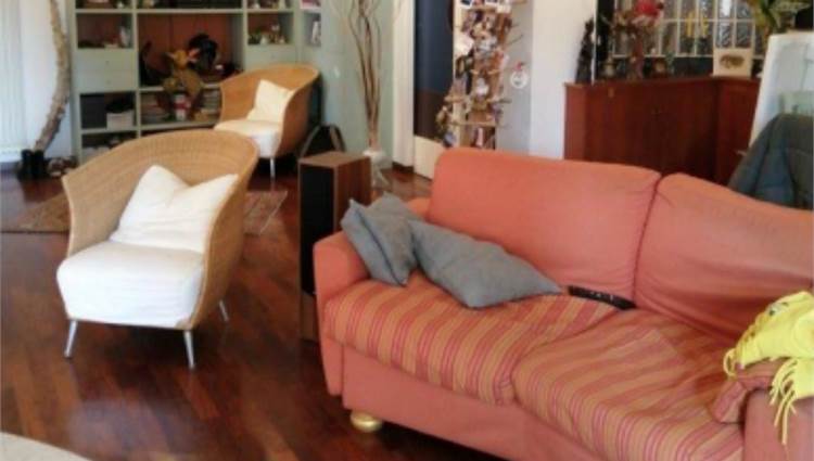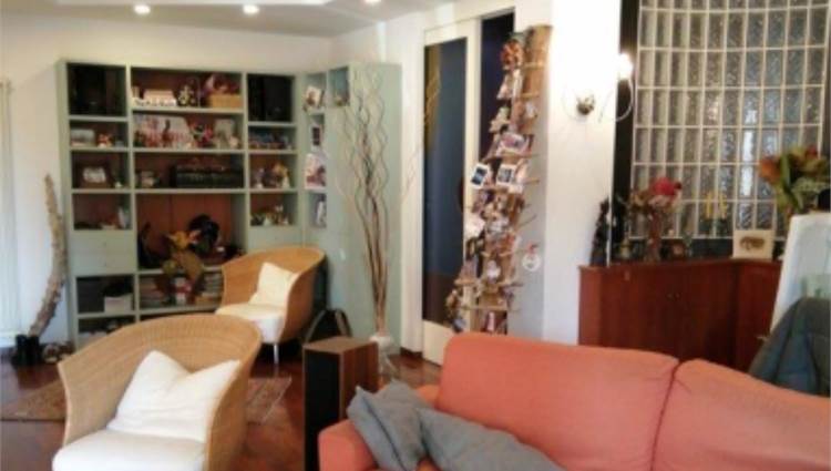 sullo stesso pianerottolo, questo perchè è come se fosse costituito da due appartamenti. Quello di sinistra ha un tinello con cucina, un piccolo disimpegno che conduce ad una camera ed un bagno. Inoltre vi sono due balconi. L'appartamento con ingresso a destra ha una zona giorno con soggiorno e cucina con camino. Nella zona notte vi è un ripostiglio, un bagno e tre camere. Sono presenti anche tre balconi ed una terrazza fronte strada