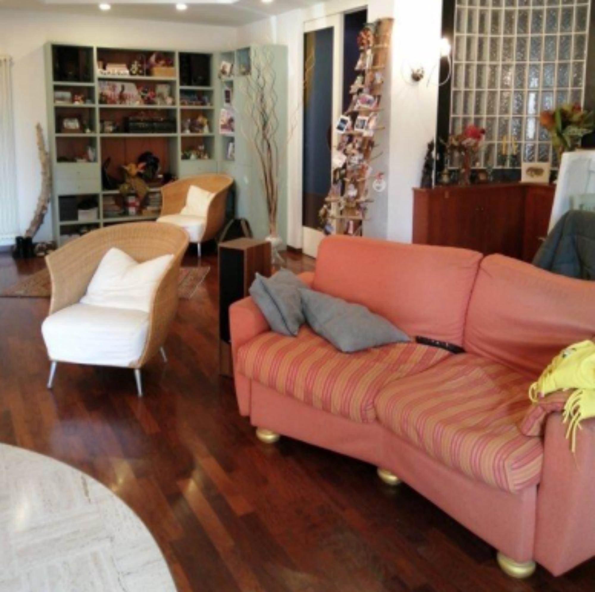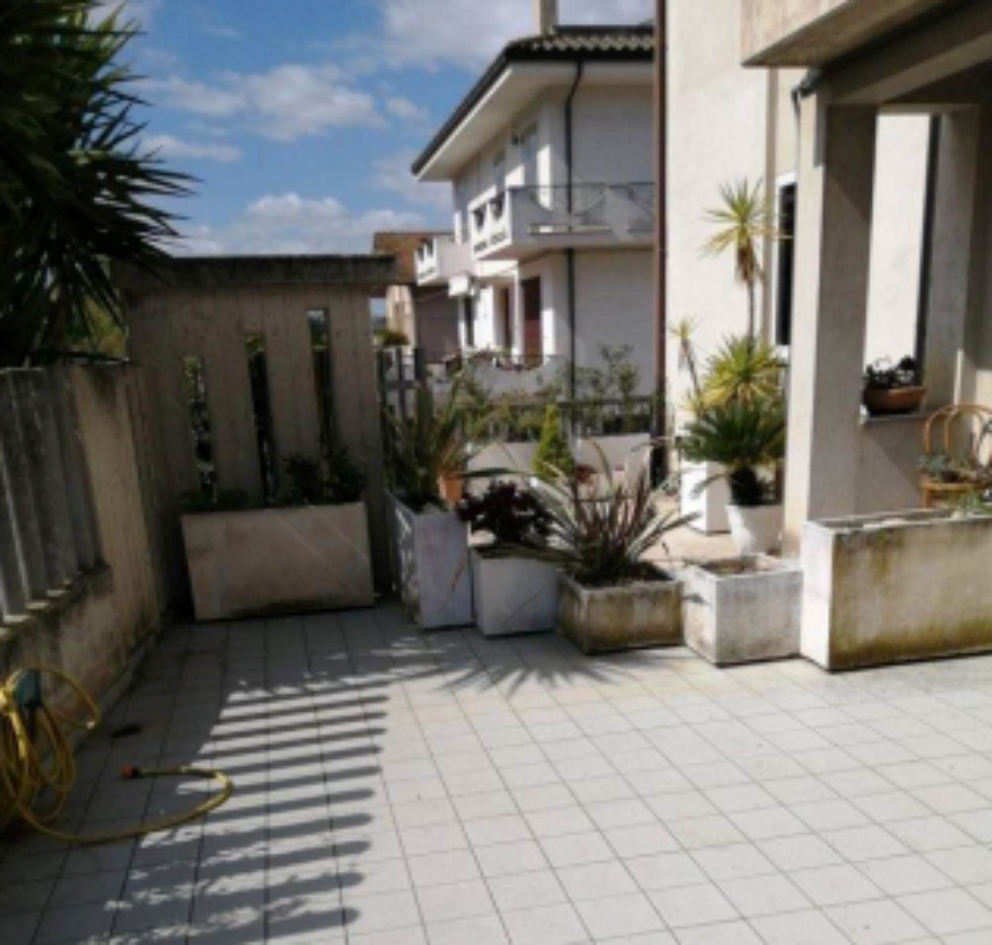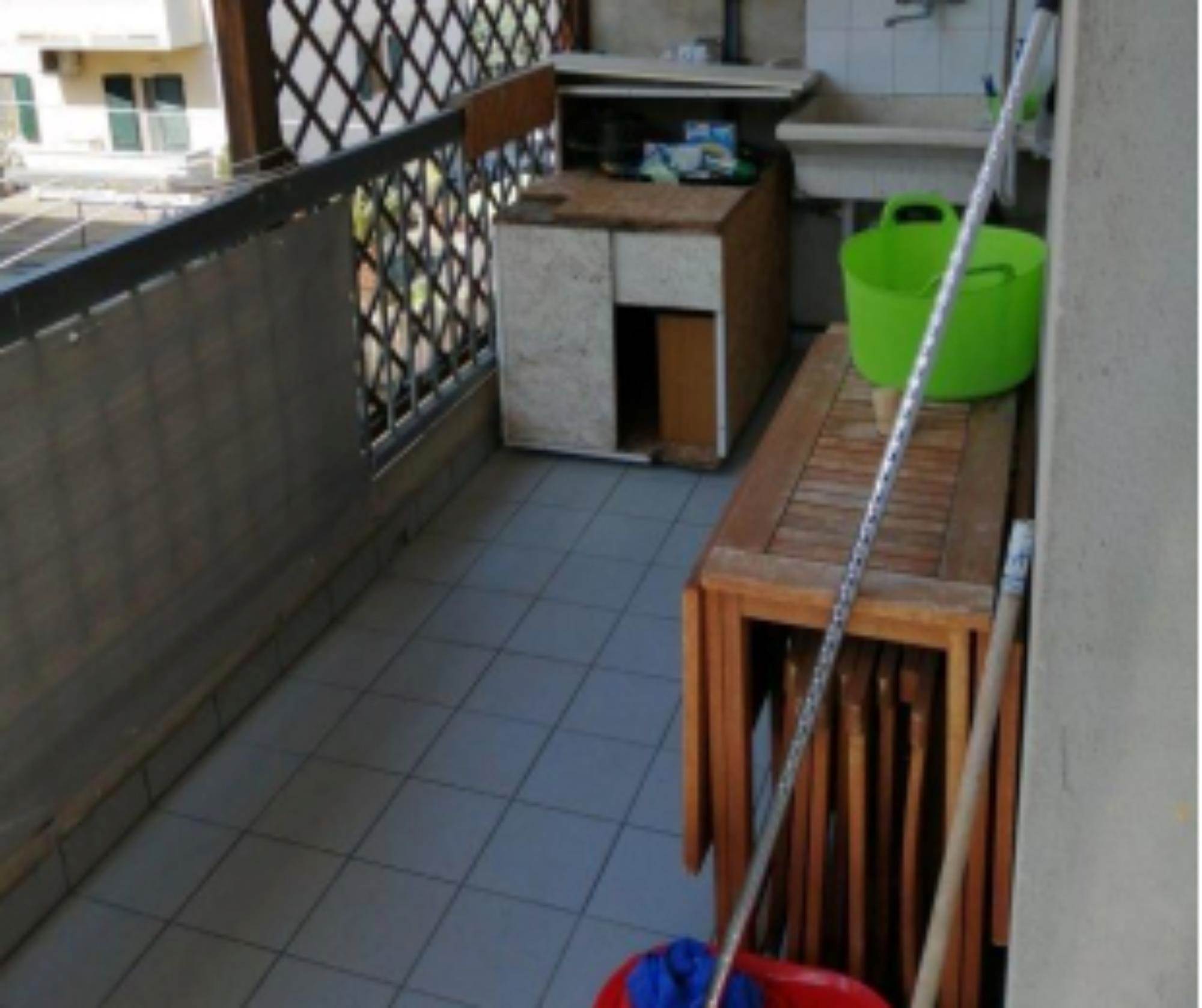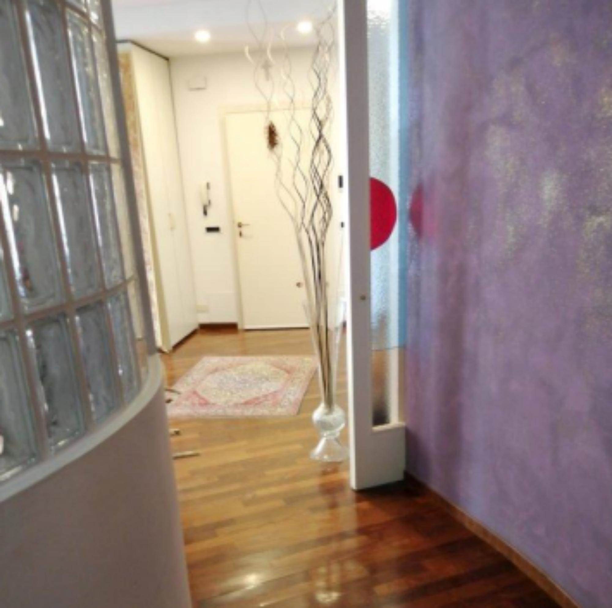 sullo stesso pianerottolo, questo perchè è come se fosse costituito da due appartamenti. Quello di sinistra ha un tinello con cucina, un piccolo disimpegno che conduce ad una camera ed un bagno. Inoltre vi sono due balconi. L'appartamento con ingresso a destra ha una zona giorno con soggiorno e cucina con camino. Nella zona notte vi è un ripostiglio, un bagno e tre camere. Sono presenti anche tre balconi ed una terrazza fronte strada