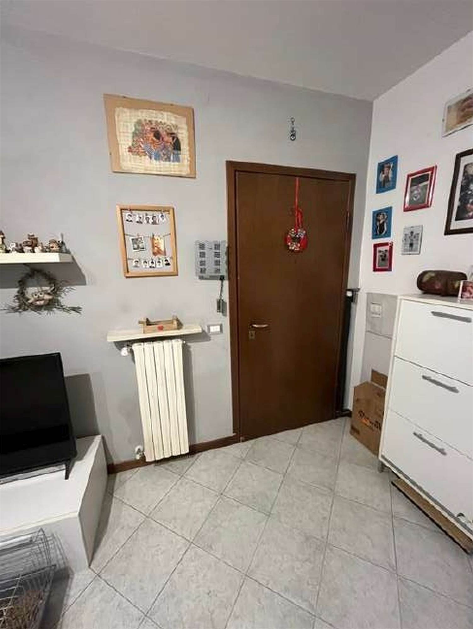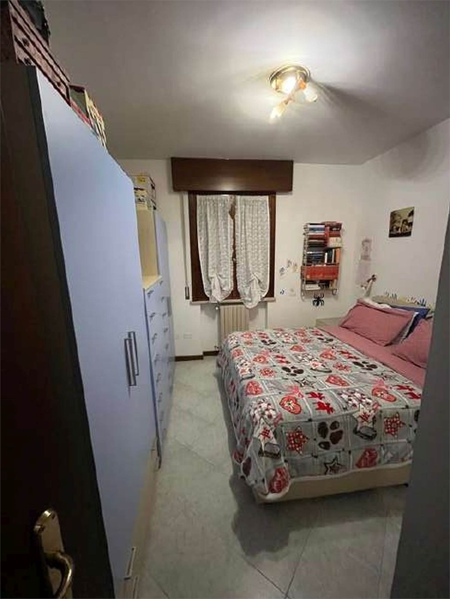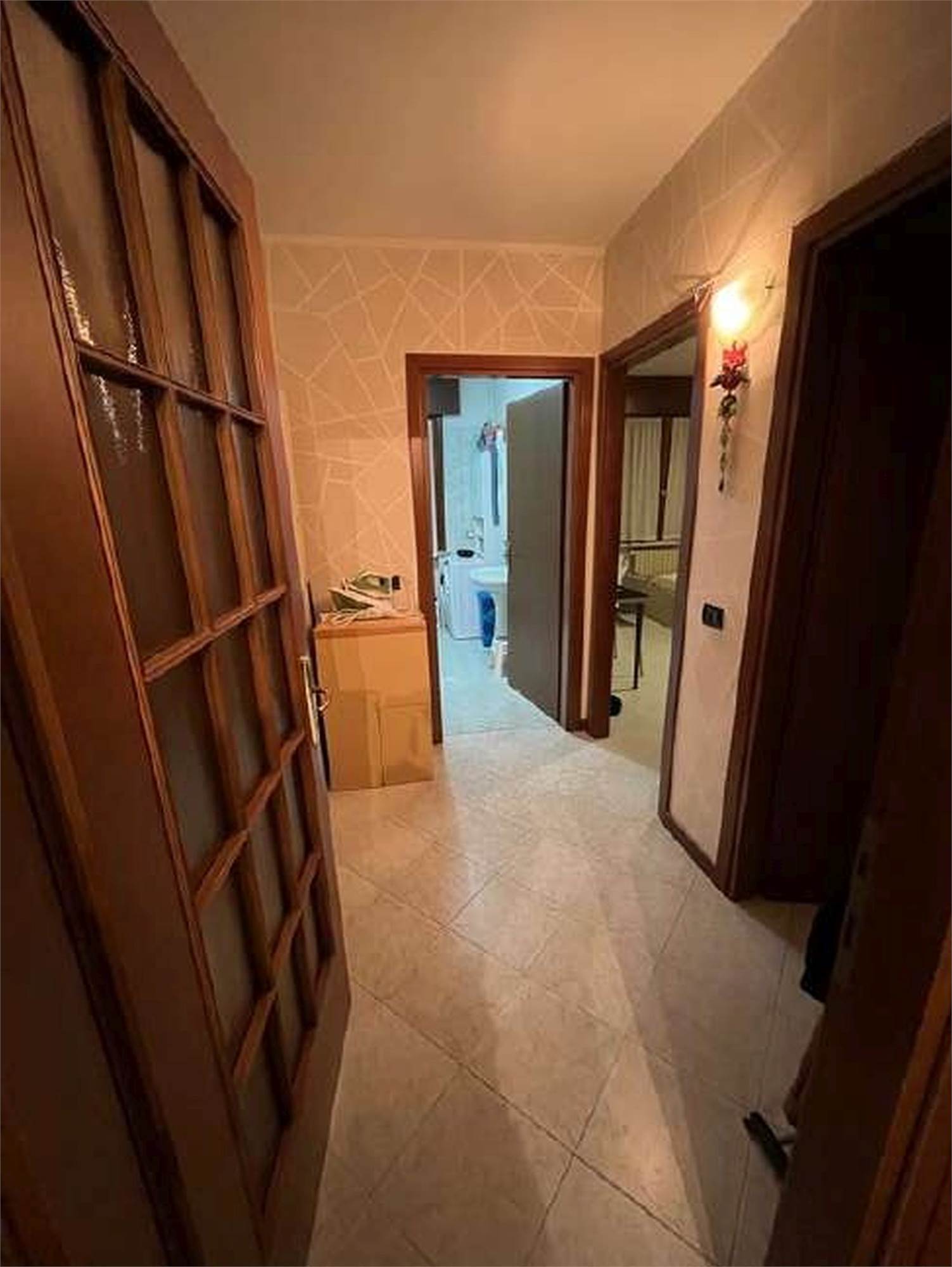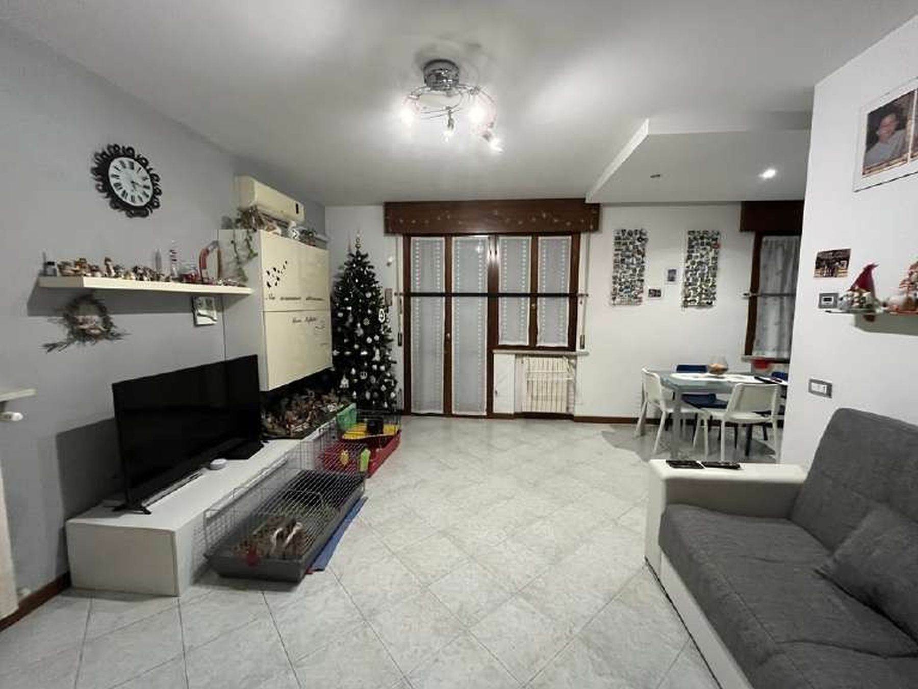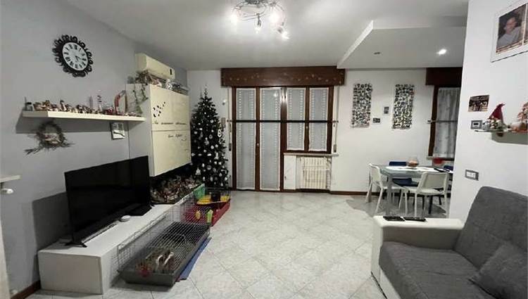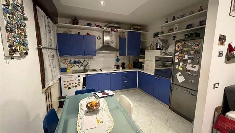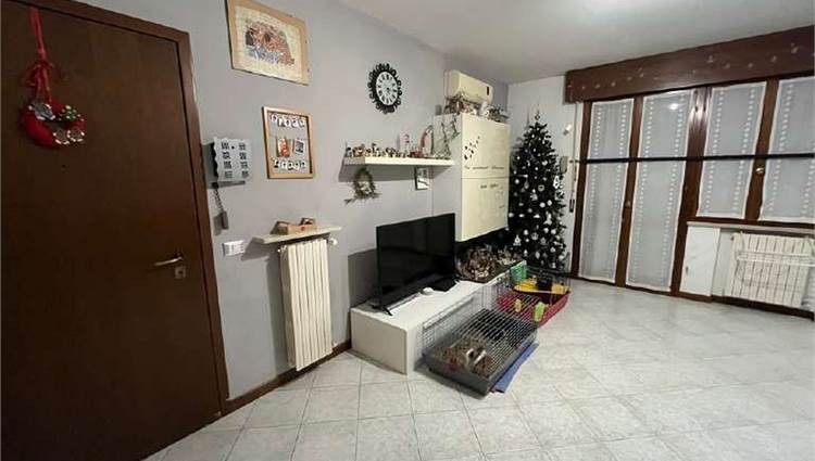 Descrizione sintetica: Appartamento trilocale di 82 mq, termoautonomo, al piano primo, in edificio condominiale senza ascensore con cantina e box auto. L'appartamento fa parte di un condominio di due piani fuori terra, costituito da 8 appartamenti, con ampio spazio verde comune al condominio adiacente. L'unità immobiliare è costituita da ingresso in soggiorno con cucina annessa, un balcone coperto, un disimpegno della zona notte, un piccolo ripostiglio, una camera da letto matrimoniale, una seconda camera, un bagno finestrato.