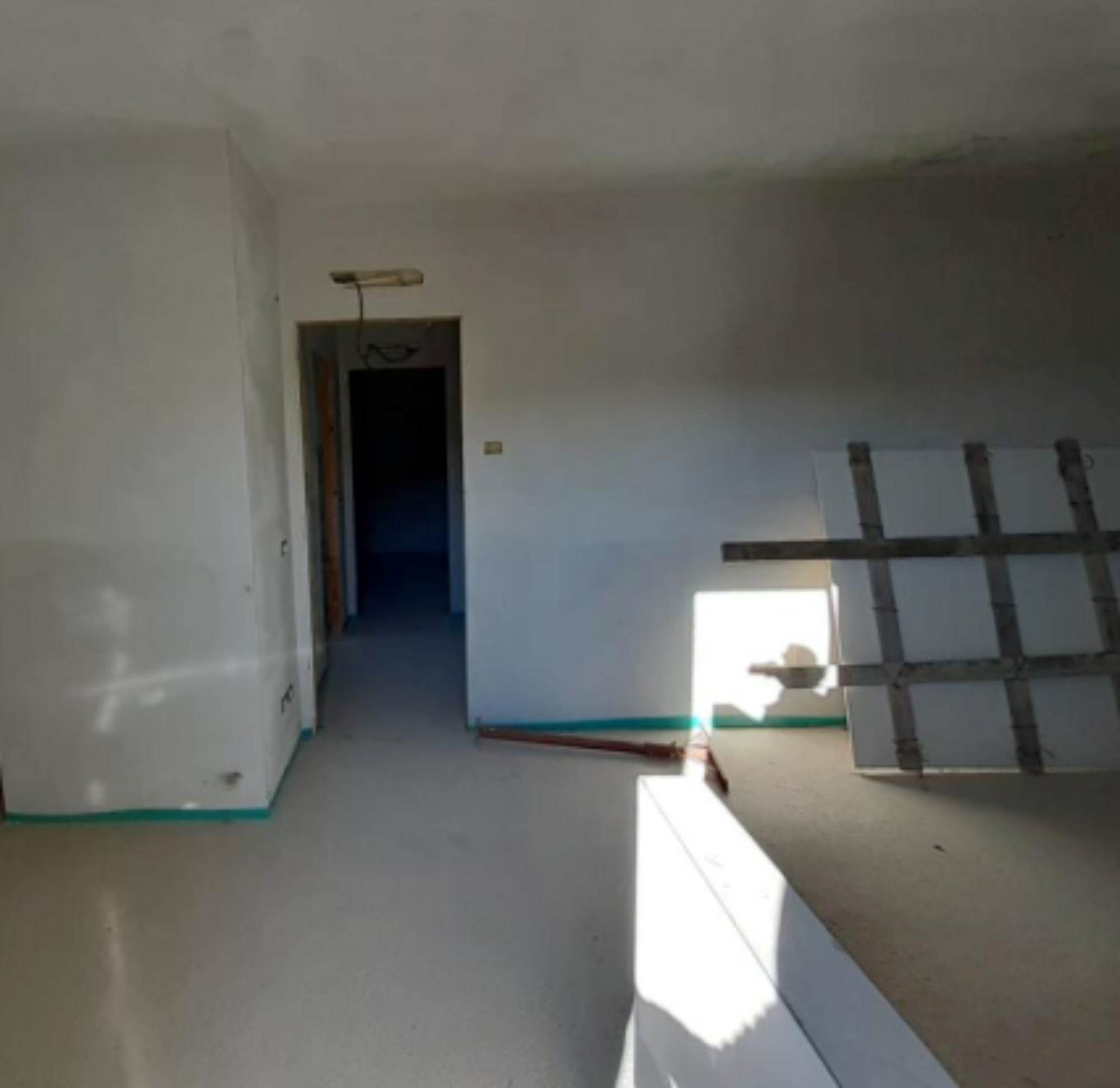 soggiorno/pranzo, cucina, disimpegno, tre camere e due bagni. Superficie dell'appartamento mq 104,76. Superficie dei balconi mq 38,60.