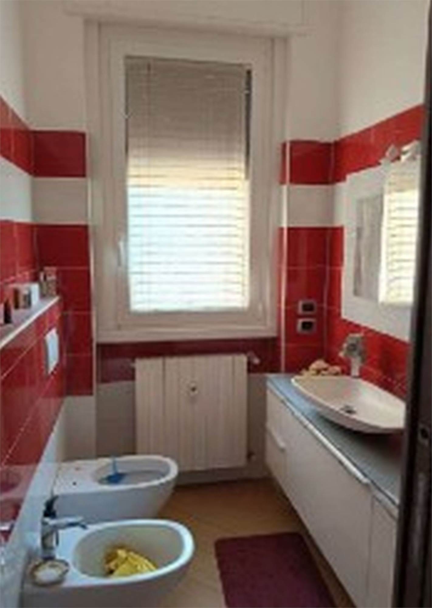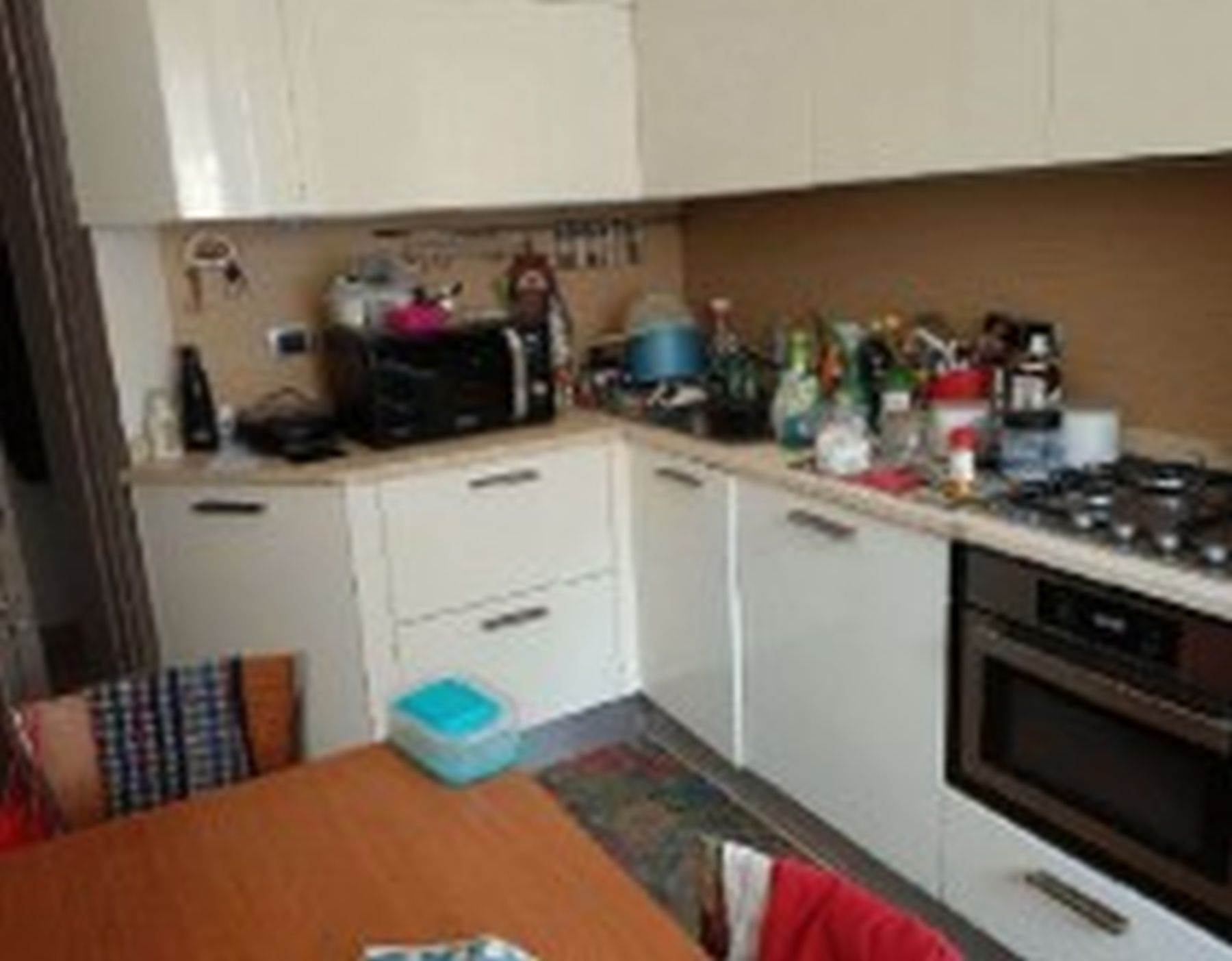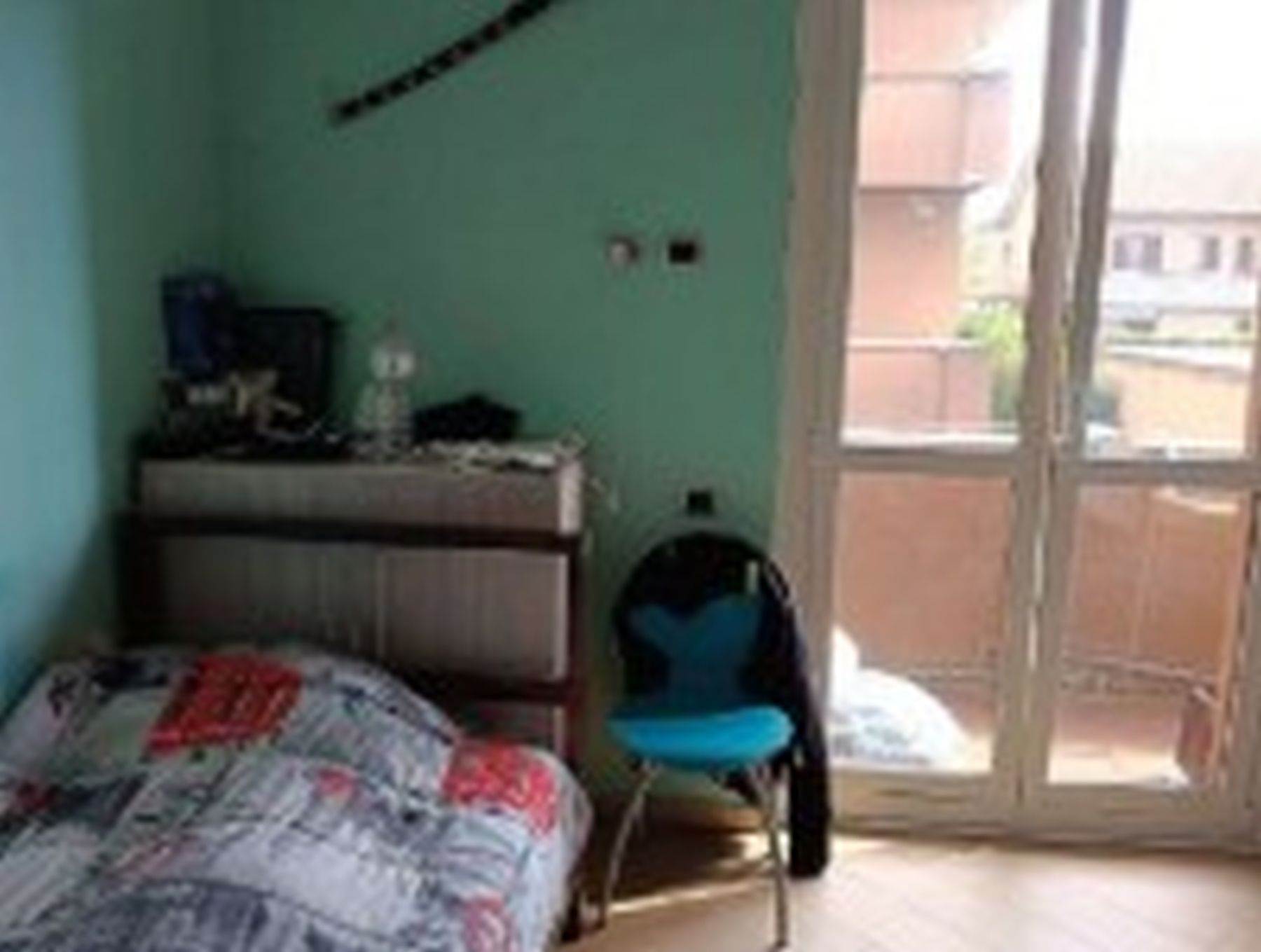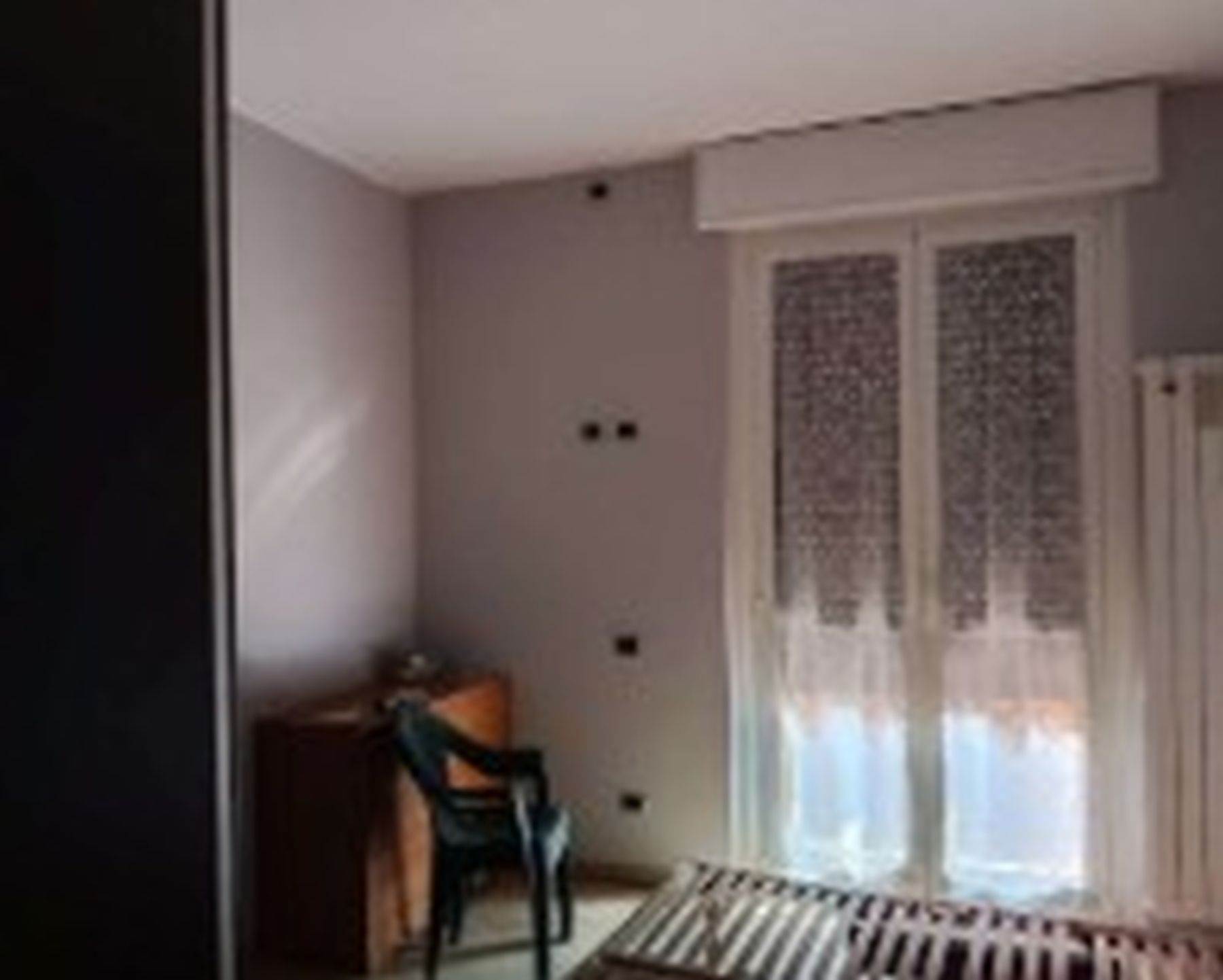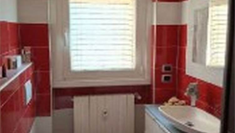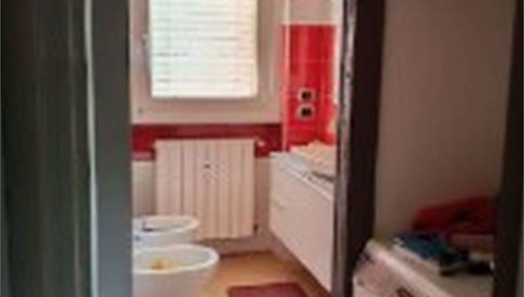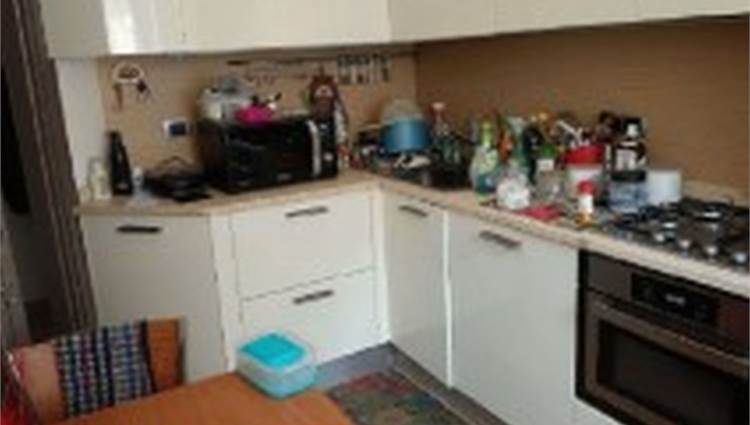 Descrizione sintetica: Appartamento di 105 mq posto al primo piano e composto da ingresso, soggiorno, cucina, due camere, due bagni, disimpegno, due balconi e box auto al piano terra di 20 mq. L’appartamento presenta un ingresso con apertura diretta su ampio soggiorno e da cui si accede, tramite relativo disimpegno, a un piccolo bagnetto di circa 3 mq ed alla cucina e al soggiorno che costituisce un open space; dallo stesso ingresso si accede al disimpegno della zona notte. Qui trovano posto un ampio spazio armadio e l’accesso al bagno principale di mq 5 circa, due ampie camere da letto (di mq 12 e 15 circa) e un terzo locale utilizzato come camera da letto ma dimensionalmente insufficiente allo scopo e realizzato senza titolo togliendo spazio al soggiorno.