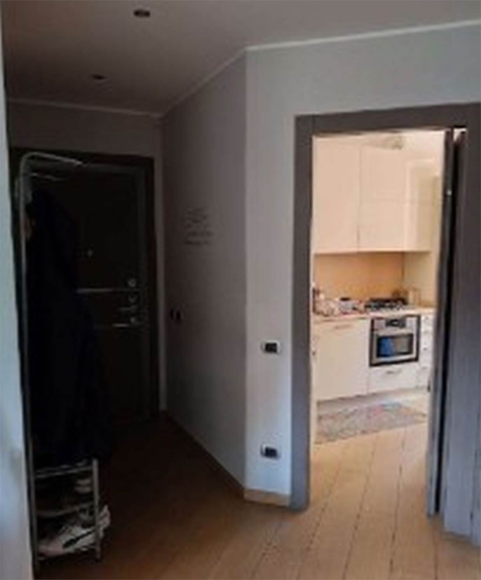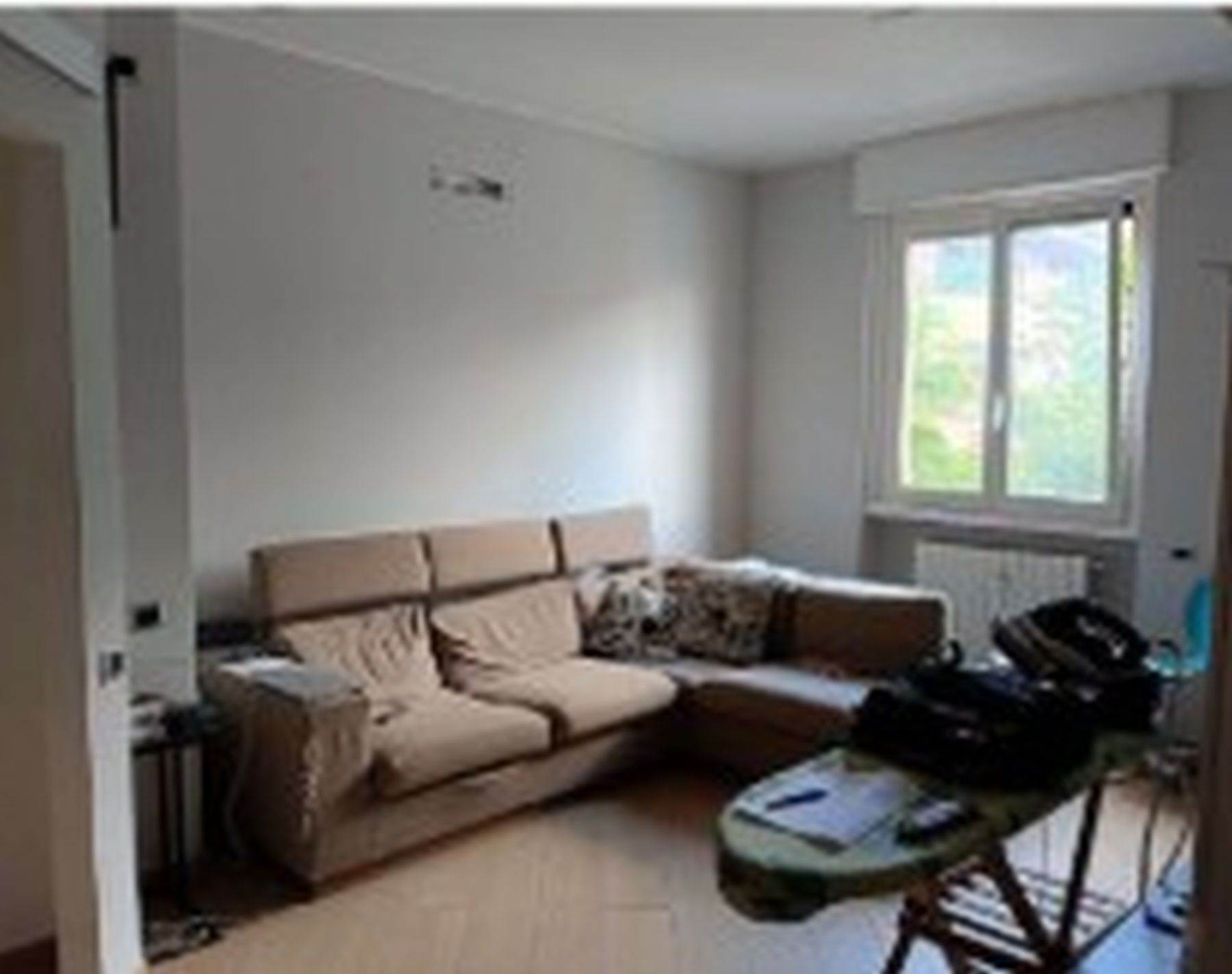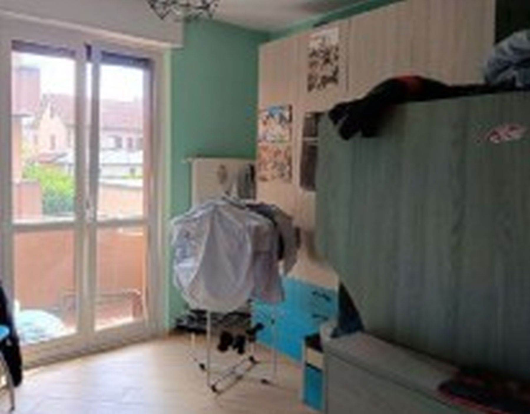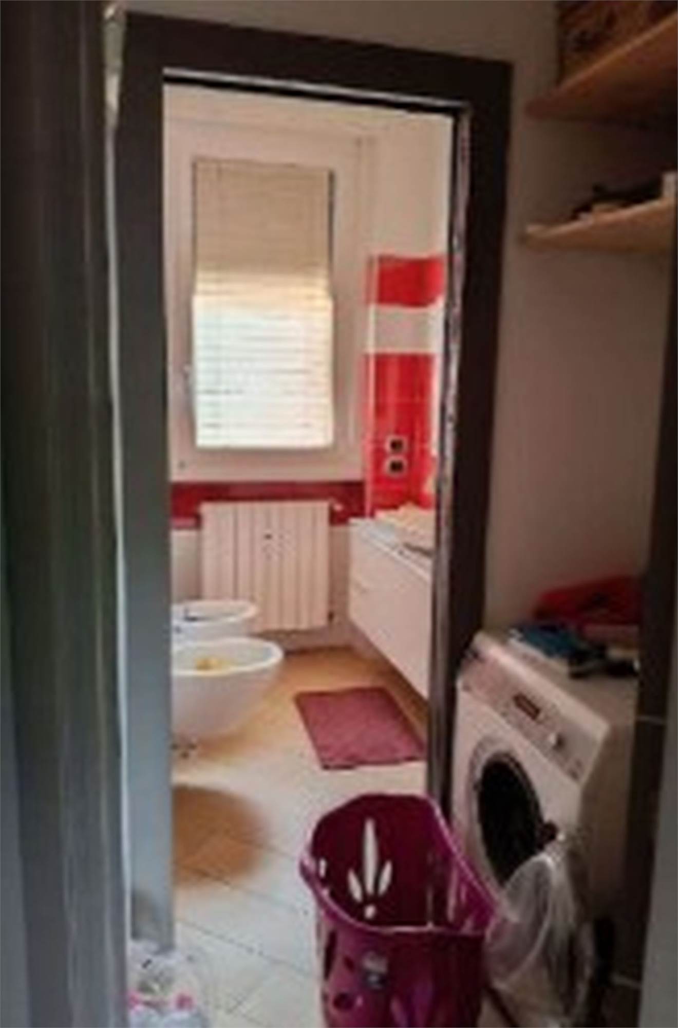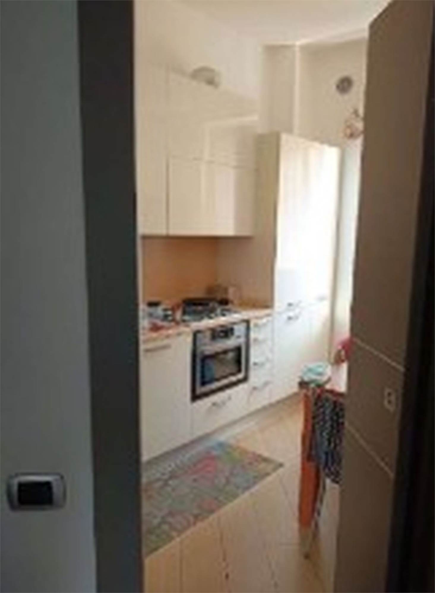 Descrizione sintetica: Appartamento di 105 mq posto al primo piano e composto da ingresso, soggiorno, cucina, due camere, due bagni, disimpegno, due balconi e box auto al piano terra di 20 mq. L’appartamento presenta un ingresso con apertura diretta su ampio soggiorno e da cui si accede, tramite relativo disimpegno, a un piccolo bagnetto di circa 3 mq ed alla cucina e al soggiorno che costituisce un open space; dallo stesso ingresso si accede al disimpegno della zona notte. Qui trovano posto un ampio spazio armadio e l’accesso al bagno principale di mq 5 circa, due ampie camere da letto (di mq 12 e 15 circa) e un terzo locale utilizzato come camera da letto ma dimensionalmente insufficiente allo scopo e realizzato senza titolo togliendo spazio al soggiorno.