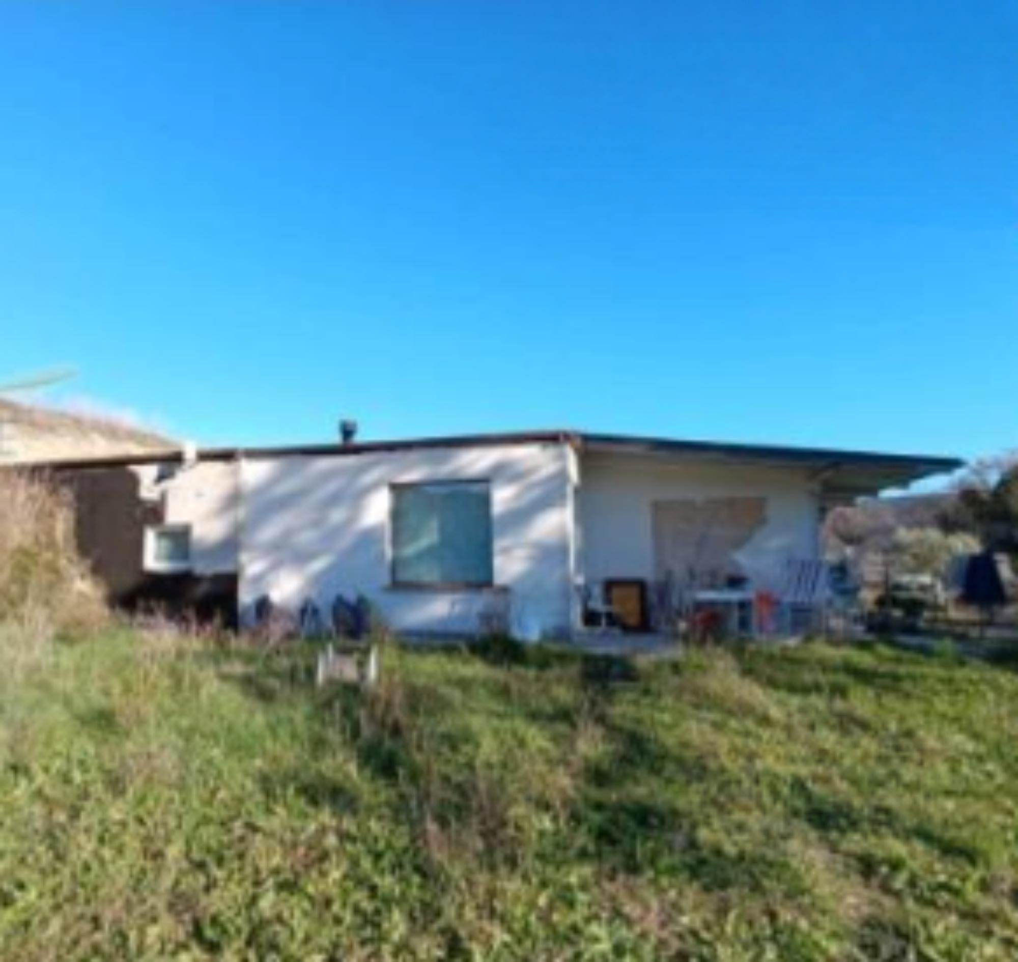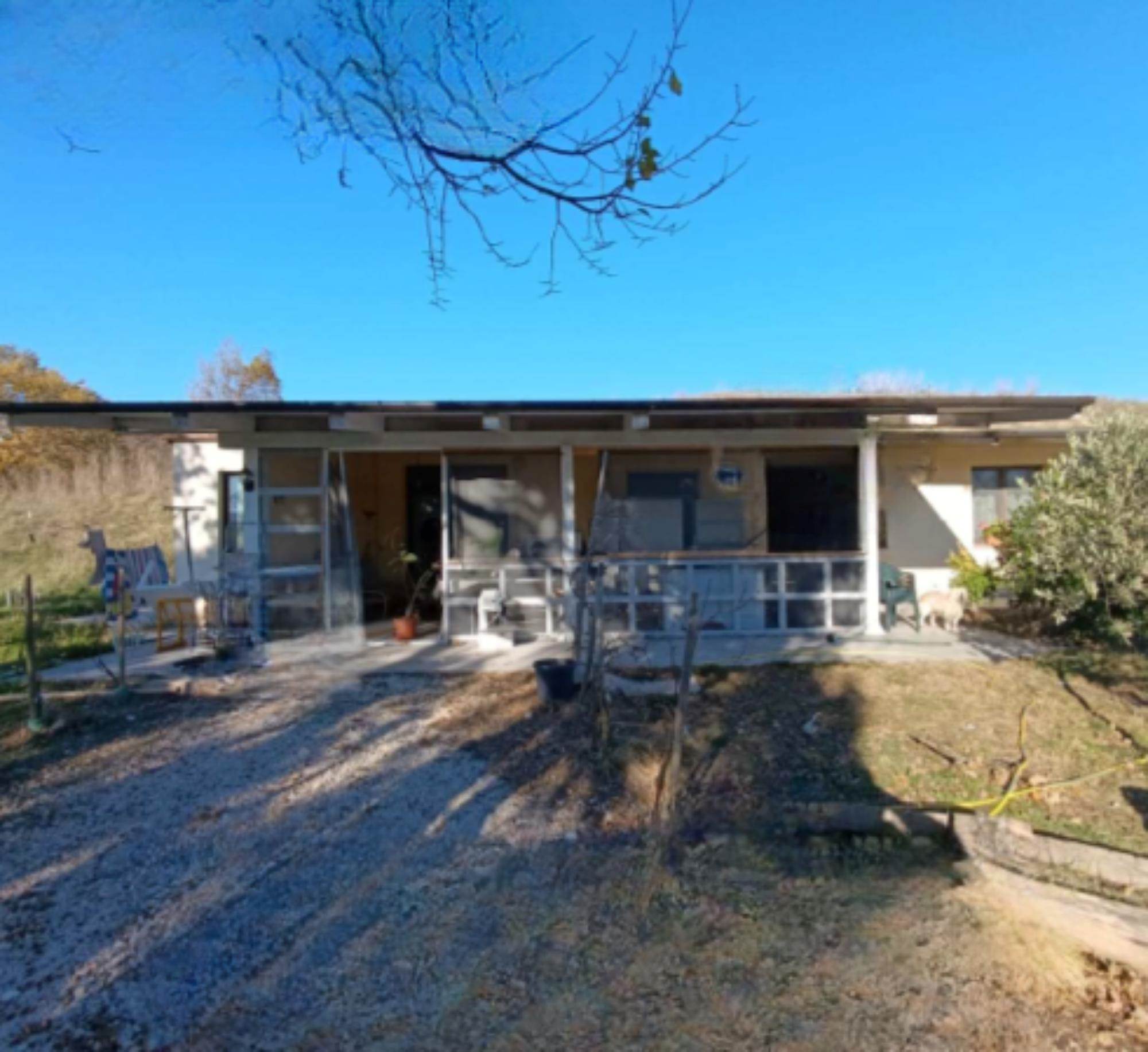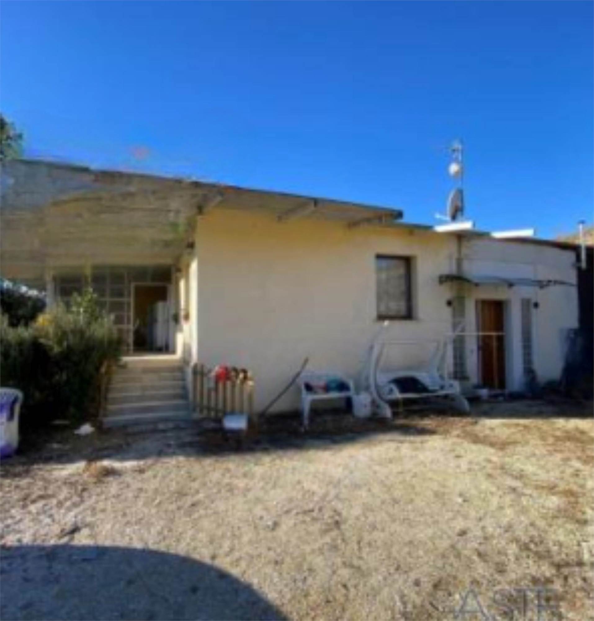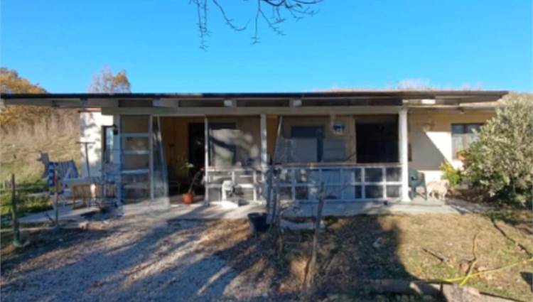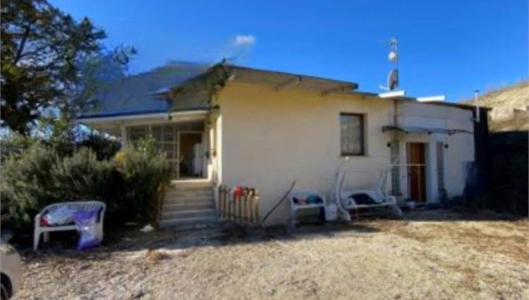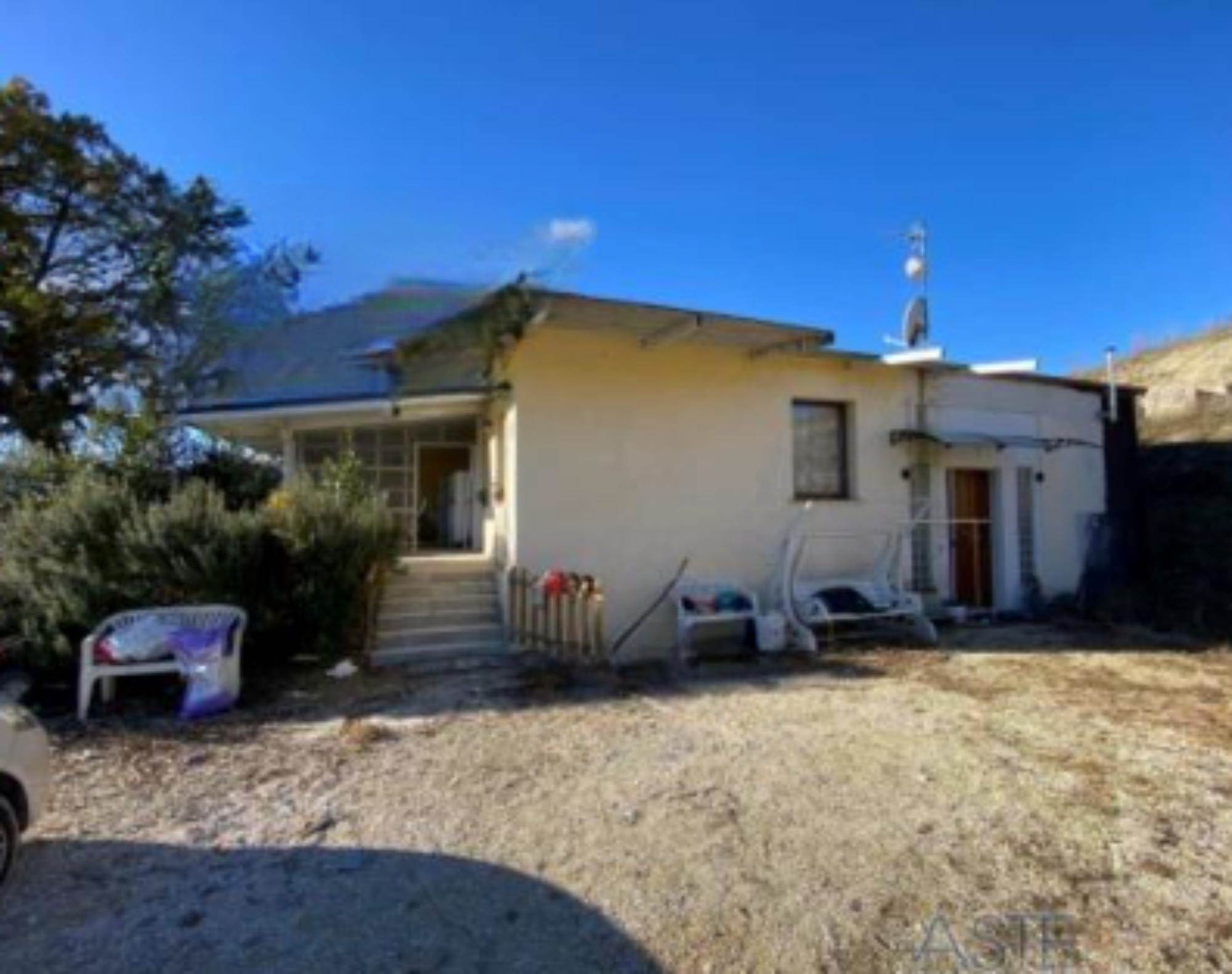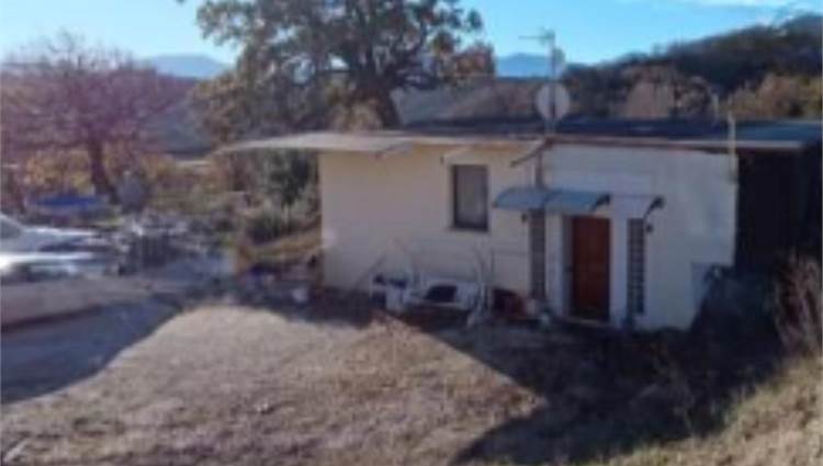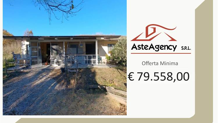 Descrizione sintetica: Fabbricato da cielo a terra, con corte circostante al piano terra. Ingresso dalla modesta scala che permette di accedere al pergolato e successivamente alla zona ingresso soggiorno. Dalla zona soggiorno si accede alla cucina (con ripostiglio) ed al connettivo che permette gli accessi alla zona notte, costituita da tre camere ed un bagno; dal medesimo connettivo, tramite una scaletta di cinque alzate si può accedere direttamente all’autorimessa di mq 85,00, che è raggiungibile anche dall’ingresso sul piazzale esterno. Corte esclusiva di mq 850,00 e mq 54.383,00 di terreni agricoli/seminativo/frutteto/prato.