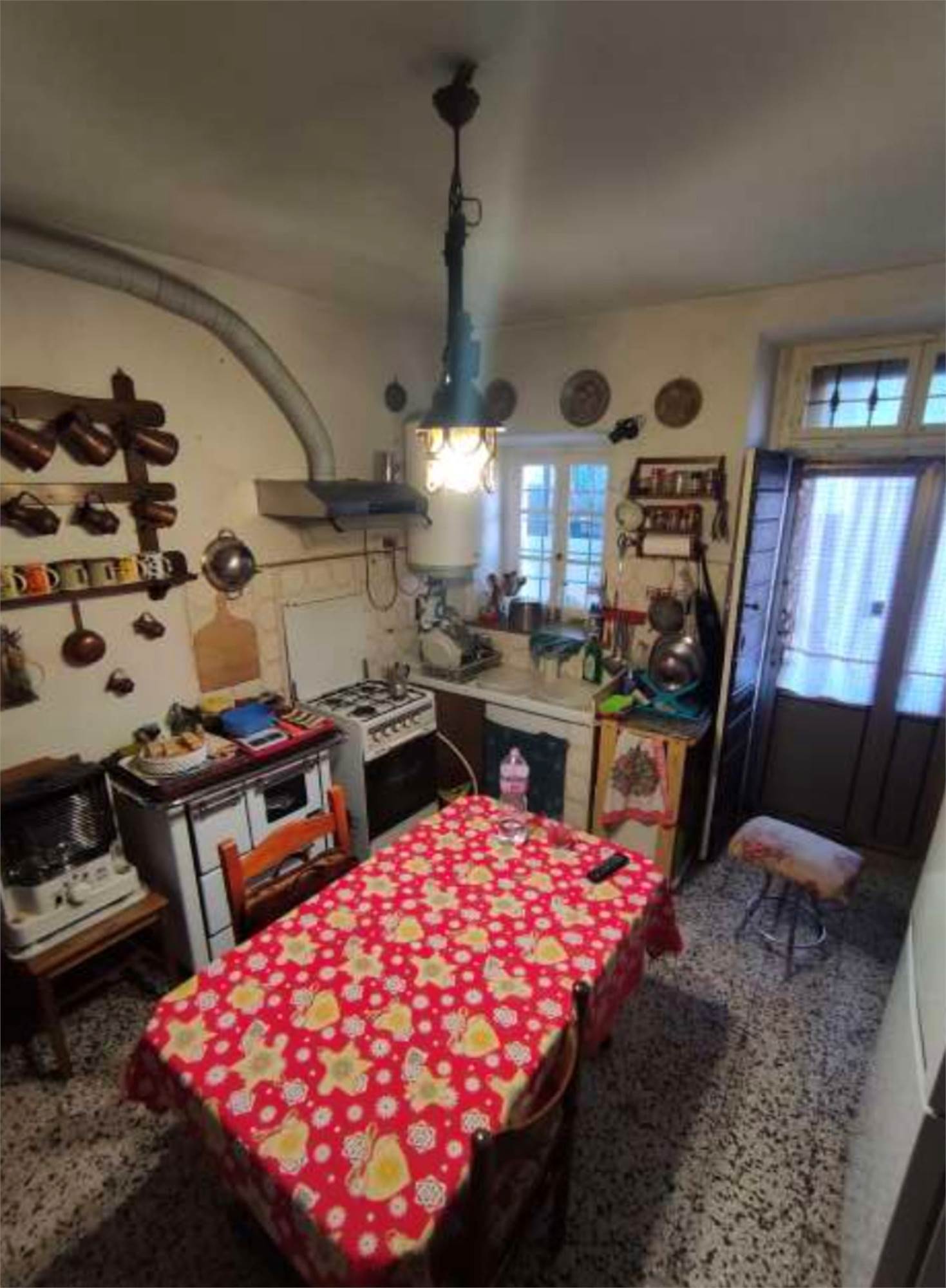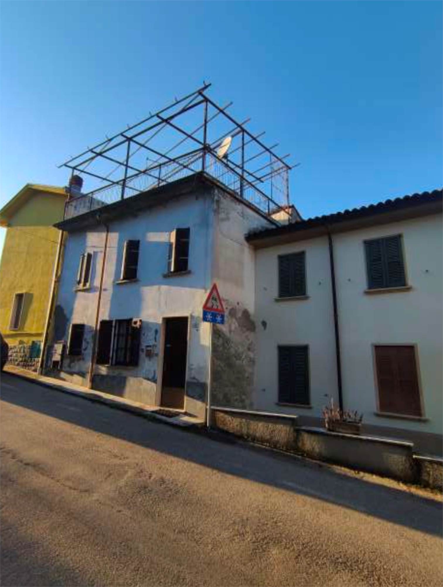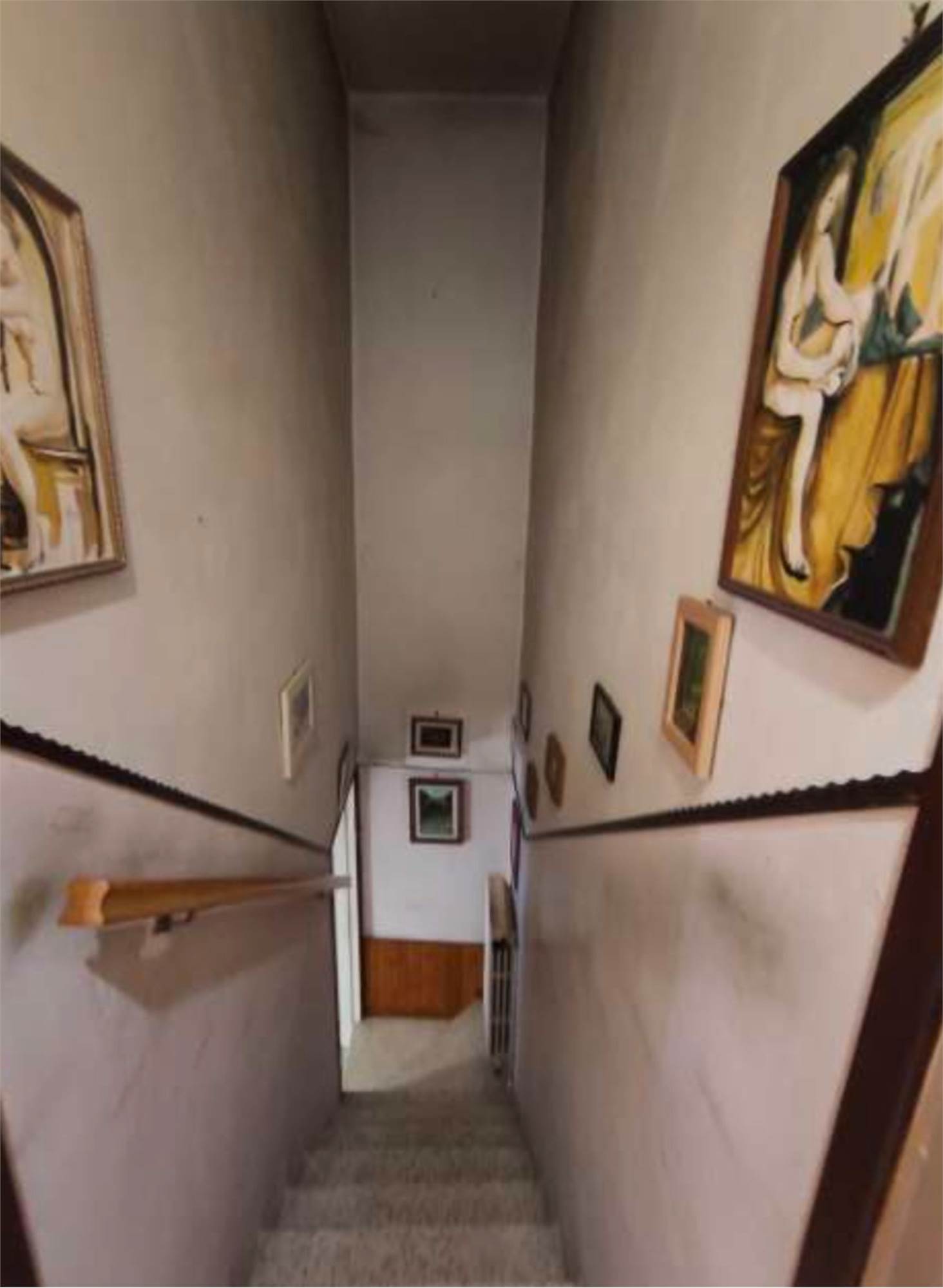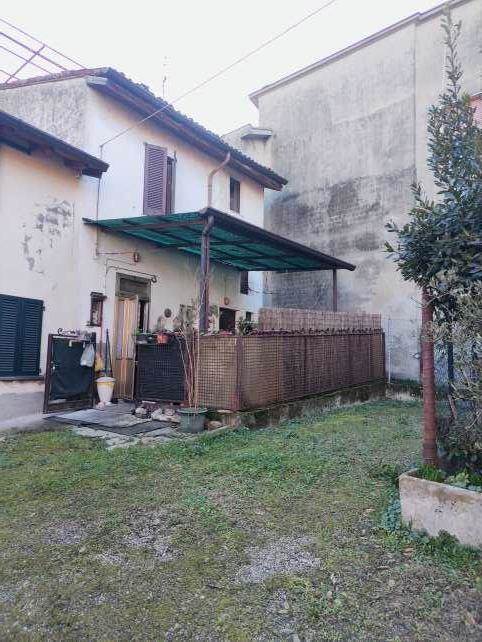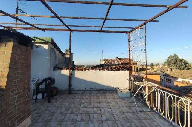 Descrizione sintetica: Unità immobiliare indipendente, ad uso residenziale, a due piani fuori terra con terrazzo posto a piano secondo e porzione di cortile di proprietà di mq22,80. Piano terra: soggiorno, cucina, bagno, piccolo disimpegno, vano scala, locale ad uso sgombero con accesso esterno e cortiletto coperto in parte con tettoia; piano primo: disimpegno, due camere e vano scala; piano secondo: terrazzo di mq 44,81. Cantina di mq 10,82.