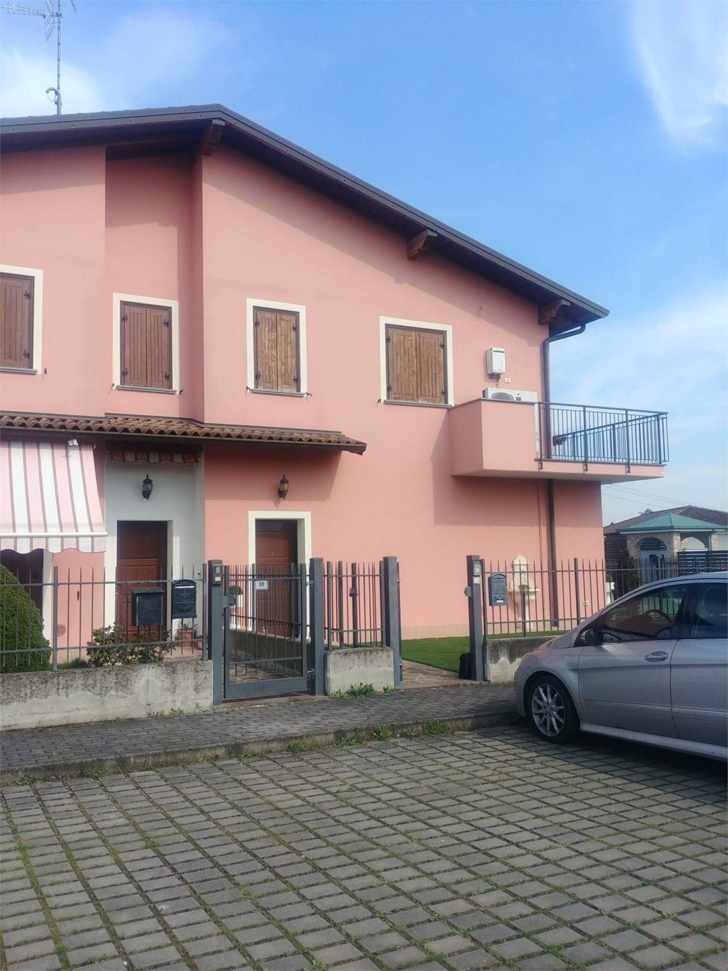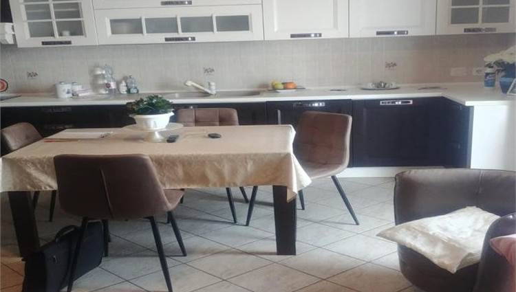 Descrizione sintetica: Appartamento di 128 mq posto al piano terra e primo con autorimessa di 21 mq annessa. È presente un usufrutto. L'ingresso è al piano terra, attraverso il giardino pertinenziale ed è composto al primo piano da una cucina-soggiorno, due camere, un disimpegno, un bagno, un balcone, nonché un’autorimessa al piano terra con accesso al giardino pertinenziale.
