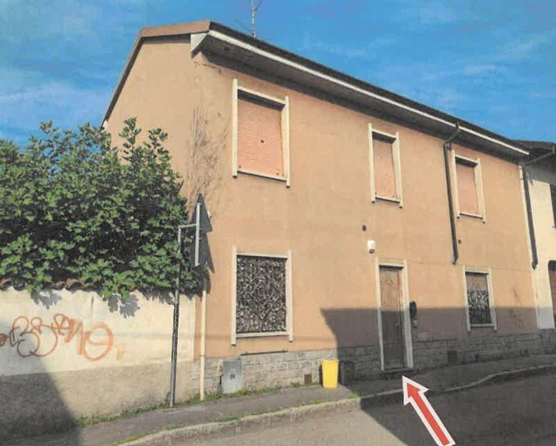 Descrizione sintetica: abitazione con superficie totale di 205 mq in corte disposta su due livelli (piano terra e primo) collegati da scala interna e composta da soggiorno, cucina, bagno, camera e un ulteriore bagno al piano primo. Sono presenti anche due box auto di 25 mq e 23 mq.