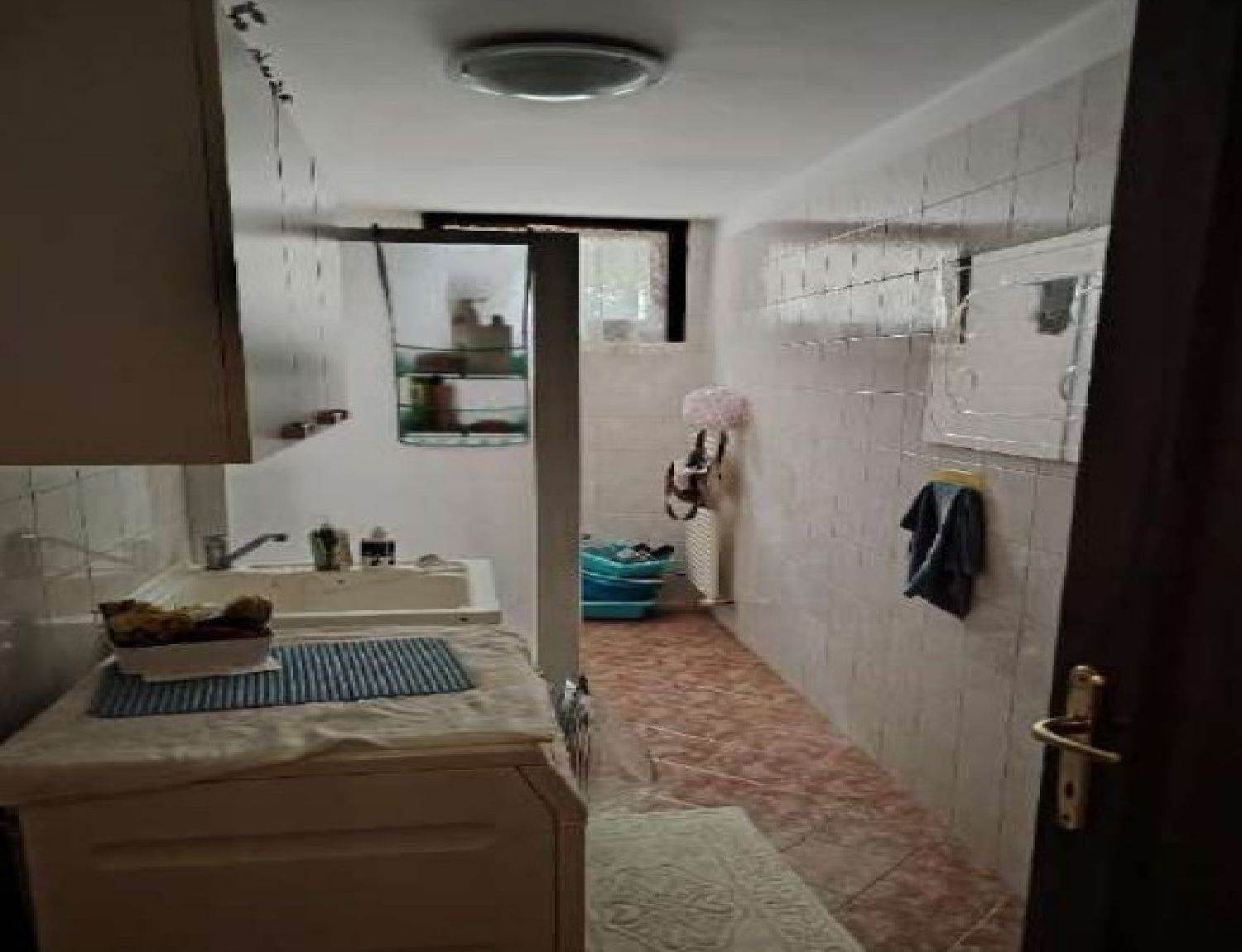 L’abitazione è composta al piano terra da soggiorno, cucina, disimpegno, due bagni, n. 4 camere da letto, un corridoio e un ingresso-studio (ora cucina).