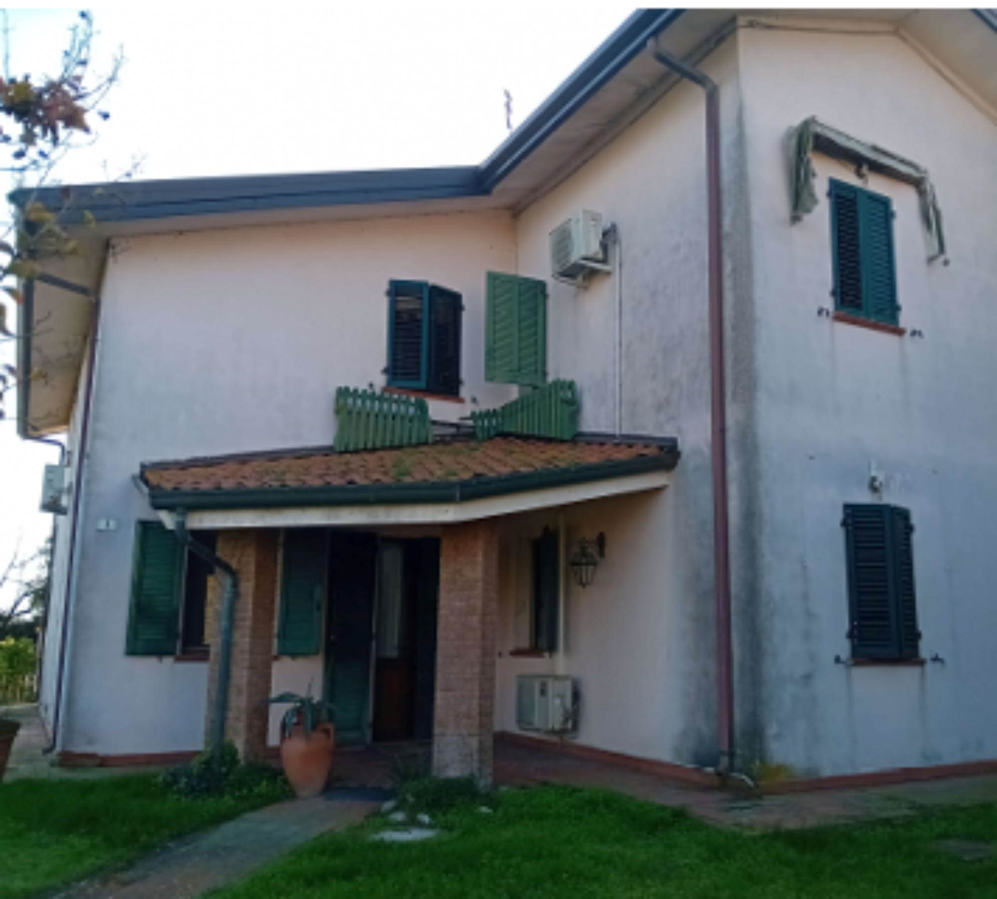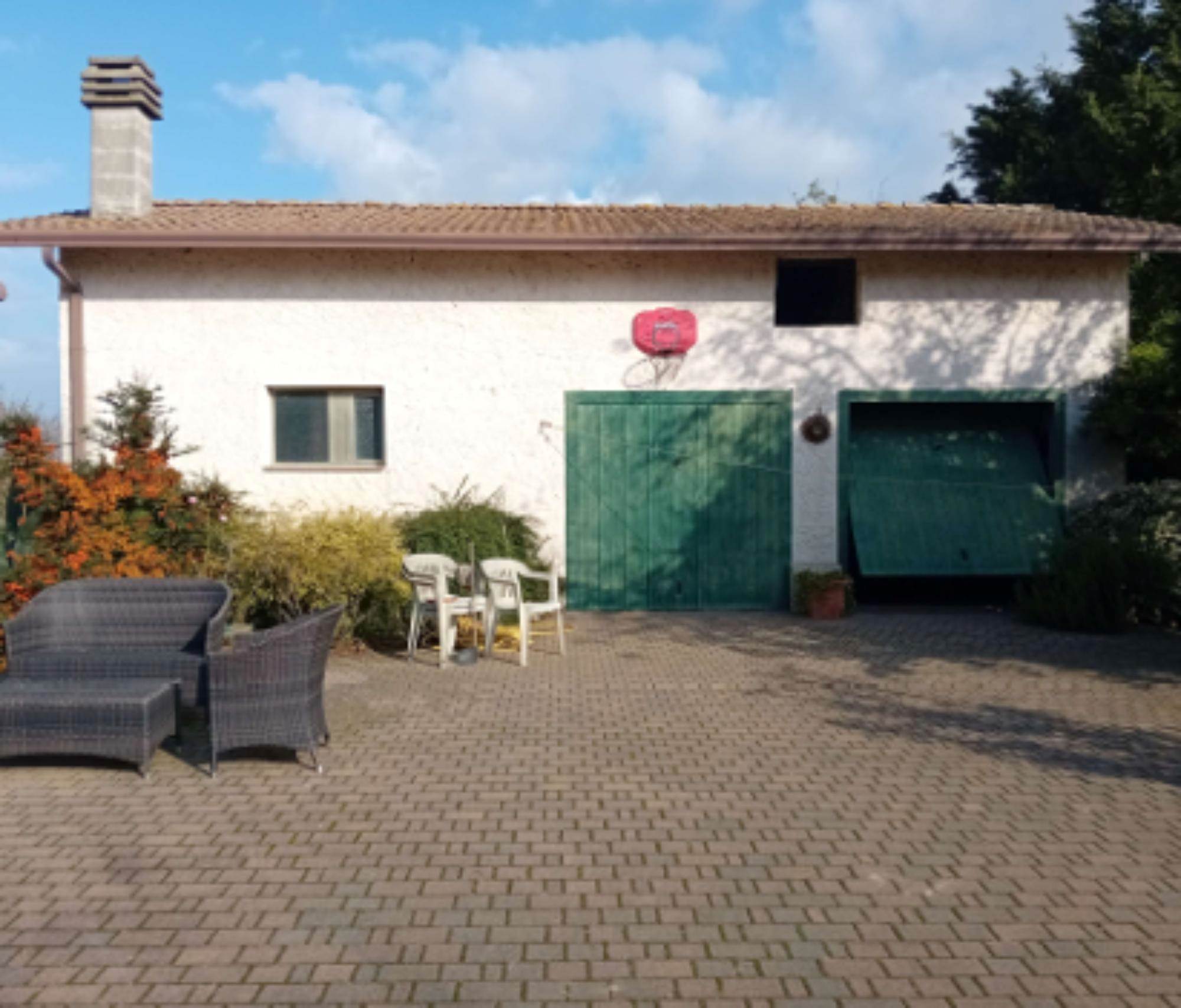 Descrizione sintetica: fabbricato costituito da due appartamenti (uno al piano terra e uno al piano primo, superficie commerciale 287,05 mq) compresa area scoperta di pertinenza comune con porzione di costruzione accessoria in corpo staccato costituita da un ampio locale ad uso garage di mq 37,46, appezzamento di terreno agricolo di circa mq 1.431,00. L'appartamento al piano terra, si compone di portico, studio, corridoio, soggiorno, cucina, due camere e due bagni. L'abitazione al piano primo, si compone di corridoio, soggiorno, cucina, tre camere, disimpegno, due poggioli e due bagni.