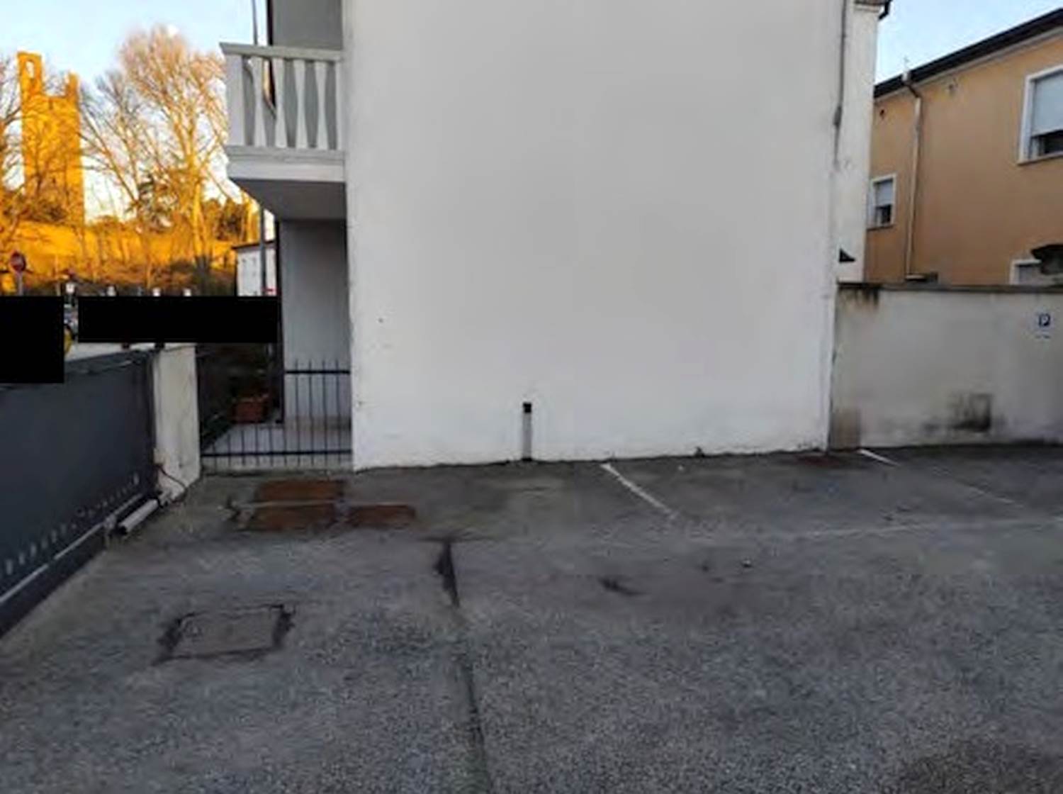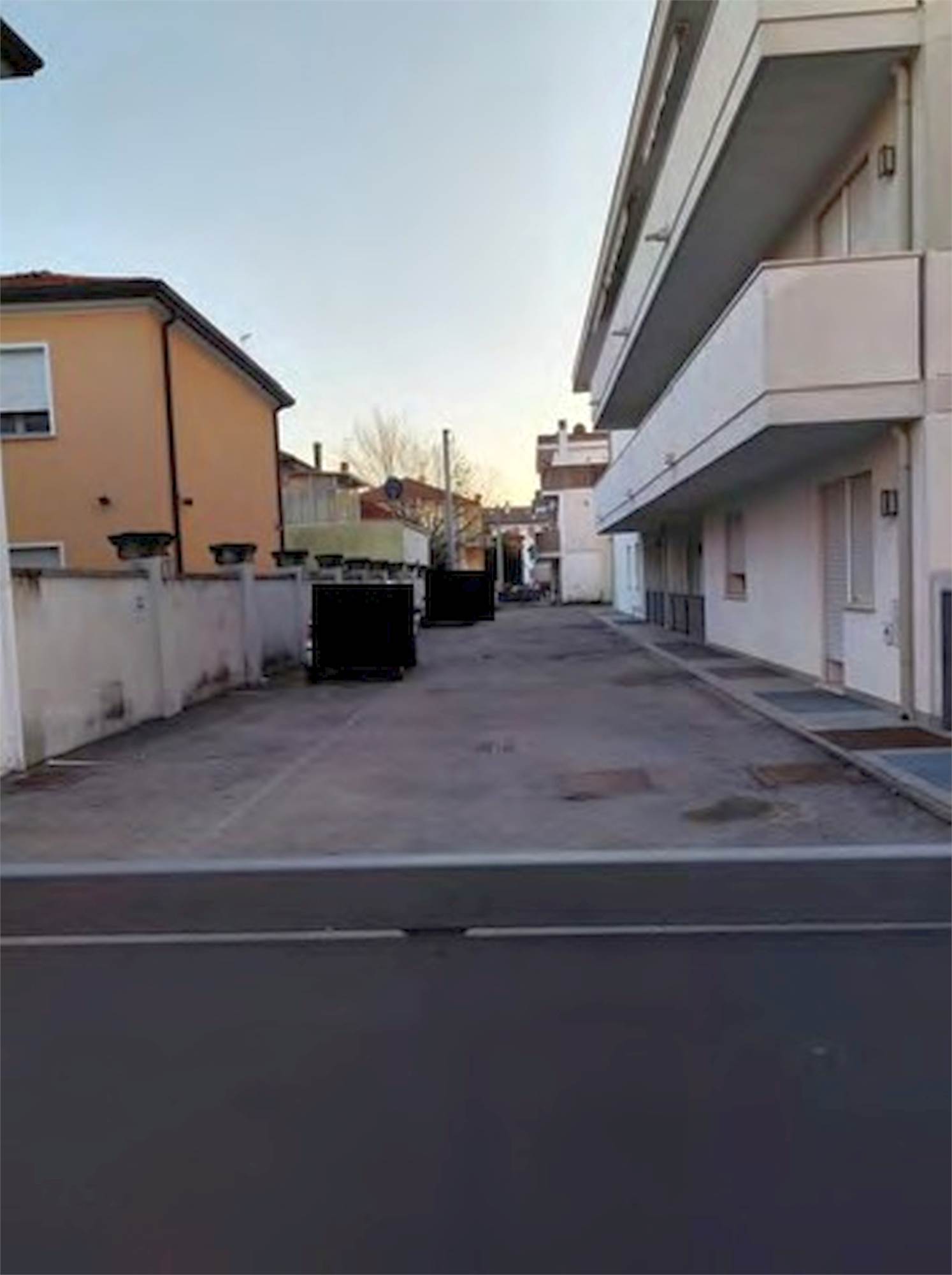 Descrizione sintetica: Piena proprietà di cantina e 2 posti auto scoperti. I posti auto, liberi, sono disposti in linea lungo il confine Est dello scoperto condominiale al p. terra e corrispondono con il primo e il quinto a partire dal cancello carraio. La cantina è posta al p. interrato e costituisce il sotto scala del blocco scala condominiale.