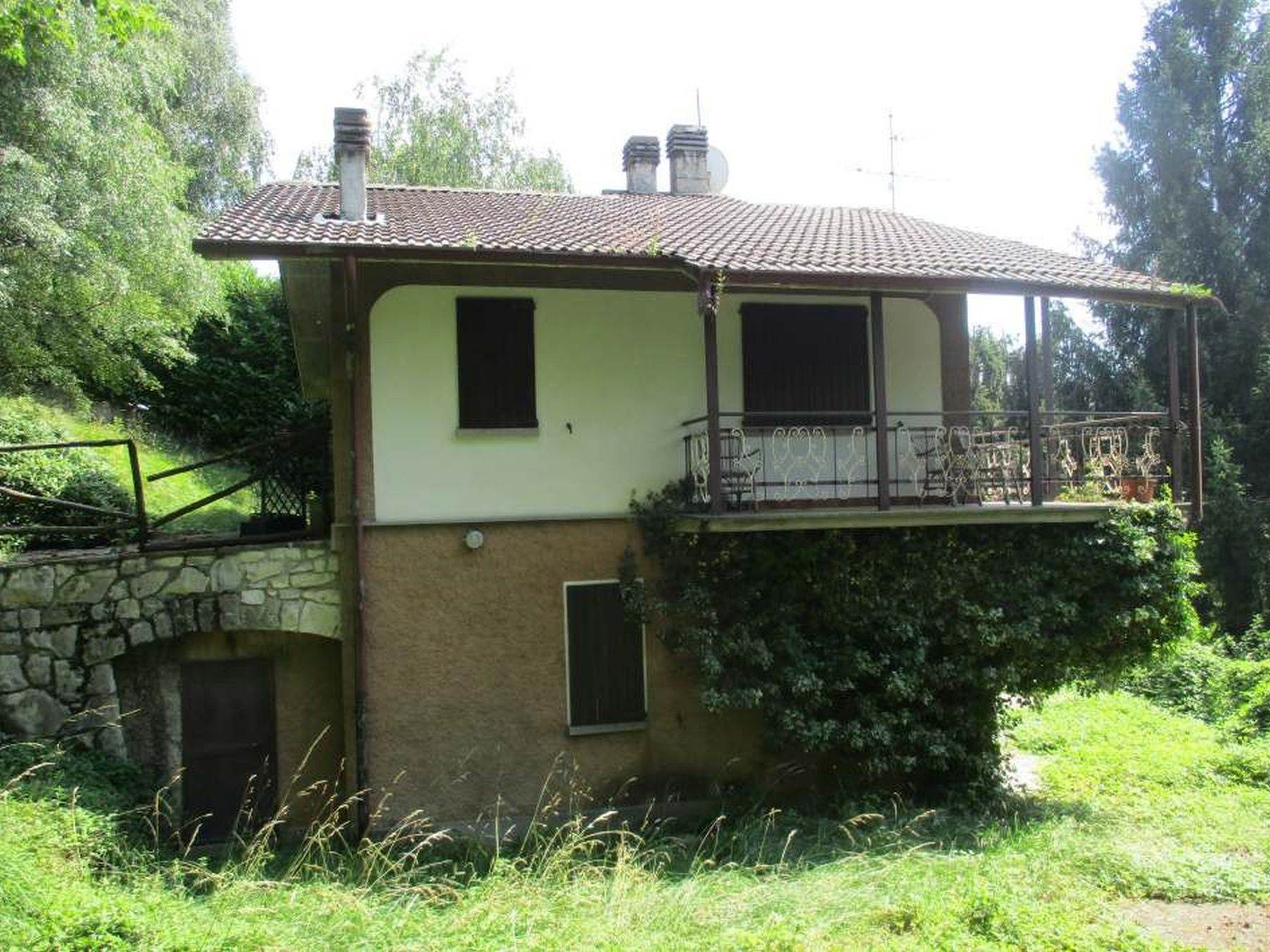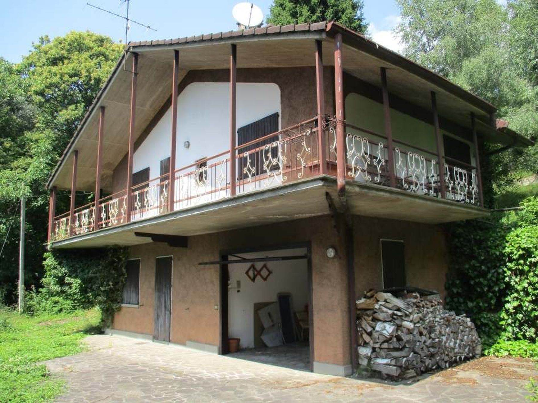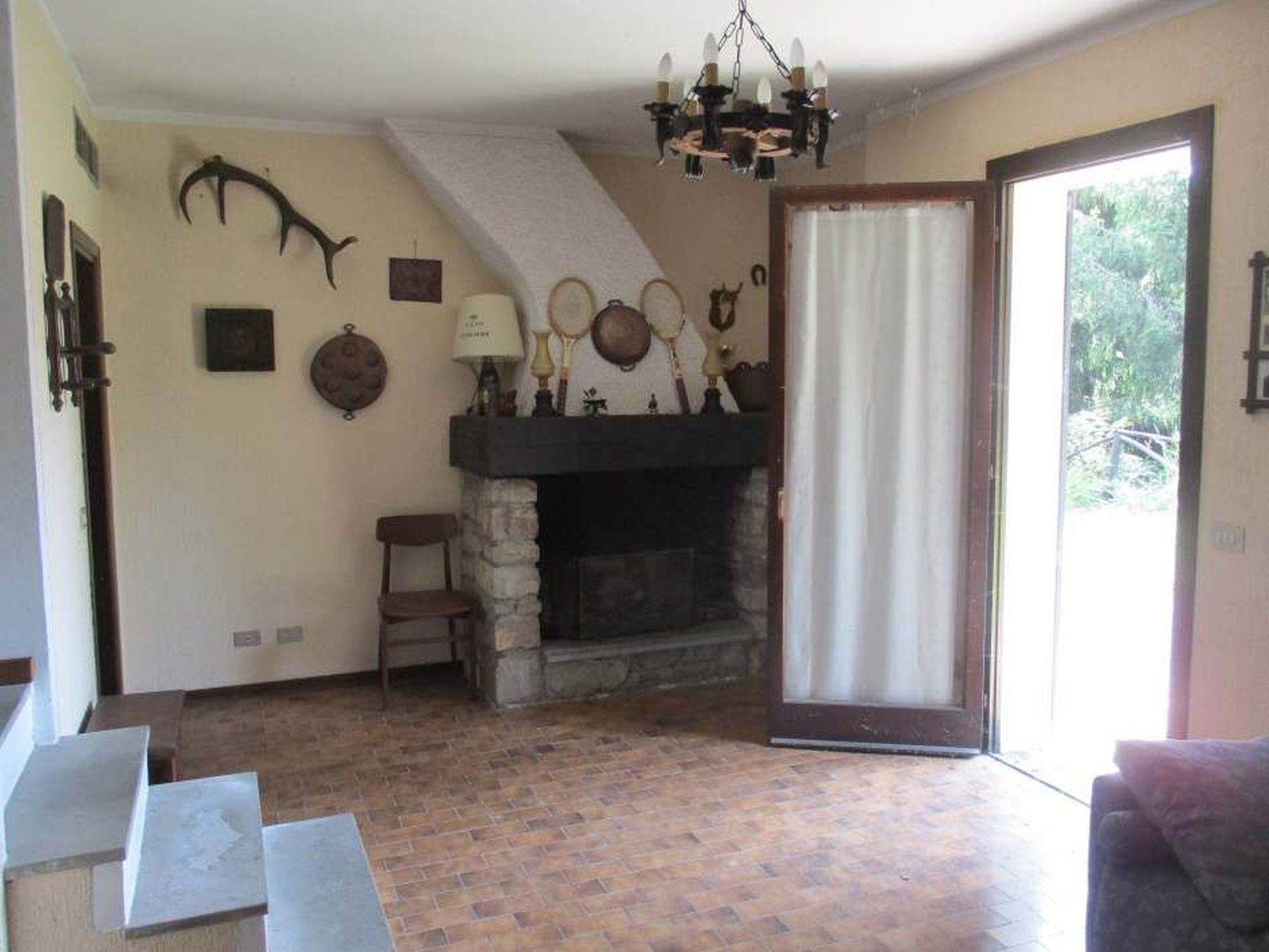 Descrizione sintetica: Villetta unifamiliare di circa 100 mq, indipendente, circondata da cortile/giardino esclusivo, costituita da un piano terra/rialzato adibito ad alloggio e da un piano seminterrato adibito a soggiorno/pranzo, locali accessori e box singolo collegato. Dall'ingresso principale si accede direttamente nella zona cucina dove è presente, nella parte alta della parete a confine con il vano scala, una piccola porticina in legno che consente di accedere al piccolo ripostiglio nel sottotetto. Frontalmente alla zona cottura si trova l'ampio soggiorno/pranzo con caminetto, molto luminoso per la doppia esposizione e dotato di accesso al balcone posto sul lato ovest. A fianco della zona caminetto si trova la porta del disimpegno, che consente di raggiungere il reparto notte costituito da due camere da letto e da un unico bagno. Dal disimpegno si accede anche alla scala interna in muratura la quale mette in comunicazione diretta il piano terra/rialzato al piano seminterrato, adibito a spazi abitativi (taverna), locali accessori e di servizio.