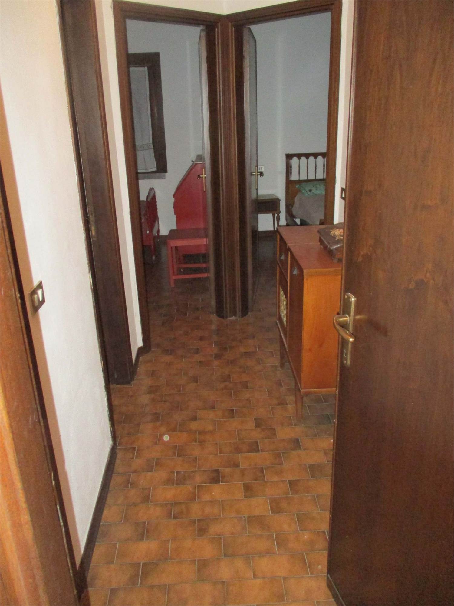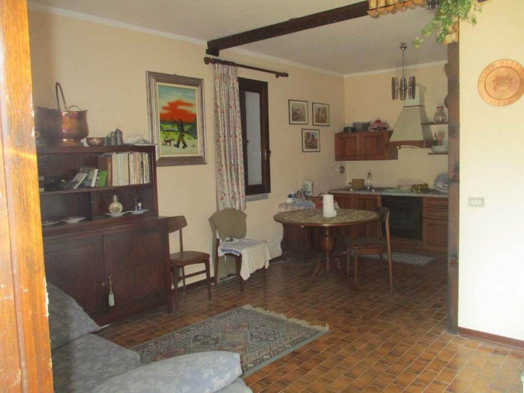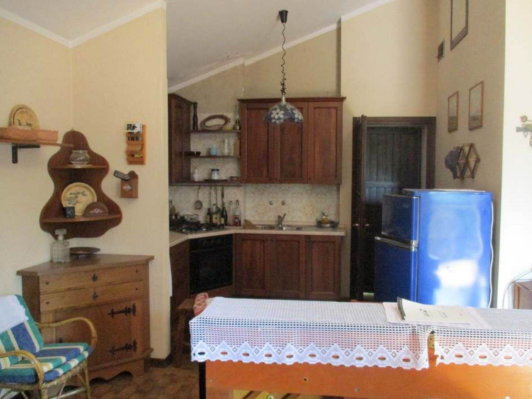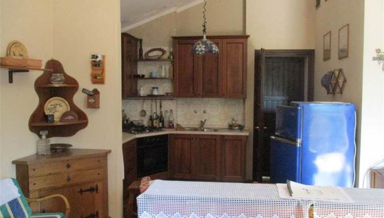 Descrizione sintetica: Villetta unifamiliare di circa 100 mq, indipendente, circondata da cortile/giardino esclusivo, costituita da un piano terra/rialzato adibito ad alloggio e da un piano seminterrato adibito a soggiorno/pranzo, locali accessori e box singolo collegato. Dall'ingresso principale si accede direttamente nella zona cucina dove è presente, nella parte alta della parete a confine con il vano scala, una piccola porticina in legno che consente di accedere al piccolo ripostiglio nel sottotetto. Frontalmente alla zona cottura si trova l'ampio soggiorno/pranzo con caminetto, molto luminoso per la doppia esposizione e dotato di accesso al balcone posto sul lato ovest. A fianco della zona caminetto si trova la porta del disimpegno, che consente di raggiungere il reparto notte costituito da due camere da letto e da un unico bagno. Dal disimpegno si accede anche alla scala interna in muratura la quale mette in comunicazione diretta il piano terra/rialzato al piano seminterrato, adibito a spazi abitativi (taverna), locali accessori e di servizio.