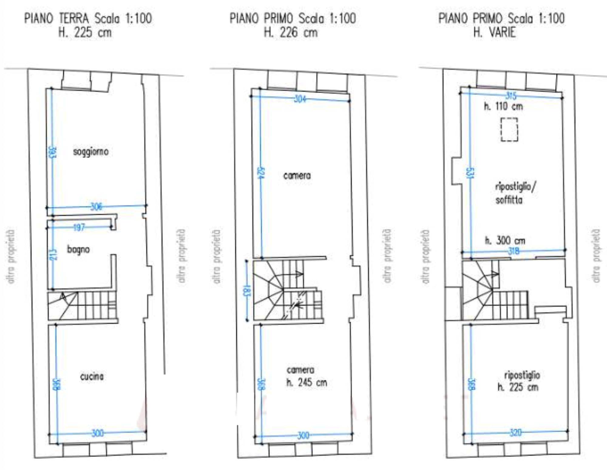 Descrizione sintetica: abitazione disposta su tre piani, si compone al piano terra da soggiorno, bagno e cucina per complessivi mq 48, al piano primo da disimpegno e due camere per complessivi mq 48 e al piano secondo da locali ripostiglio e soffitta per ulteriori mq 48,00.