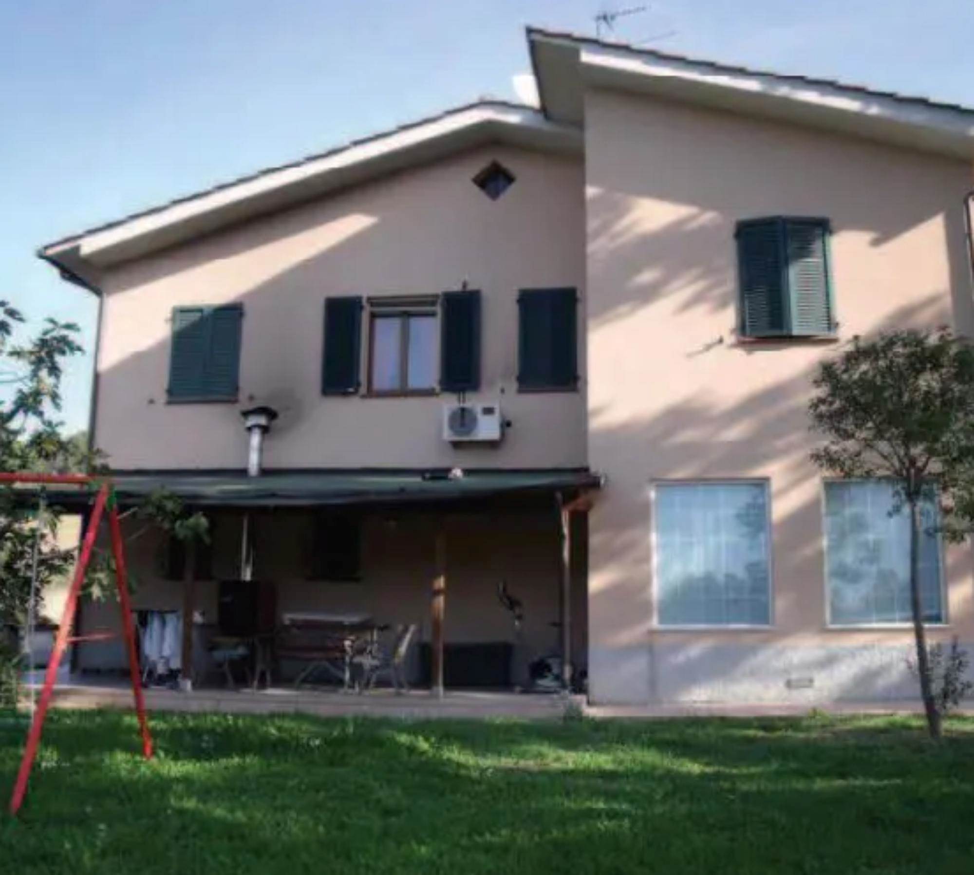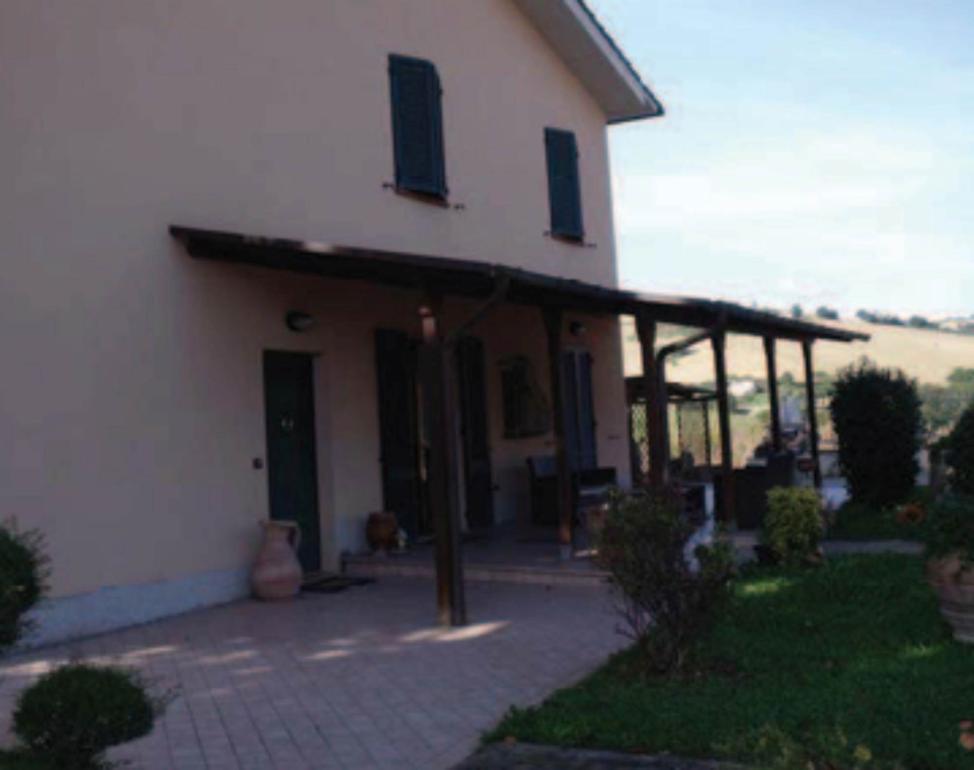 Villa singola monofamiliare posta su due livelli con al piano terra la zona giorno e al piano primo la zona notte. E' un ex edificio colonico degli anni '70 che è stato ristrutturato (con una manutenzione straordinaria) nel 1997. Esternamente sono presenti due porticati con una leggera struttura lignea. La corte pertinenziale risulta essere recintata, pavimentata per la parte dei portici e dei camminamenti, sistemata a prato per la porzione destinata a giardino. Box doppio di mq 70,00. L'abitazione si compone di soggiorno, cucina, altro vano e bagno al piano terra. Tre camere e bagno al piano primo.