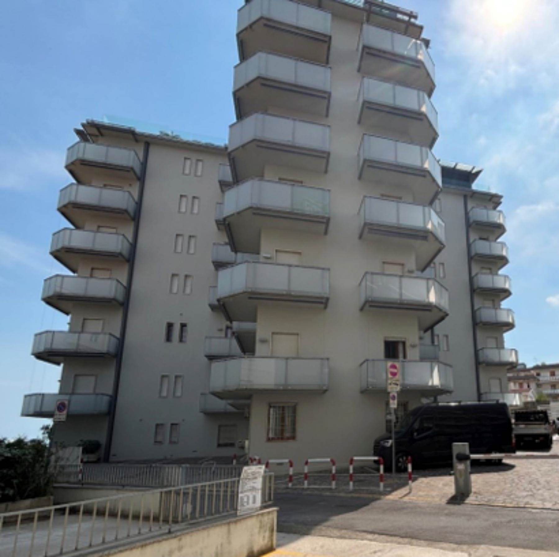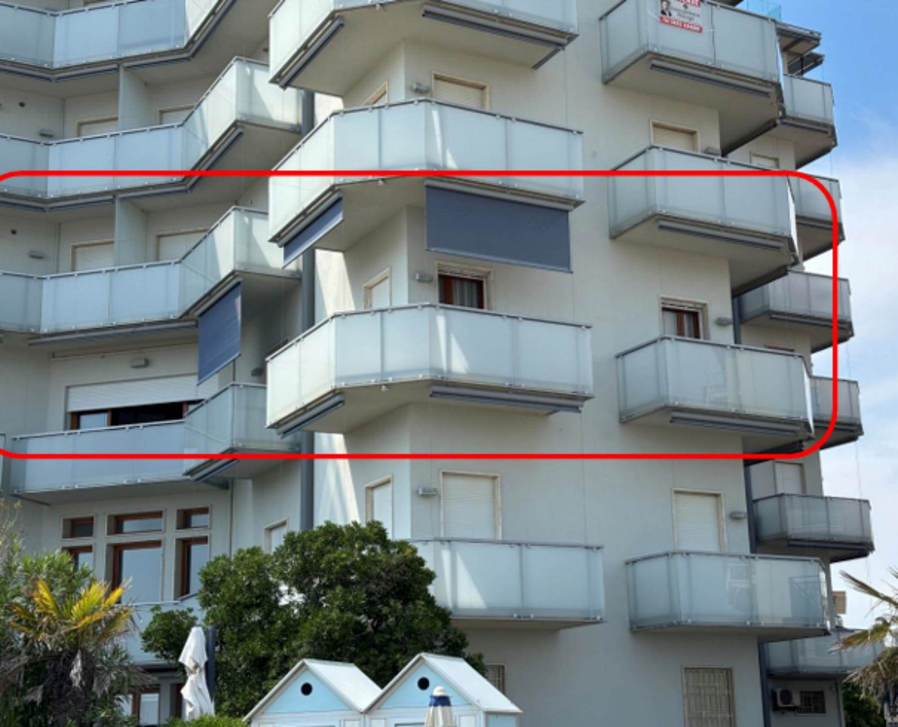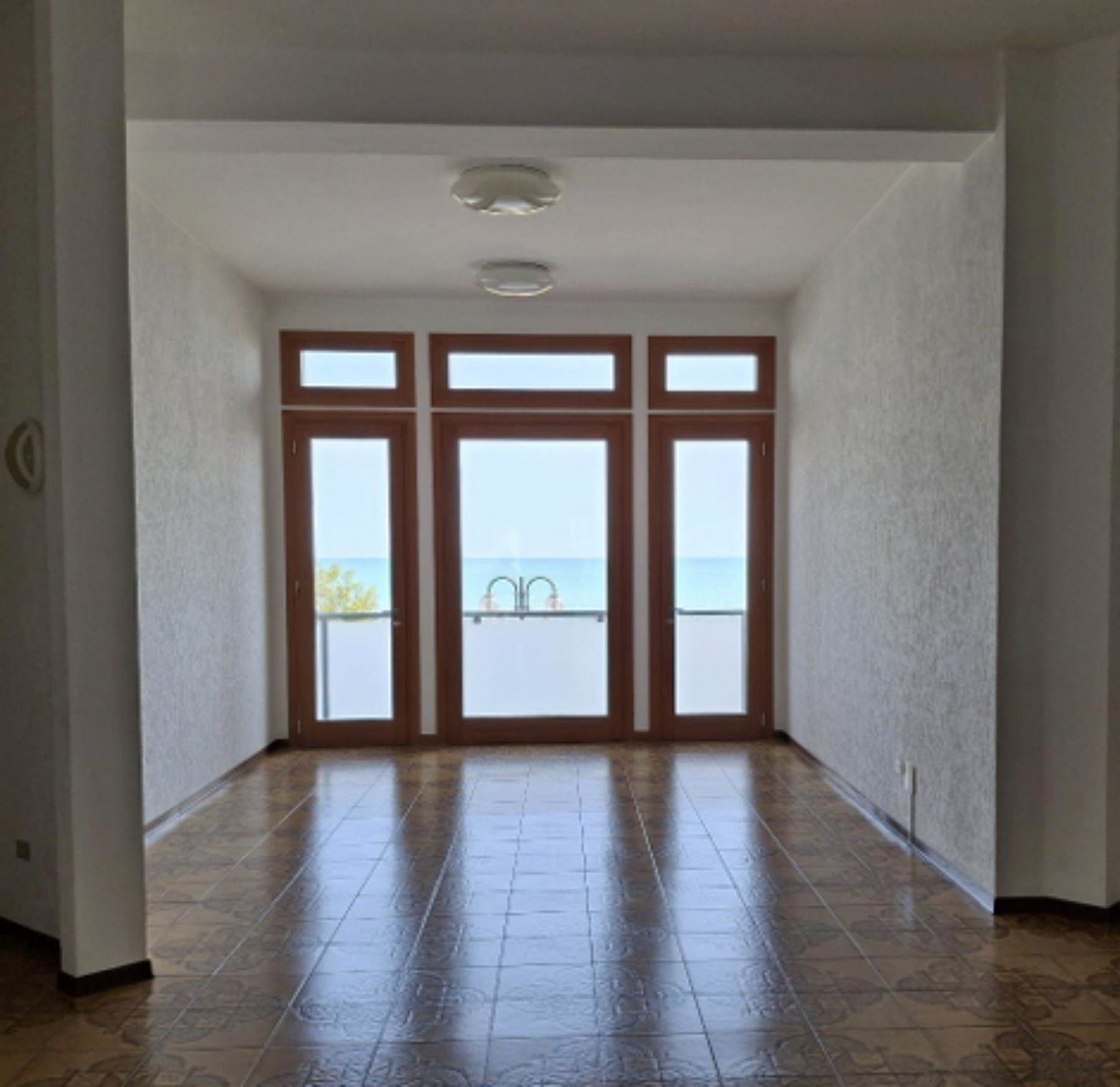 Descrizione sintetica: Appartamento al secondo piano di un edificio a torre fronte mare, con posto auto. Composto da ingresso, soggiorno-pranzo con angolo cottura, due camere, due bagni e cinque terrazze per complessivi mq 30,00 circa.