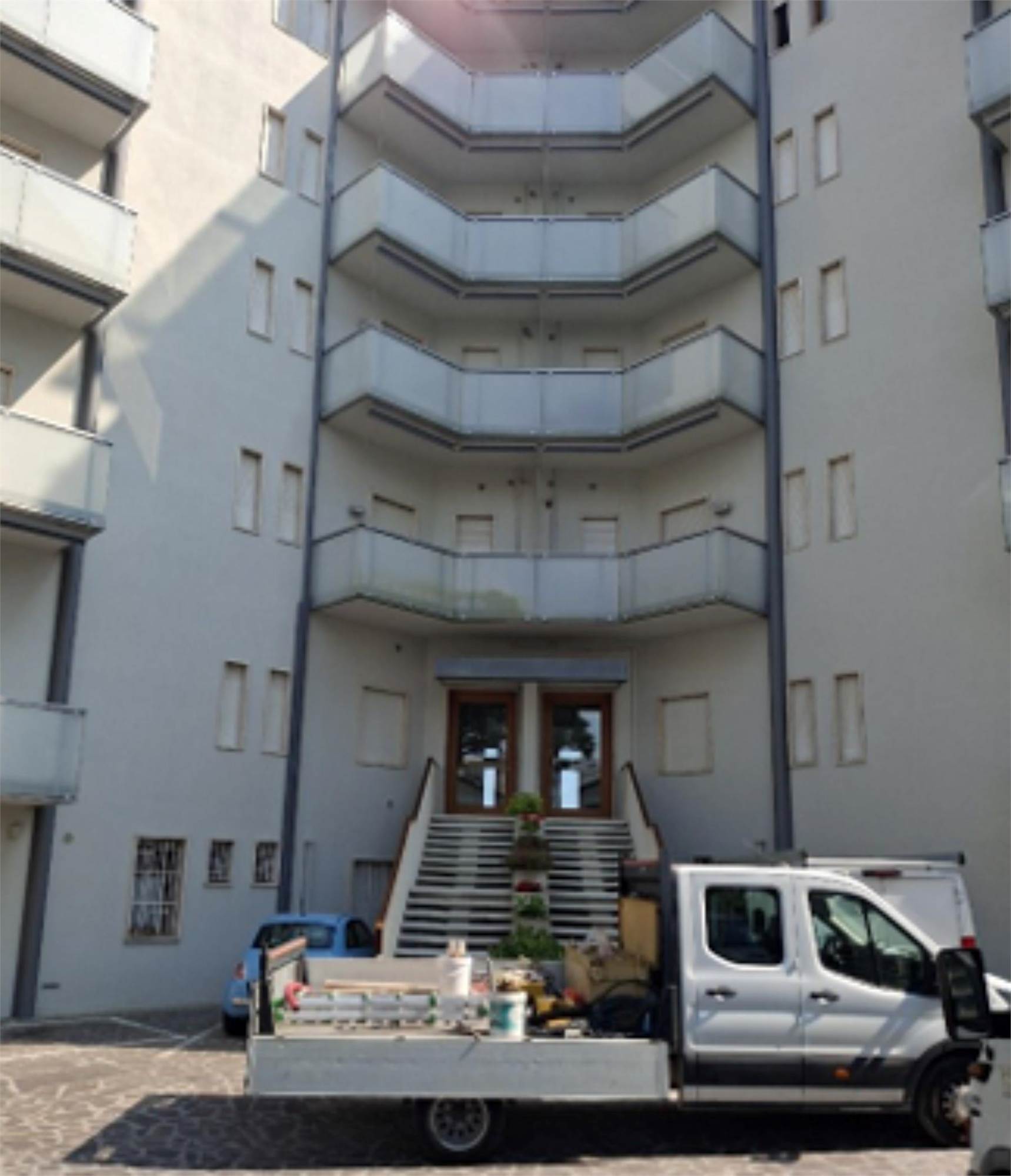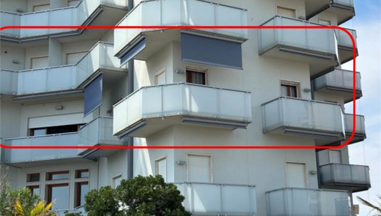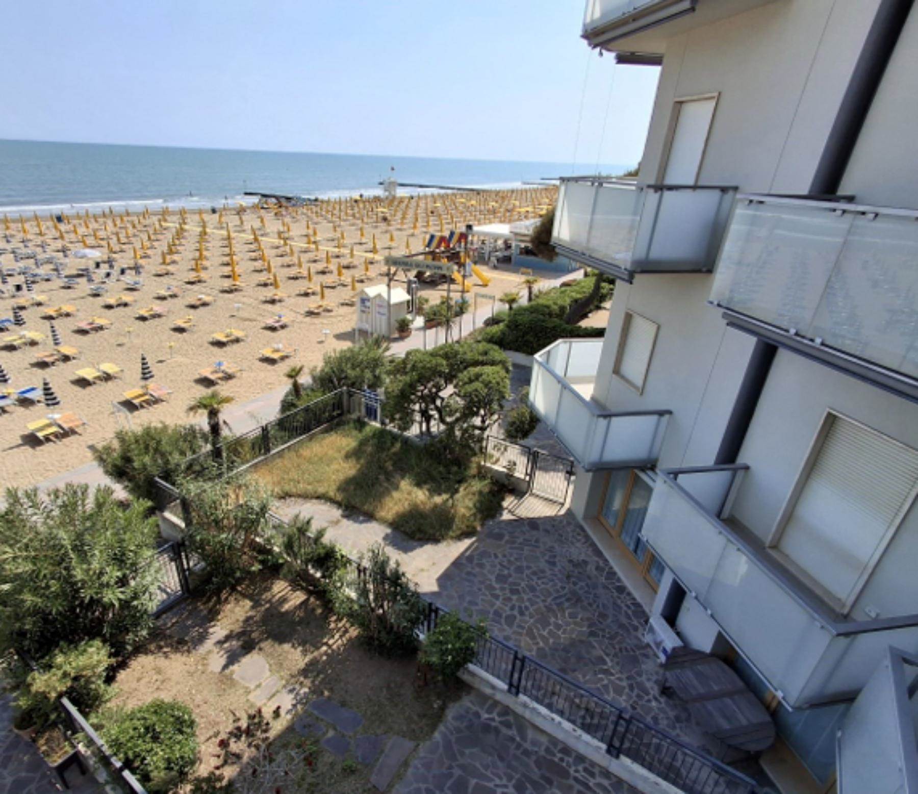 Descrizione sintetica: Appartamento al secondo piano di un edificio a torre fronte mare, con posto auto. Composto da ingresso, soggiorno-pranzo con angolo cottura, due camere, due bagni e cinque terrazze per complessivi mq 30,00 circa.