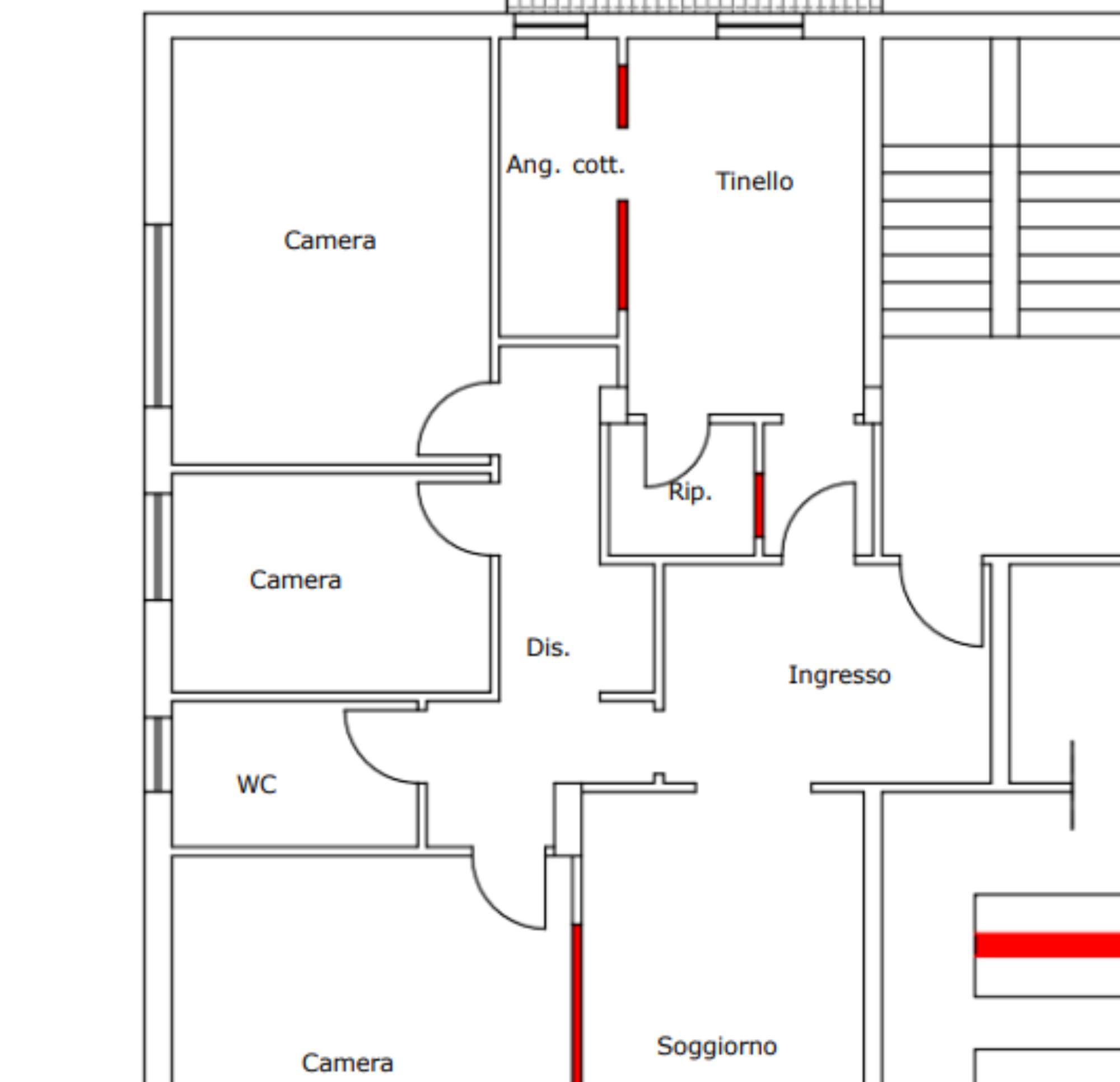 Descrizione sintetica: Appartamento al quarto piano composto da ingresso soggiorno, angolo cottura, tre camere un bagno e ripostiglio.