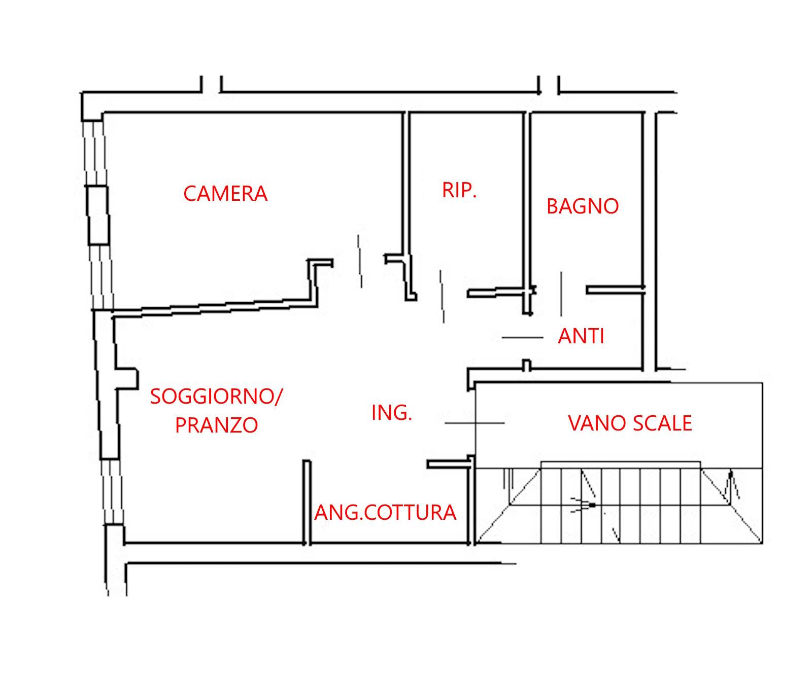 Composto da ingresso, soggiorno/pranzo con angolo cottura, antibagno, bagno, camera.